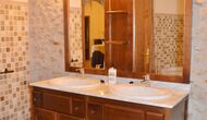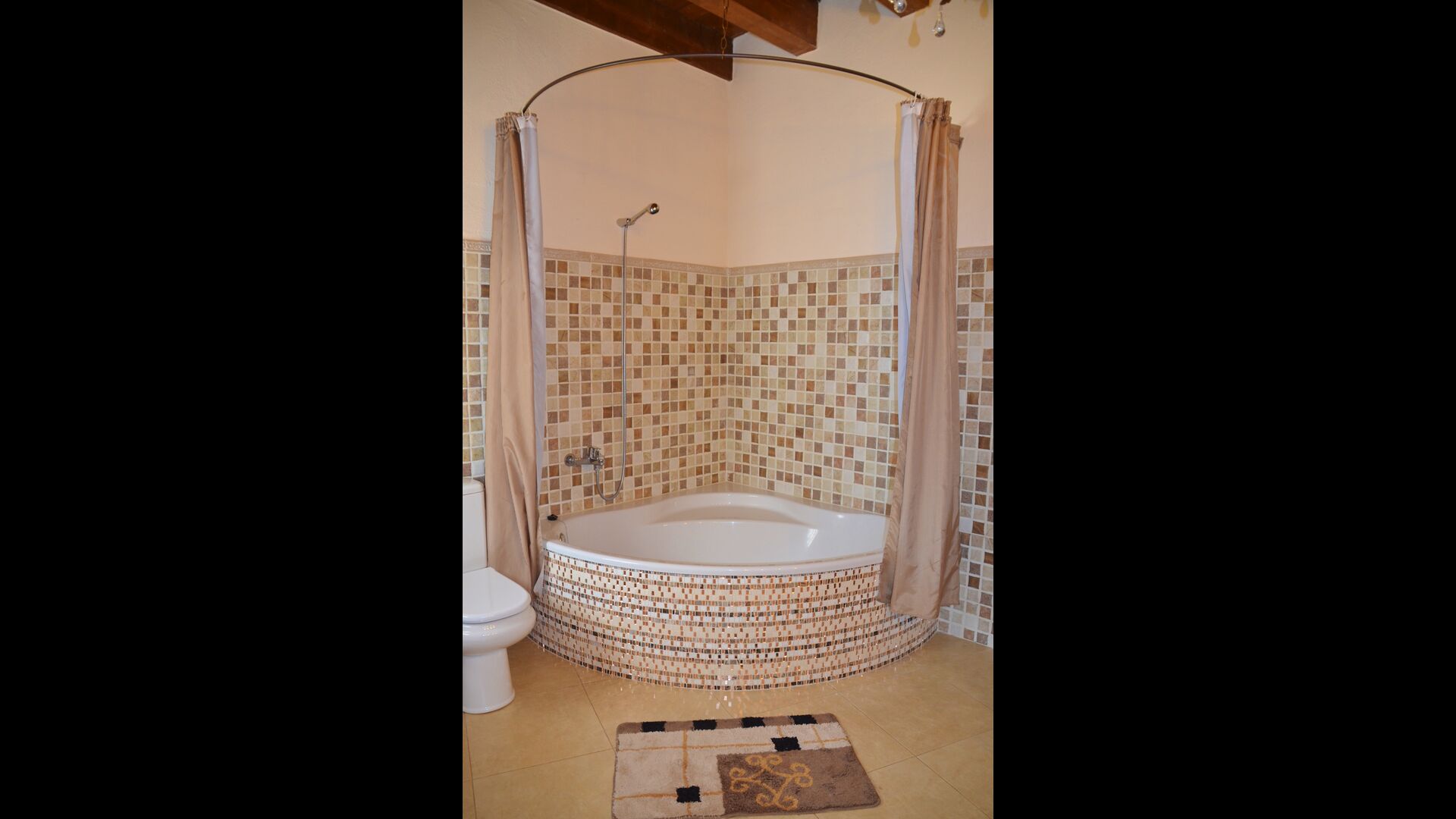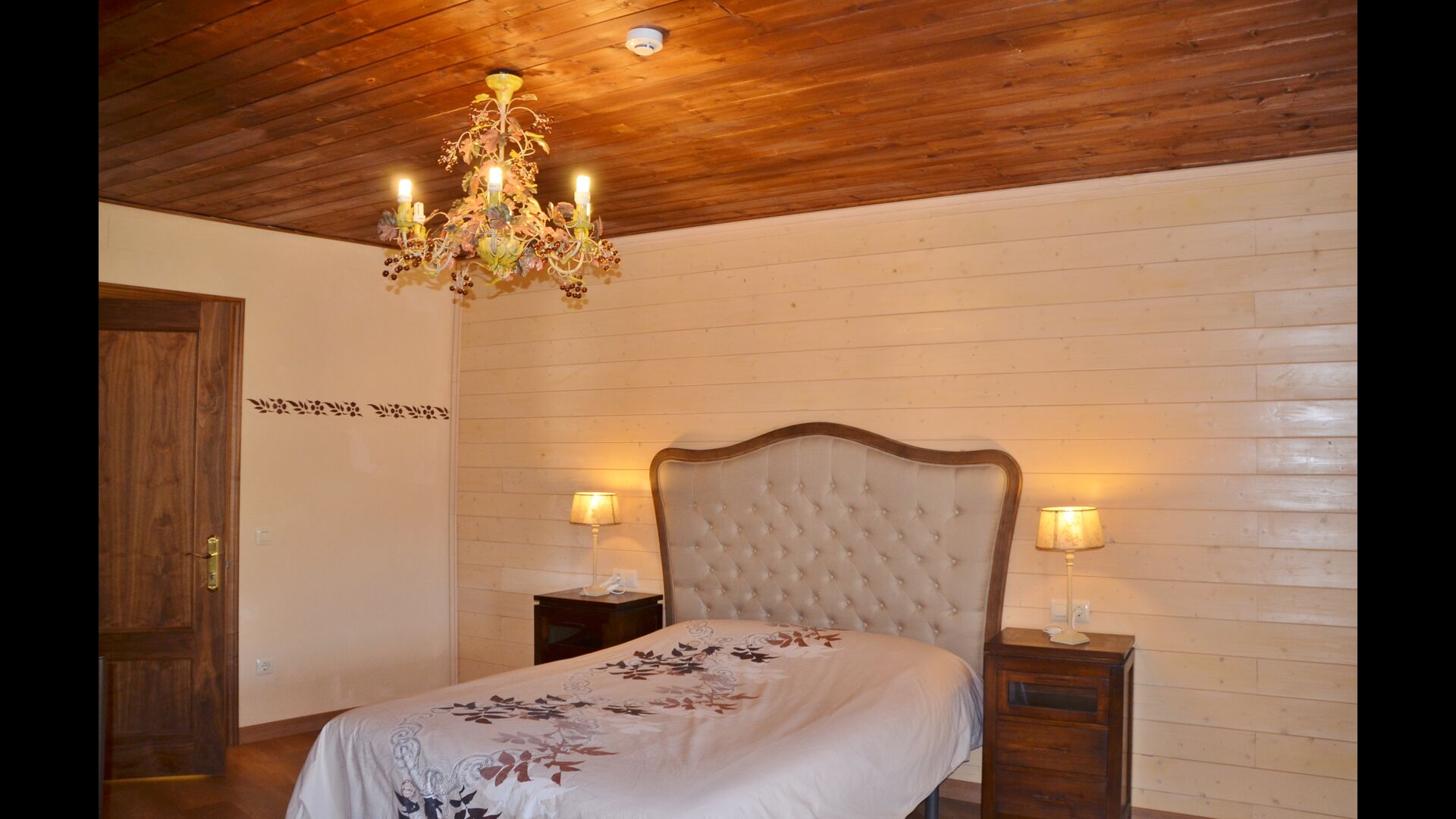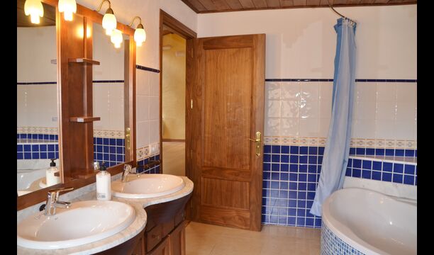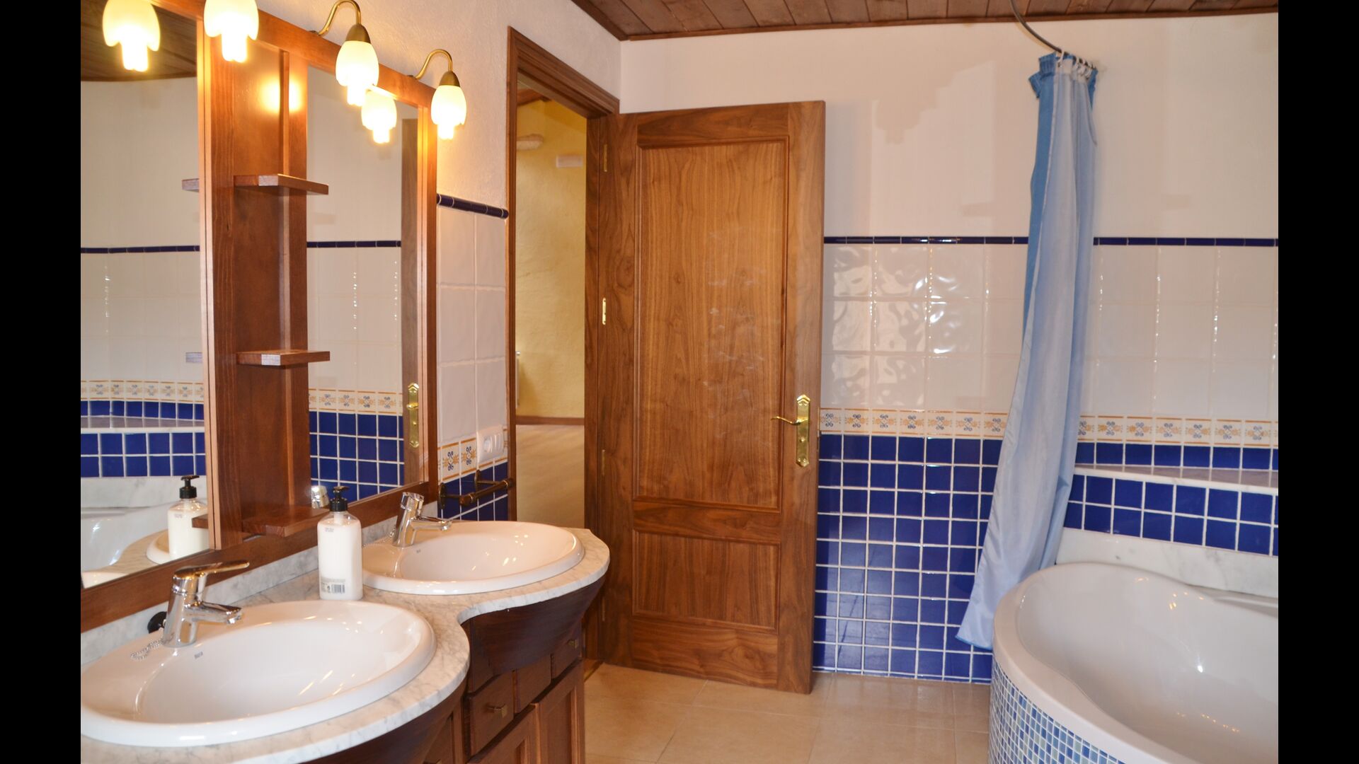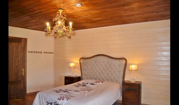 Al igual que el resto de la casa de vacaciones, las habitaciones son de alto nivel: los propietarios realmente se han esforzado en el diseño. Todos están decorados de manera diferente, pero lo que comparten es su amplitud y calidad. Cuando viaja con muchas personas juntas, puede ser agradable retroceder y disfrutar de la tranquilidad sola, y las habitaciones son perfectas para esto. En total en el primer y segundo piso, hay 11 habitaciones, 7 de ellas dobles y 4 triples. Estos incluyen el dormitorio de una niña con ropa de cama rosa y el cuarto de un niño con camas azules. 7 de las habitaciones tienen su propio cuarto de baño, donde tres de ellas tienen bañera. Hay 8 baños modernos y espaciosos en el apartamento.