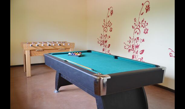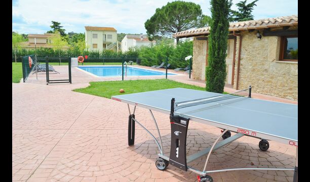 Lo único de esta casa de vacaciones es la combinación de la ciudad y el área del jardín con la piscina, que ofrece muchas actividades: en la piscina, que tiene un tamaño de 72 m2 y está cercada, puede nadar, jugar o simplemente refrescarse en el calor , y puede relajarse en las tumbonas al lado. En el césped grande, puede jugar juegos de pelota, hay columpios para los más pequeños en el grupo de vacaciones y puede jugar al ping-pong. Además, en la planta baja, hay una pequeña sala de juegos con billar y futbolín. Además, calle abajo, hay una panadería, supermercados y bares. En Masia de las Flores, ambos pueden quedarse con instalaciones encantadoras en el patio trasero y tiendas cerca de la puerta principal, esto no es algo común.