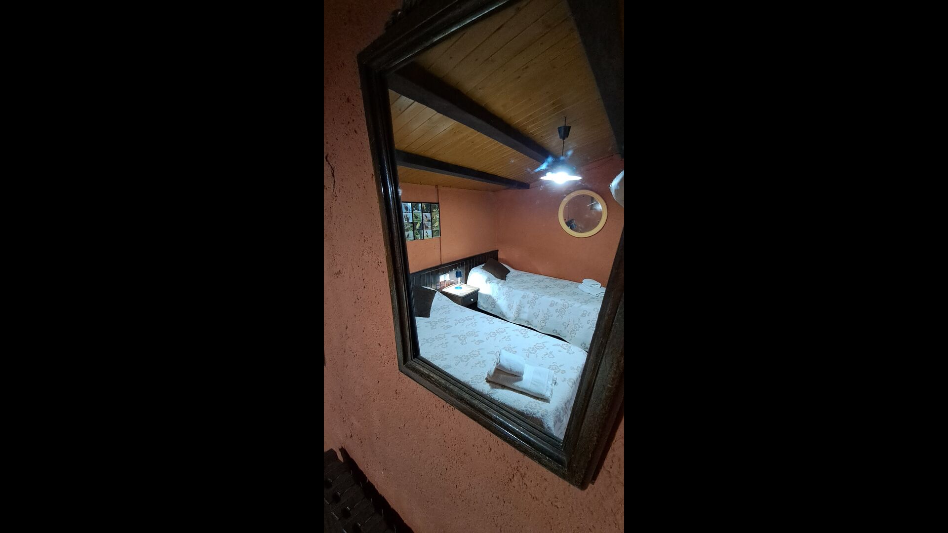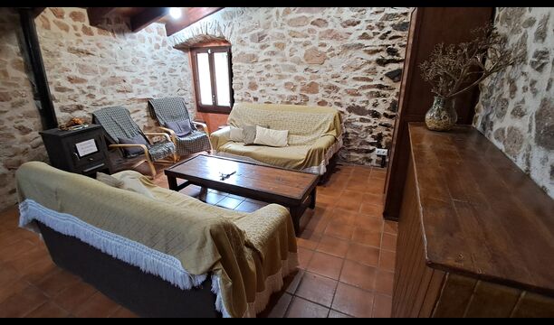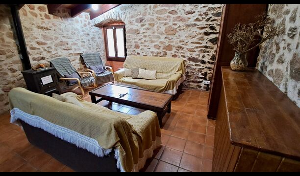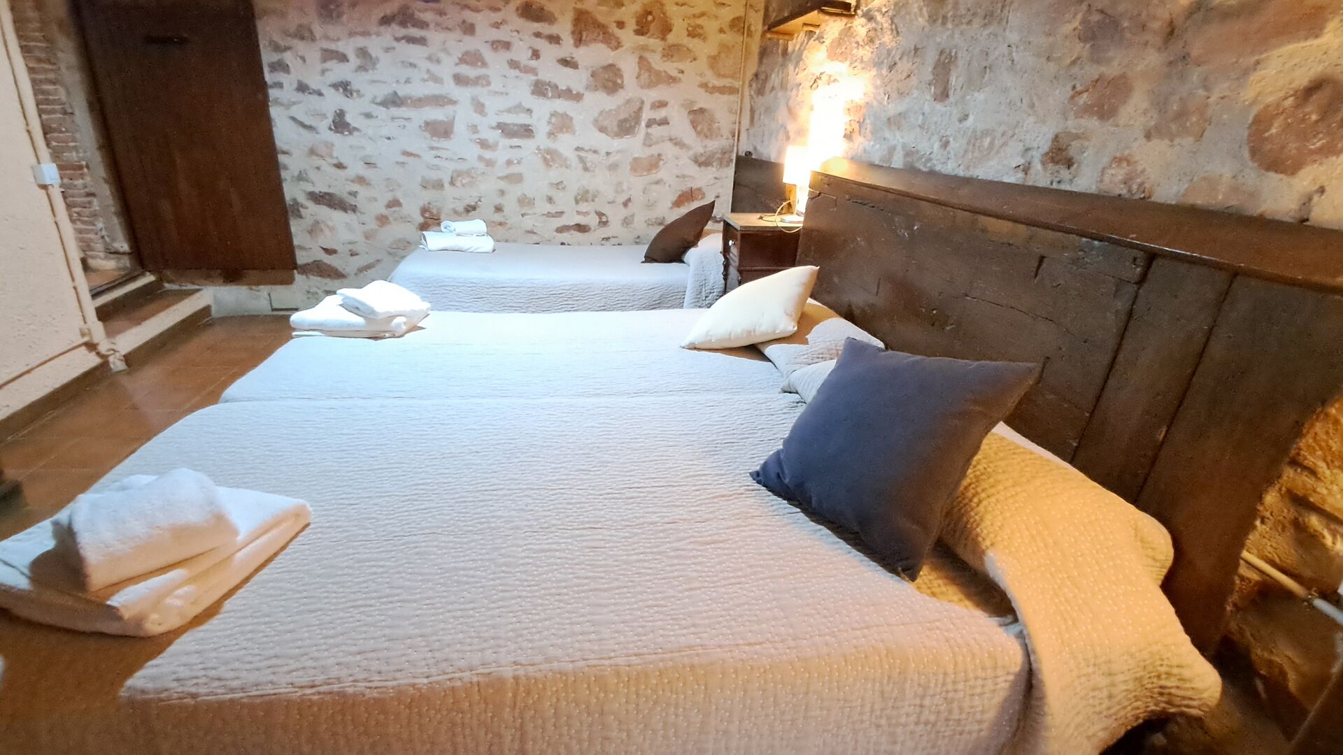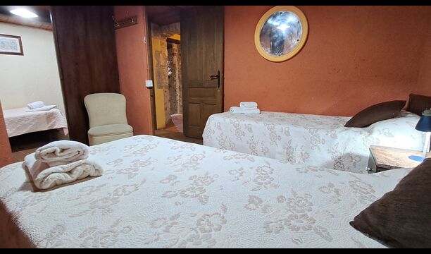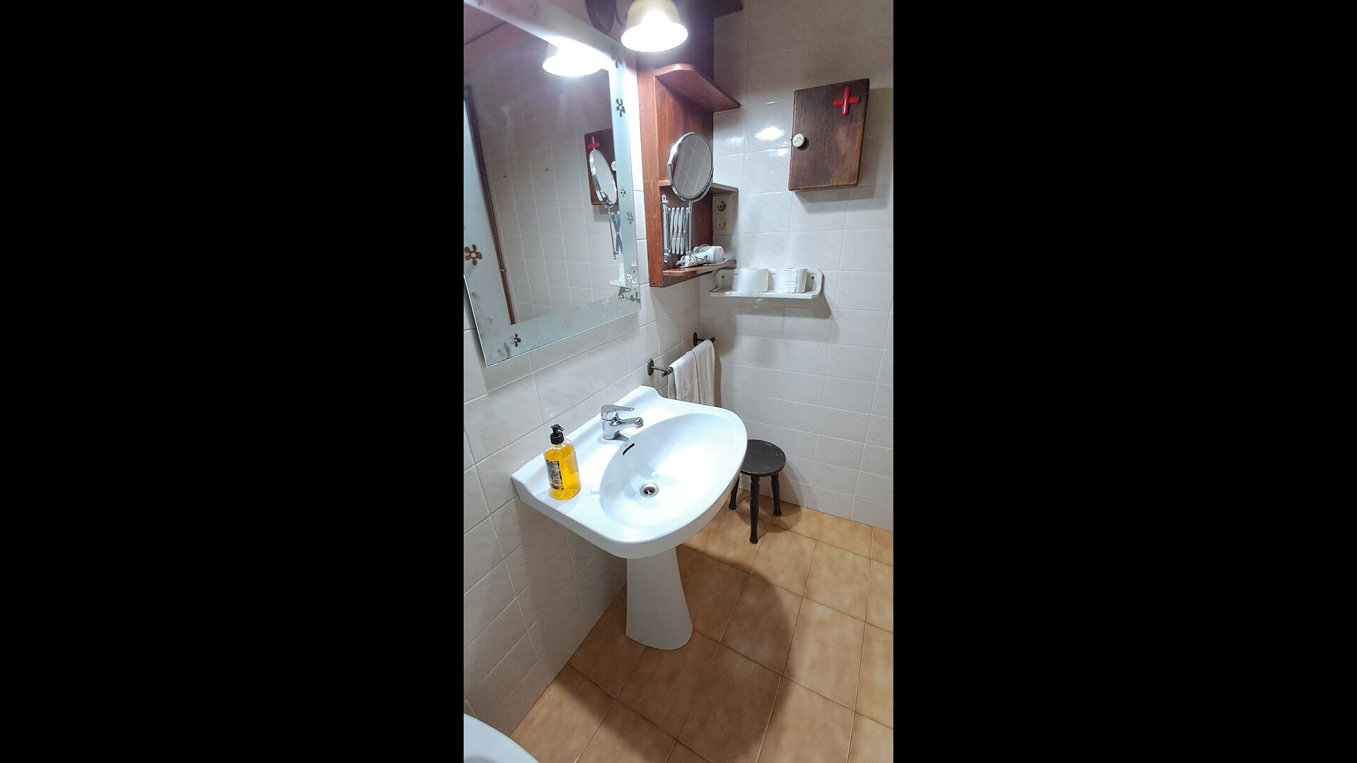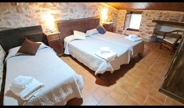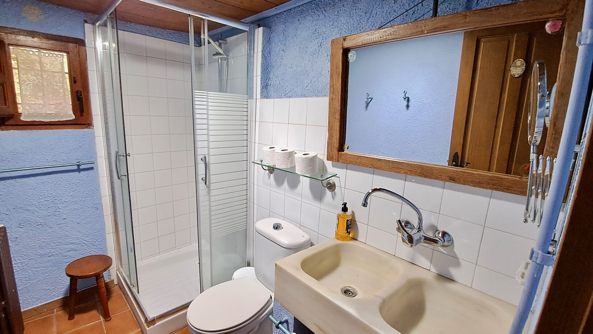 En el pis superior una sala amb sofàs i TV, d'on surten les portes de les habitacions i de l'altre bany amb dutxa. Hi ha tres habitacions: una amb llit de matrimoni, una altra habitació és triple i l'habitació més gran està dividida per una porta poden utilitzar-la com una habitació doble i una individual independent o bé com una de triple. Hi ha un bressol a la vostra disposició. En total té una capacitat per a 8 persones en tres habitacions.