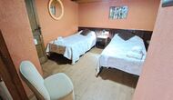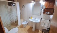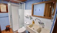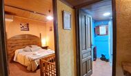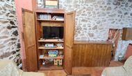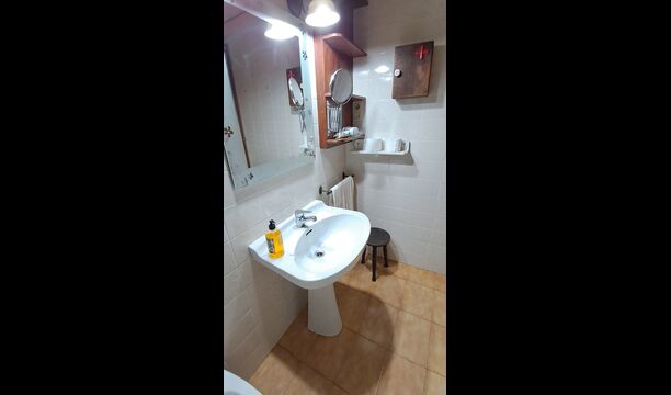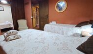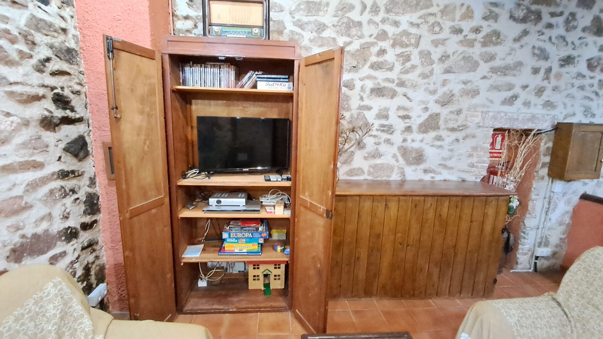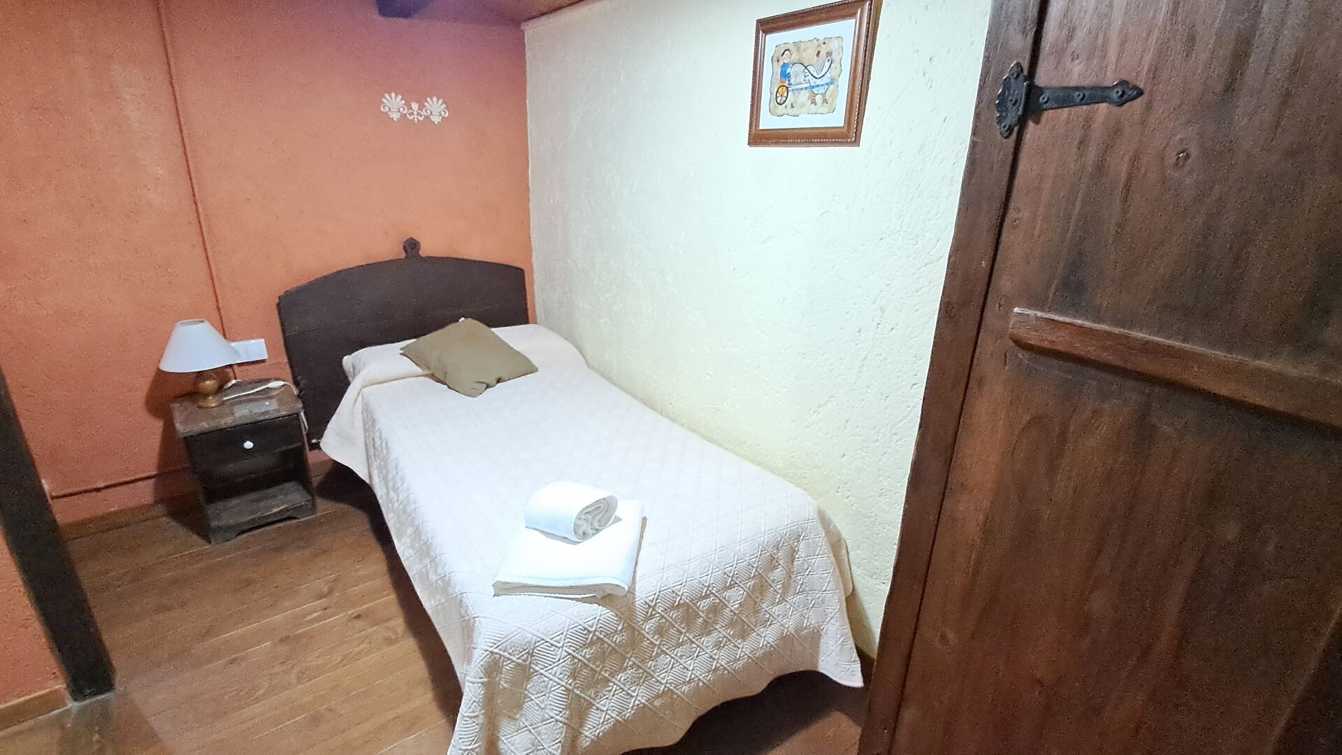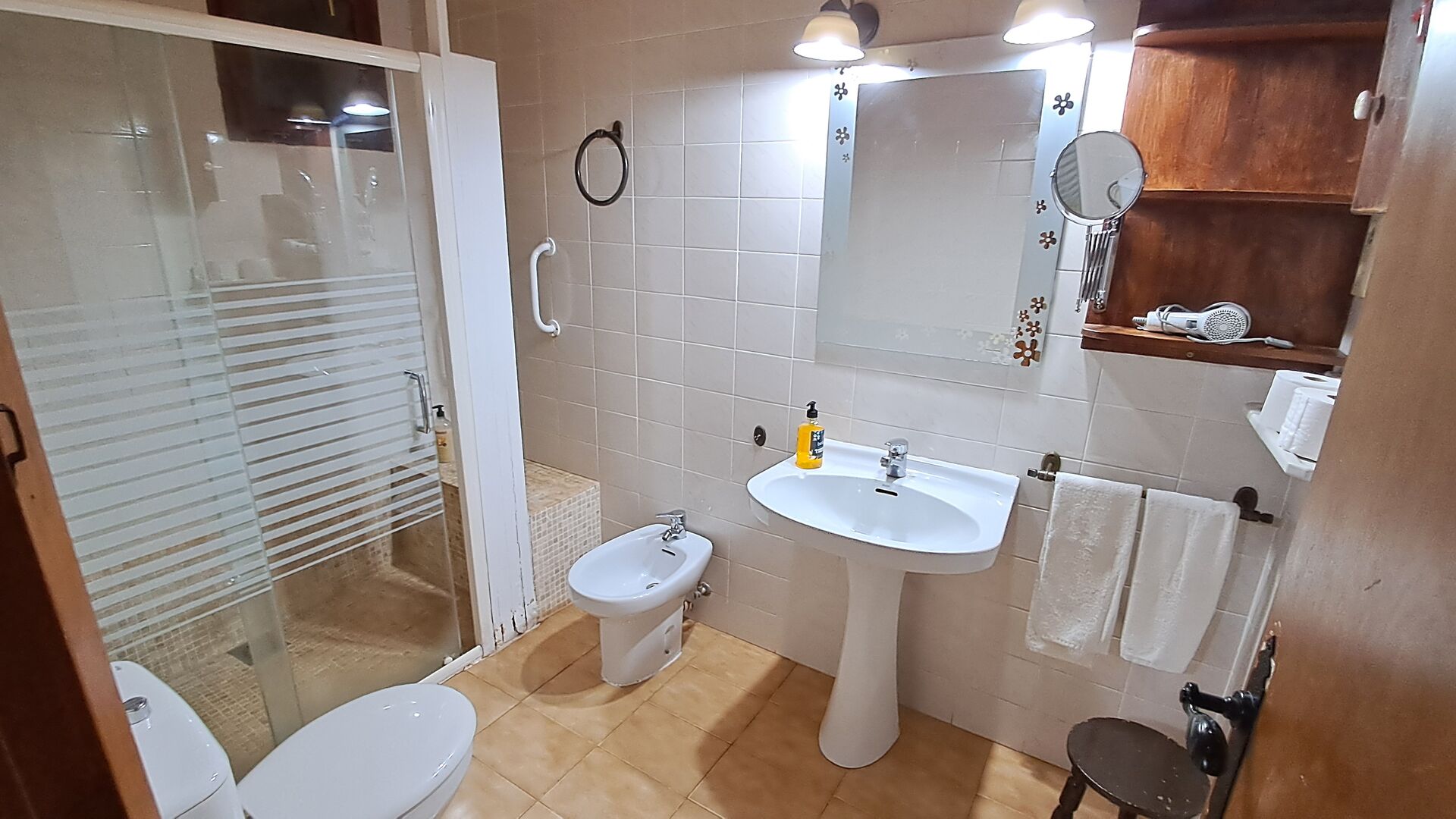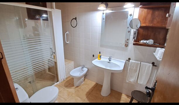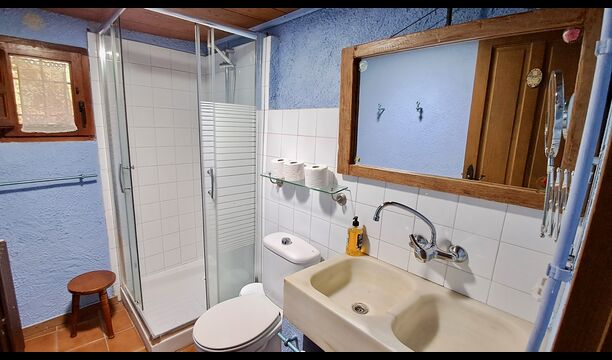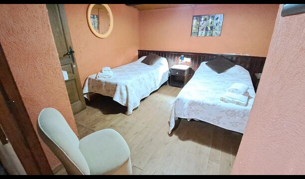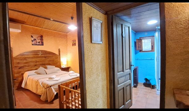 En el pis superior una sala amb sofàs i TV, d'on surten les portes de les habitacions i de l'altre bany amb dutxa. Hi ha tres habitacions: una amb llit de matrimoni, una altra habitació és triple i l'habitació més gran està dividida per una porta poden utilitzar-la com una habitació doble i una individual independent o bé com una de triple. Hi ha un bressol a la vostra disposició. En total té una capacitat per a 8 persones en tres habitacions.