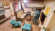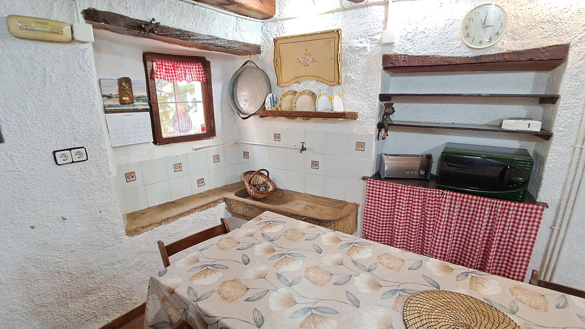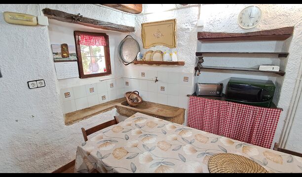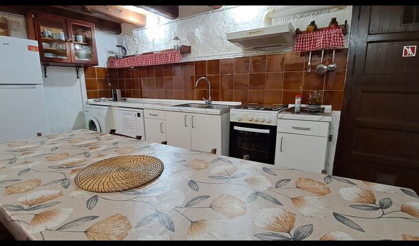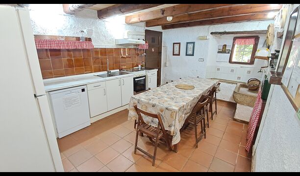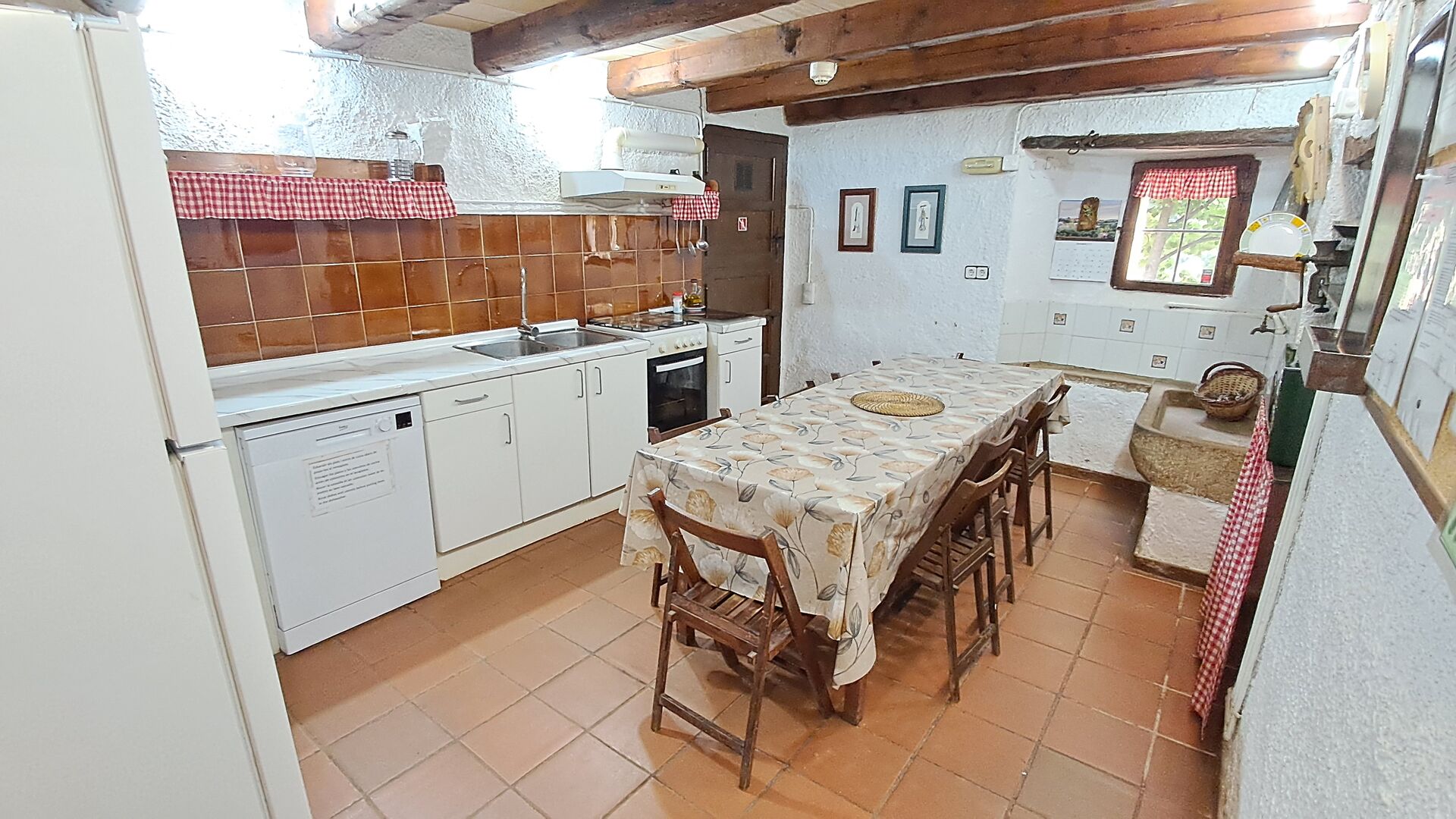 En la planta baixa es troba una sala d'estar amb sofàs, TV i xemeneia. A la dreta la cuina amb nevera-congelador,cuina, forn, rentaplats, torradora, bullidor d'aigua per a infusions, cafetera Nespresso, rentadora de roba, microones, taula i cadires per a 10 persones, etc.(full equip). Pujant dos graons està el menjador, una sala de lectura i un bany complet.