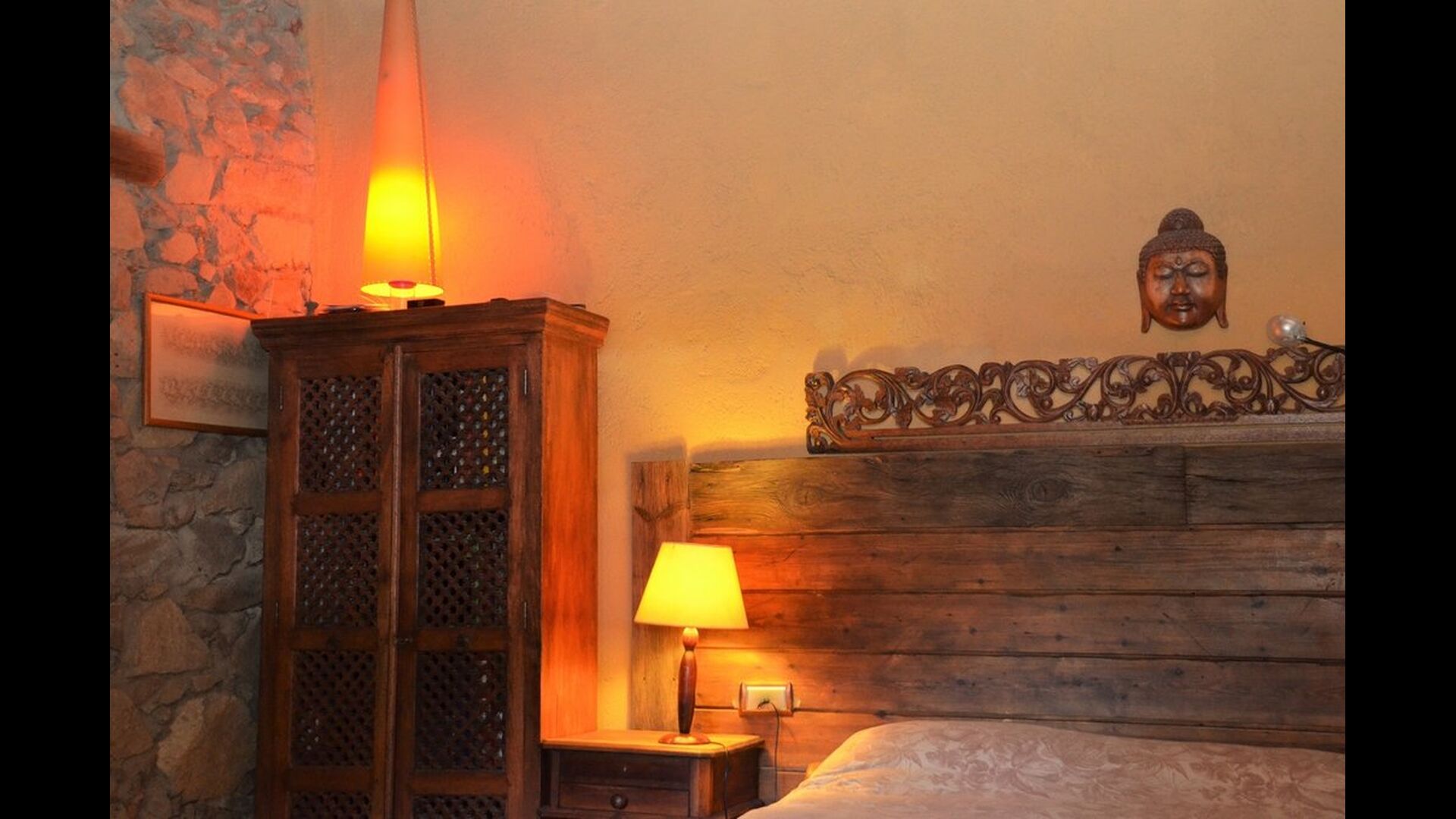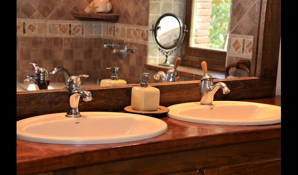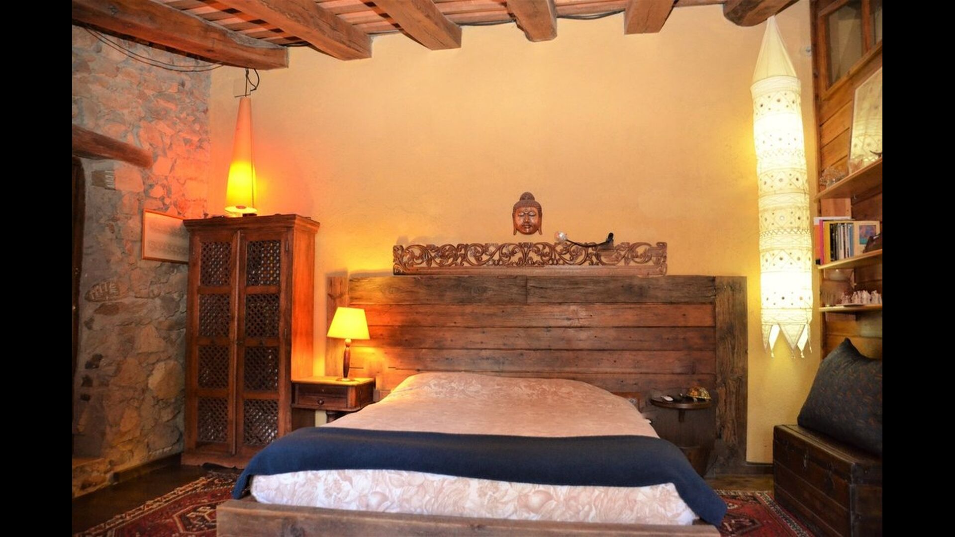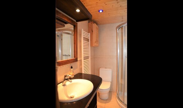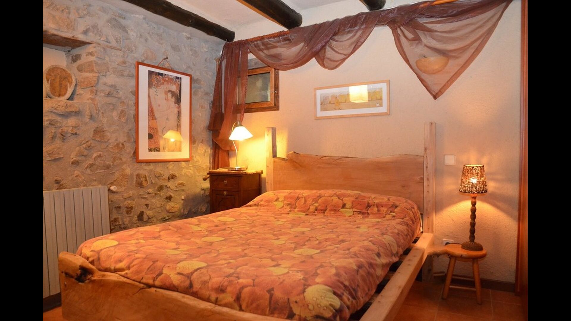 There are 4 bedrooms in total. Two of the bedrooms are located on the ground floor, one of them is a double room and the other is a triple room. They share the bathroom on the ground floor. The second floor is separated into two sections, with one bedroom in each section, which provides privacy. Therefore there are two sets of stairs, leading up to the second floor. In one of the ends you will find a triple bedroom with a double bed and a comfortable sofa bed. On the same level, next to this room is a very old and charming library filled with books. When entering the other end of the second floor, you will find the large master bedroom and the luxurious master bathroom with a very large bath tub and shower.