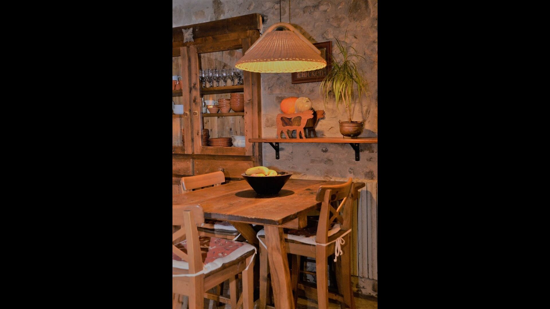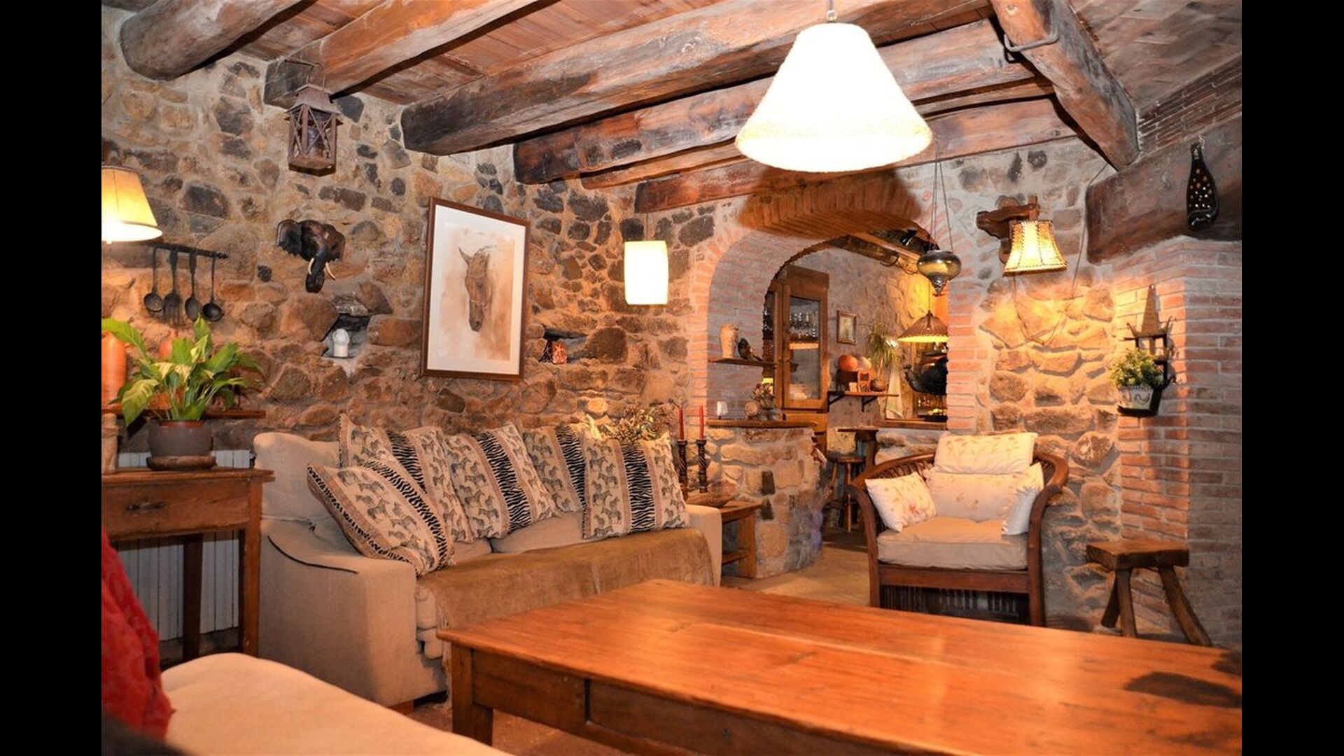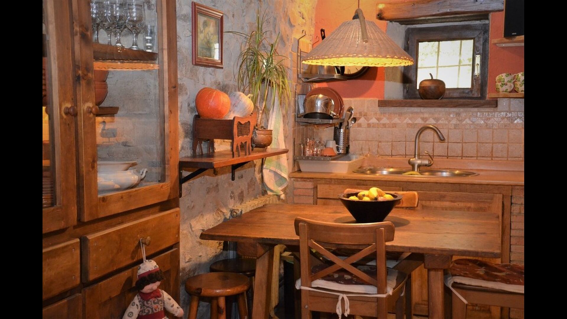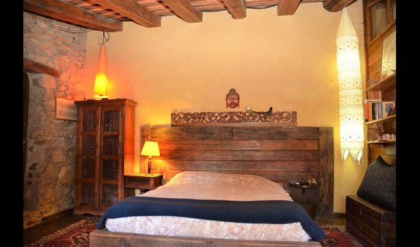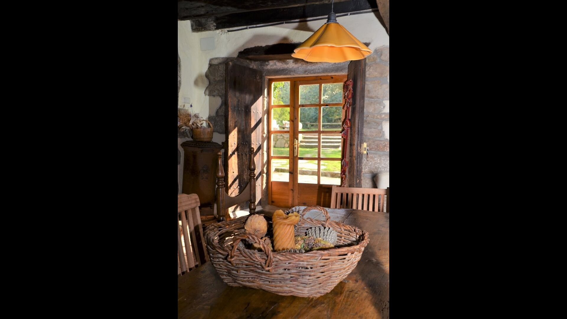 The house itself is incredibly authentic and very charming, with its original framework and construction. Although the house has been renovated, the owners have chosen to keep the house’s original construction which dates all the way back to 1663. These historical features of the house can among other things be recognized by the beautiful Catalan limestone walls and the wooden beams in the ceilings. The common rooms are located on the ground floor. Here you will find a cozy loungeroom with couches and chairs. There is a large flat screen TV and the house also has WIFI. The kitchen is very well equipped with fridge, freezer, dishwasher machine, stove, washing machine etc. It also has a small table which can seat around 4 people. In the next room is the dining room. The room is decorated with authentic wooden furniture, including a wooden piano. This room also has door which provides access to the garden.