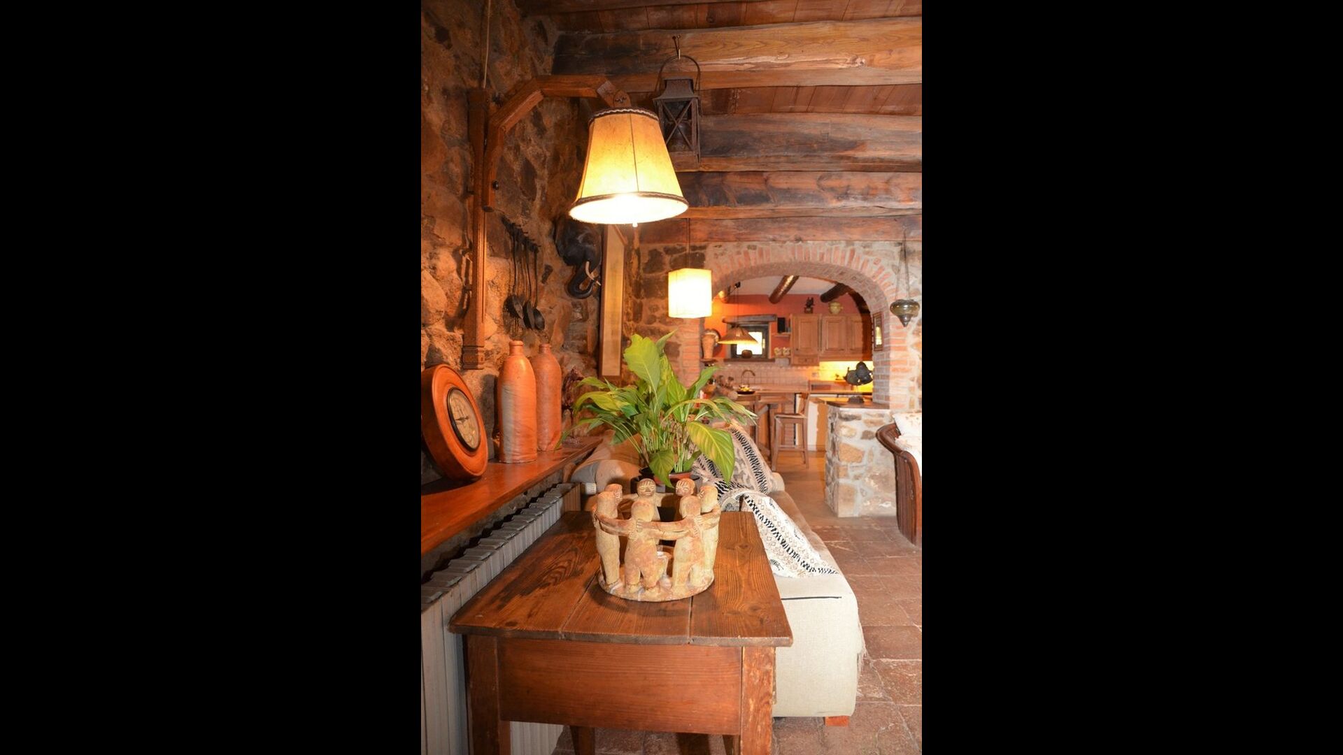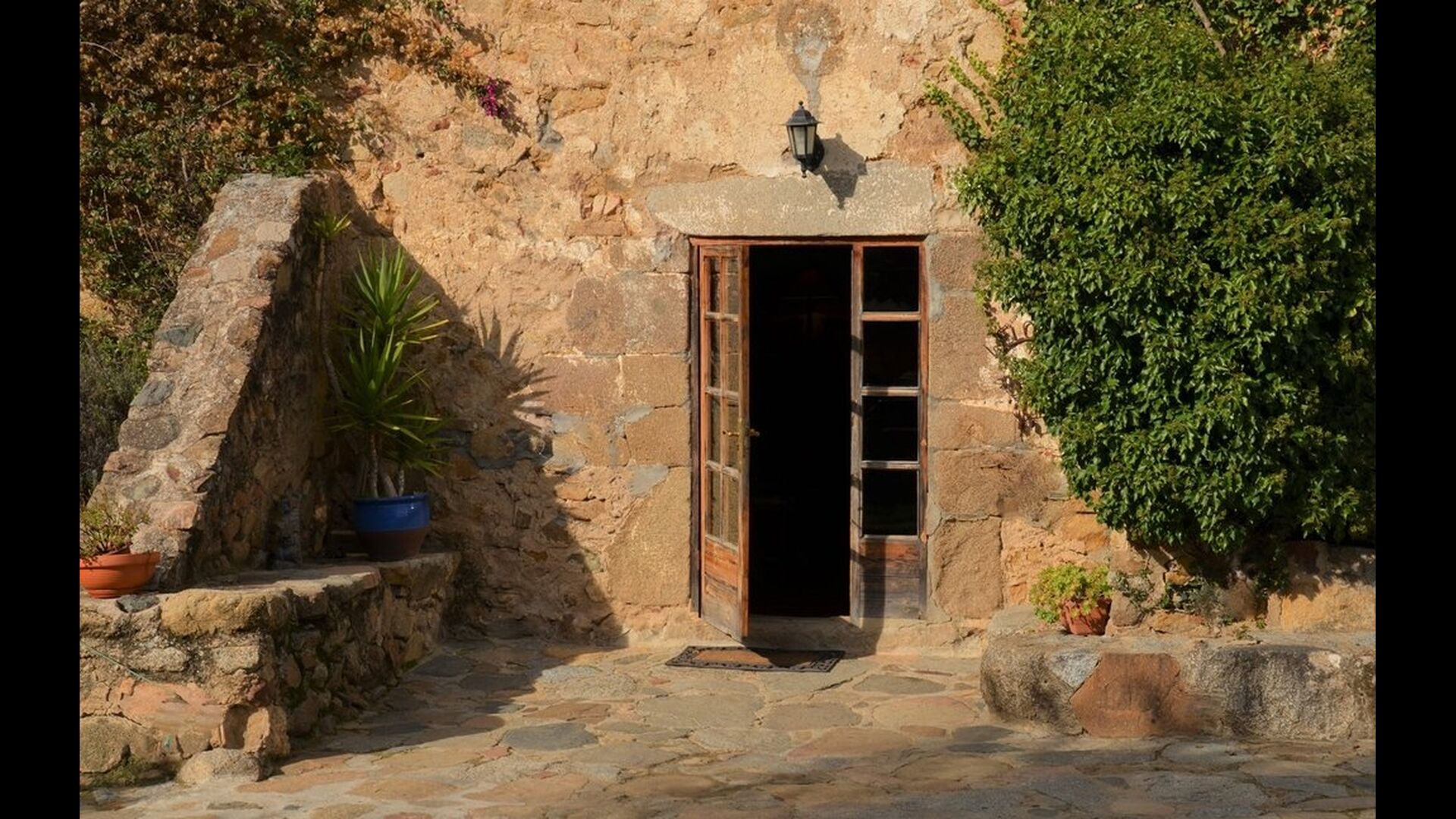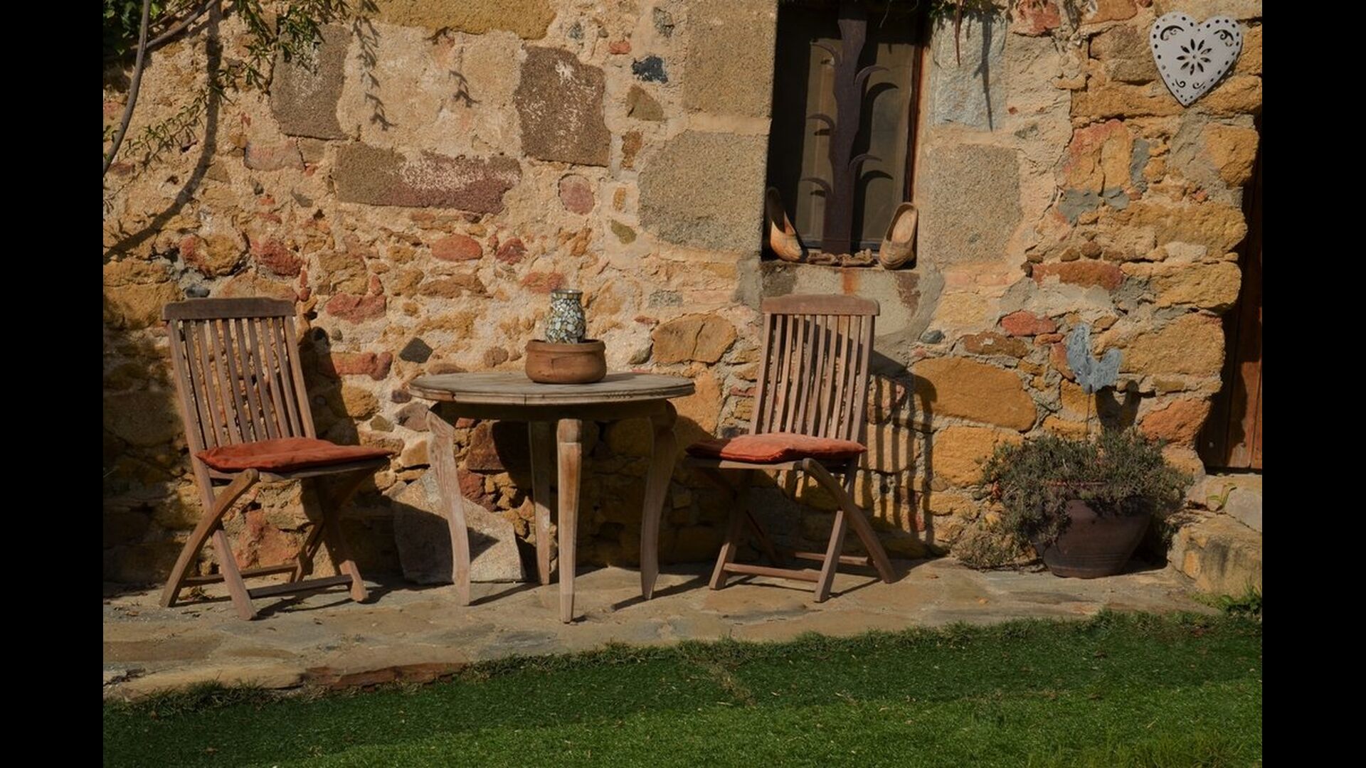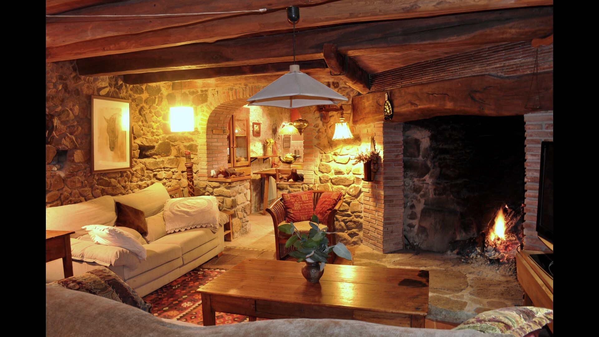 The house itself is incredibly authentic and very charming, with its original framework and construction. Although the house has been renovated, the owners have chosen to keep the house’s original construction which dates all the way back to 1663. These historical features of the house can among other things be recognized by the beautiful Catalan limestone walls and the wooden beams in the ceilings. The common rooms are located on the ground floor. Here you will find a cozy loungeroom with couches and chairs. There is a large flat screen TV and the house also has WIFI. The kitchen is very well equipped with fridge, freezer, dishwasher machine, stove, washing machine etc. It also has a small table which can seat around 4 people. In the next room is the dining room. The room is decorated with authentic wooden furniture, including a wooden piano. This room also has door which provides access to the garden.