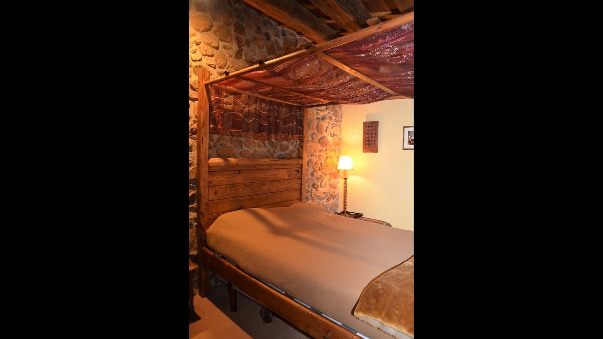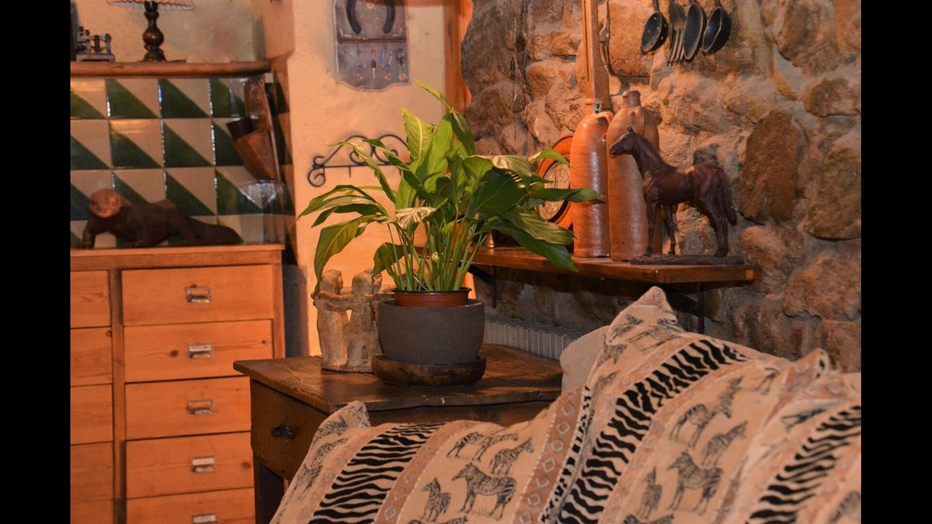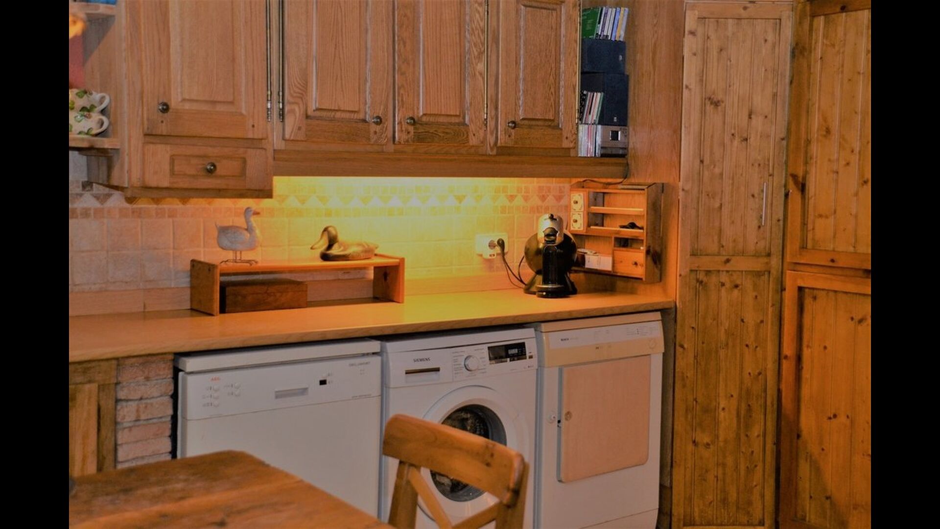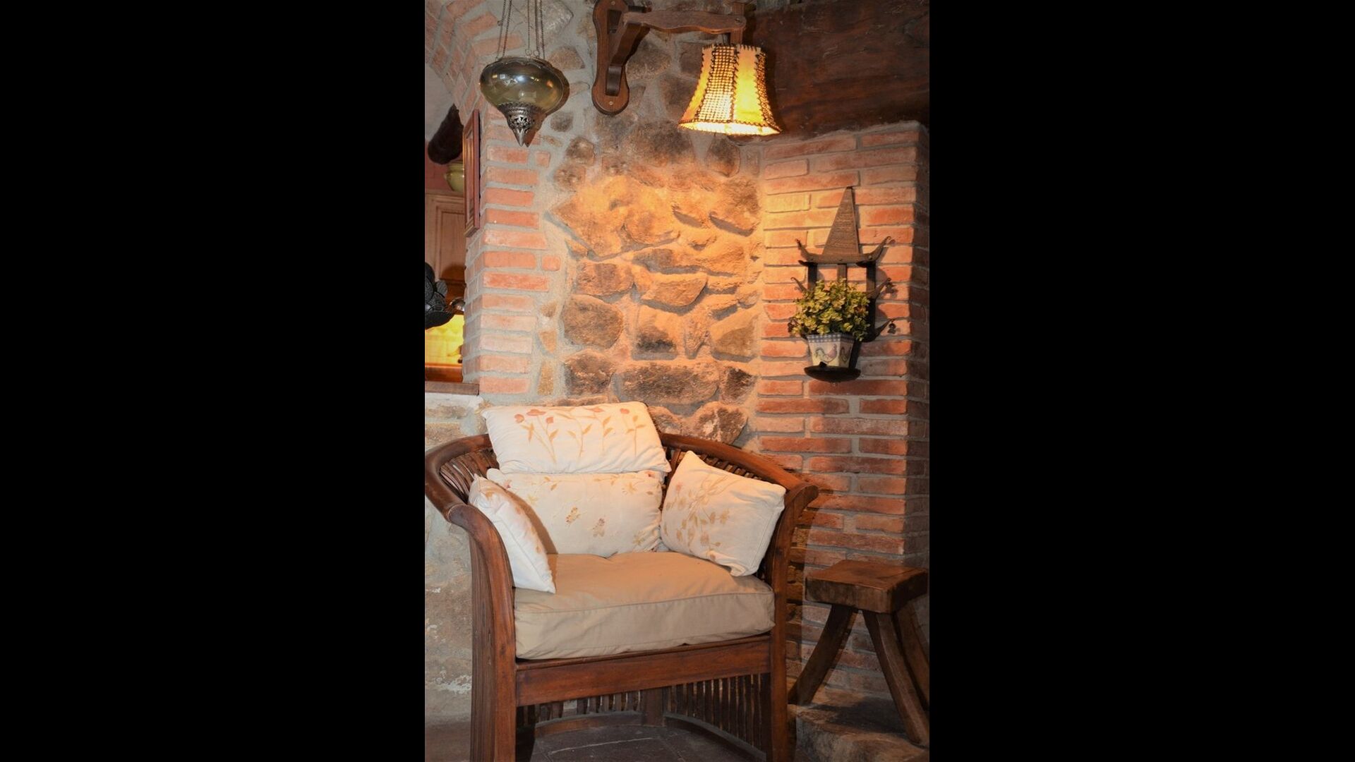 The house itself is incredibly authentic and very charming, with its original framework and construction. Although the house has been renovated, the owners have chosen to keep the house’s original construction which dates all the way back to 1663. These historical features of the house can among other things be recognized by the beautiful Catalan limestone walls and the wooden beams in the ceilings. The common rooms are located on the ground floor. Here you will find a cozy loungeroom with couches and chairs. There is a large flat screen TV and the house also has WIFI. The kitchen is very well equipped with fridge, freezer, dishwasher machine, stove, washing machine etc. It also has a small table which can seat around 4 people. In the next room is the dining room. The room is decorated with authentic wooden furniture, including a wooden piano. This room also has door which provides access to the garden.