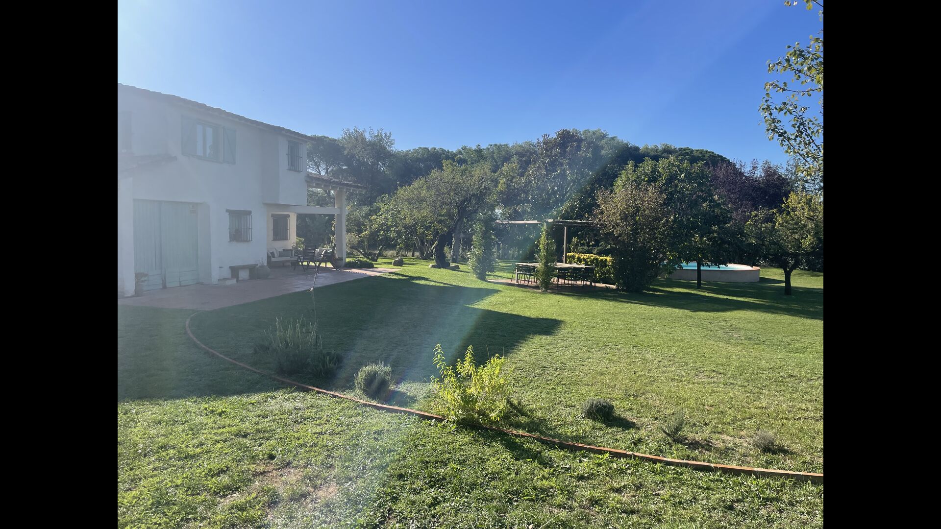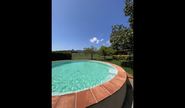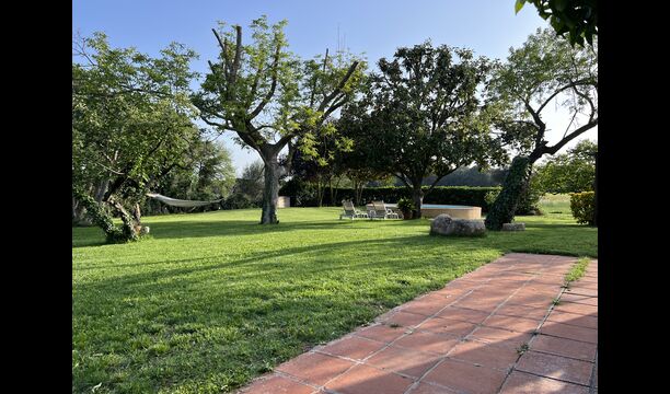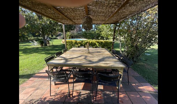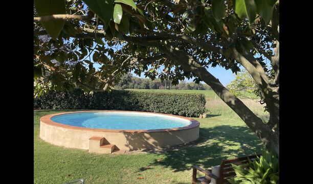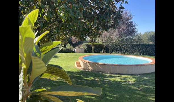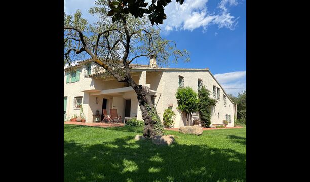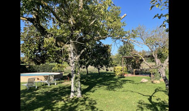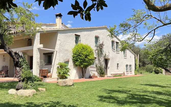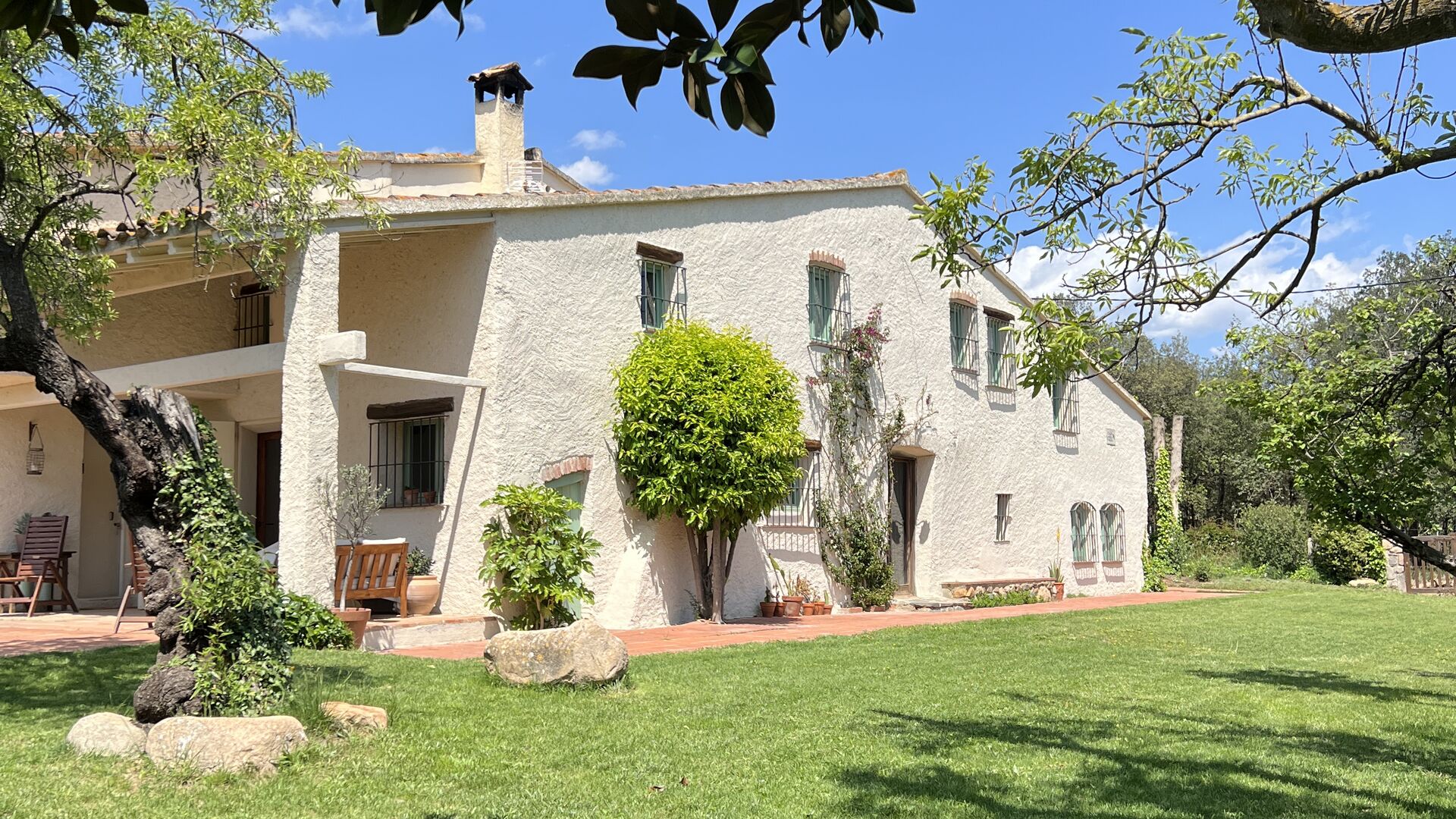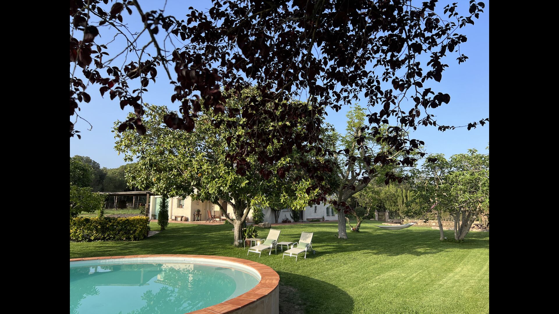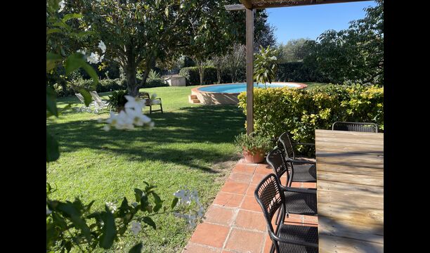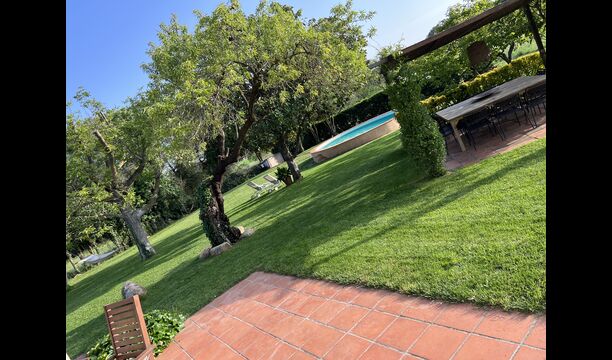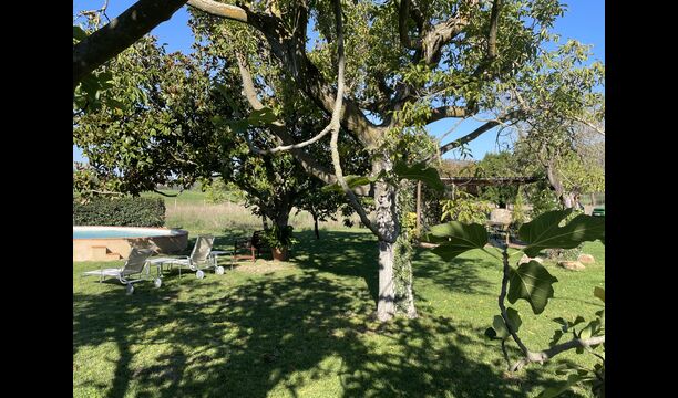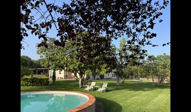 La “masia”, acuradament renovada, que amb els seus colors pastel regala records del sud de França, està envoltada d'un gran jardí > amb una terrassa ombrejada encantadora amb una gran taula; a més, hi ha la terrassa matinal més acollidora amb cantons de sofà just davant de la porta d'entrada a la casa. El jardí té molts arbres fruiters, que ofereixen molts llocs d'ombra, i una bella piscina rodona amb esglaons i un banc, que inclou; pots seure a l'aigua i gaudir de la vista.