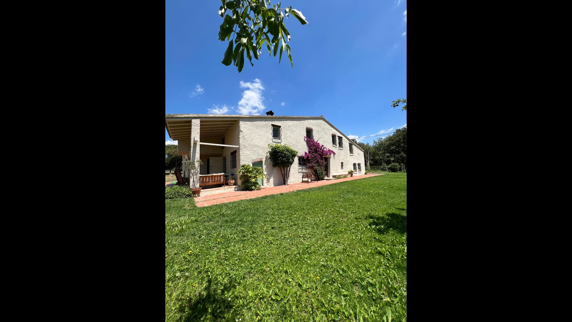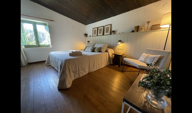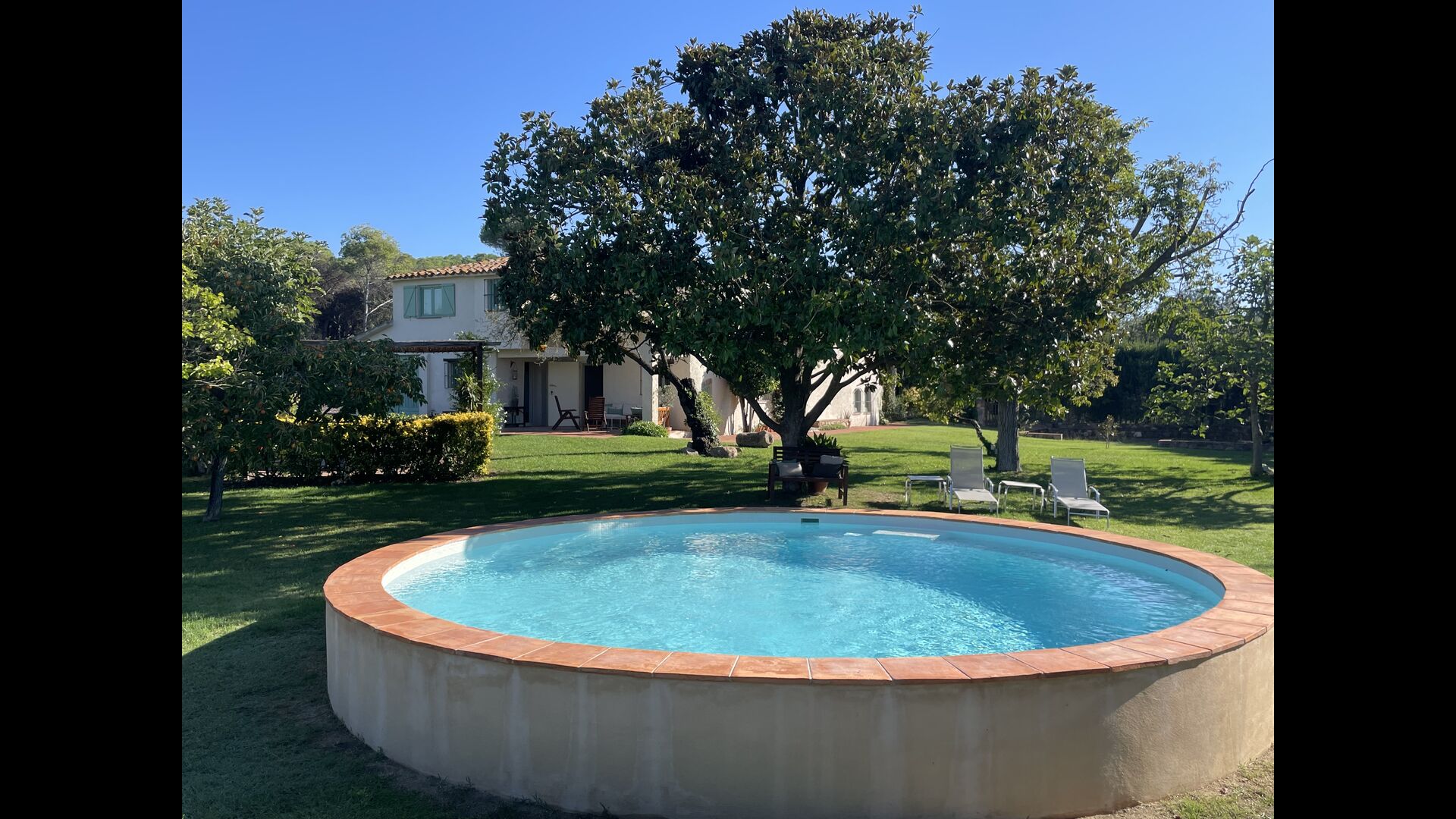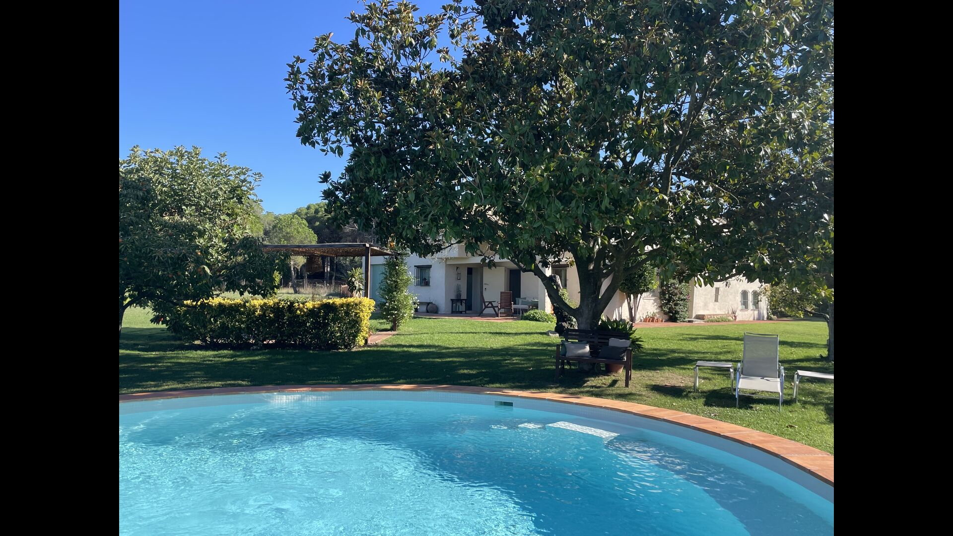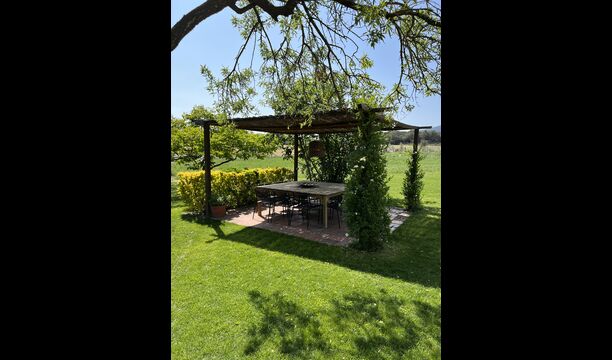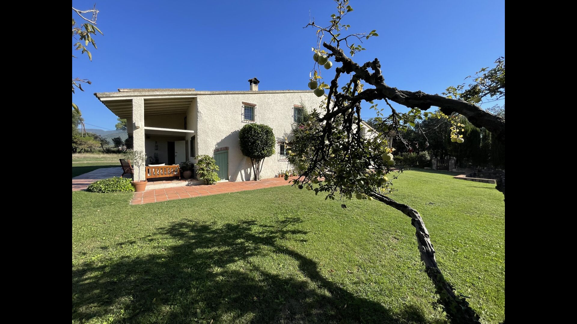 La “masia”, acuradament renovada, que amb els seus colors pastel regala records del sud de França, està envoltada d'un gran jardí > amb una terrassa ombrejada encantadora amb una gran taula; a més, hi ha la terrassa matinal més acollidora amb cantons de sofà just davant de la porta d'entrada a la casa. El jardí té molts arbres fruiters, que ofereixen molts llocs d'ombra, i una bella piscina rodona amb esglaons i un banc, que inclou; pots seure a l'aigua i gaudir de la vista.