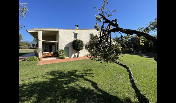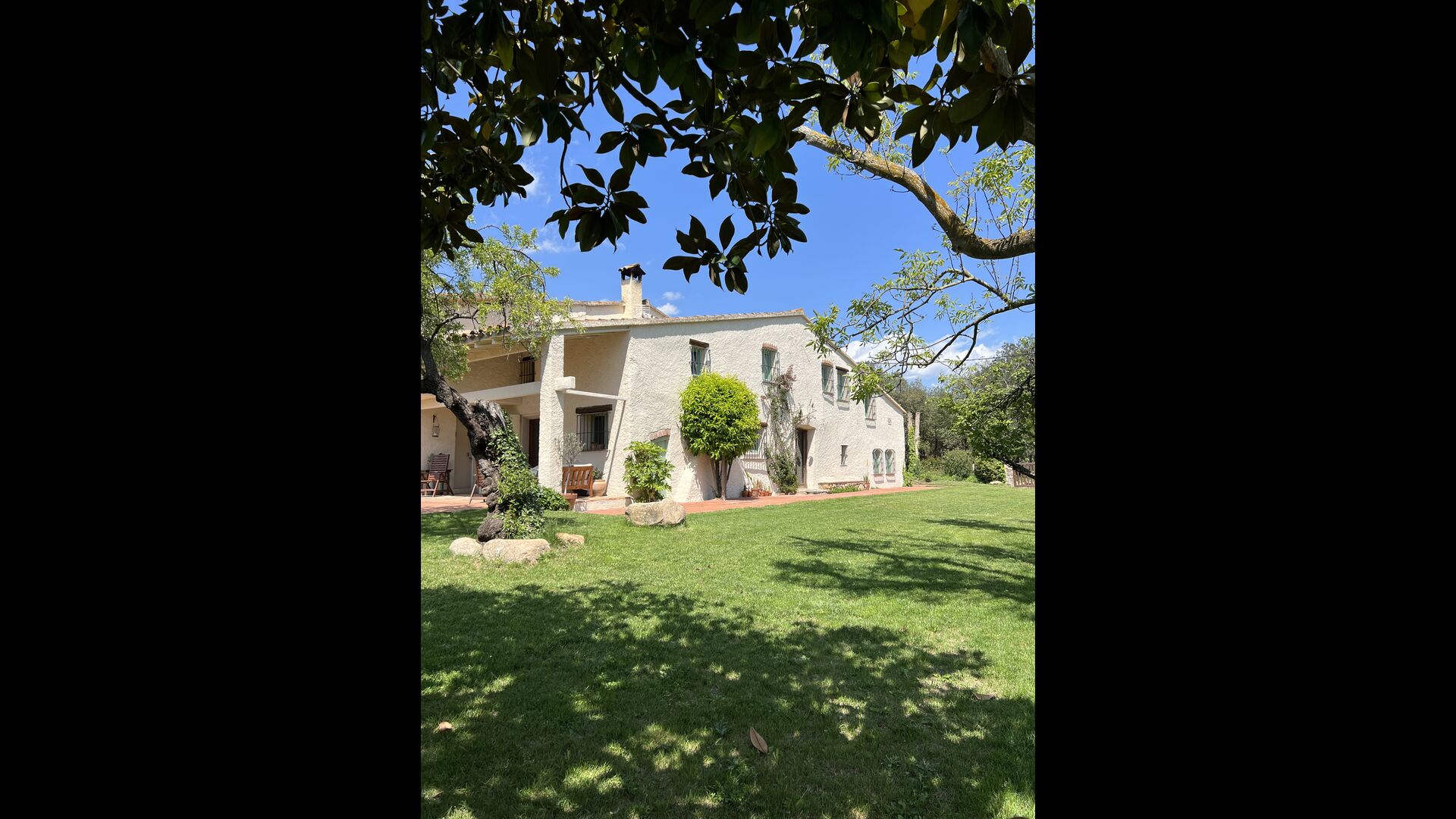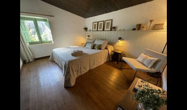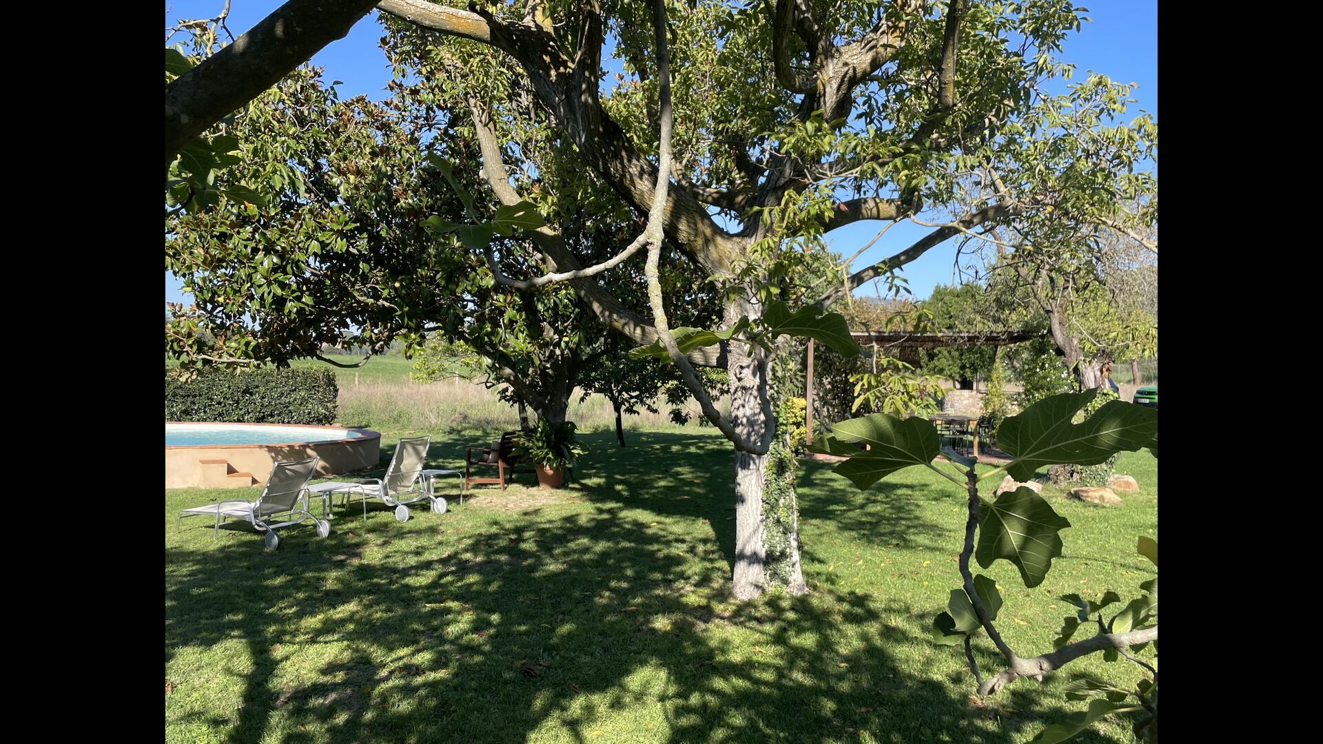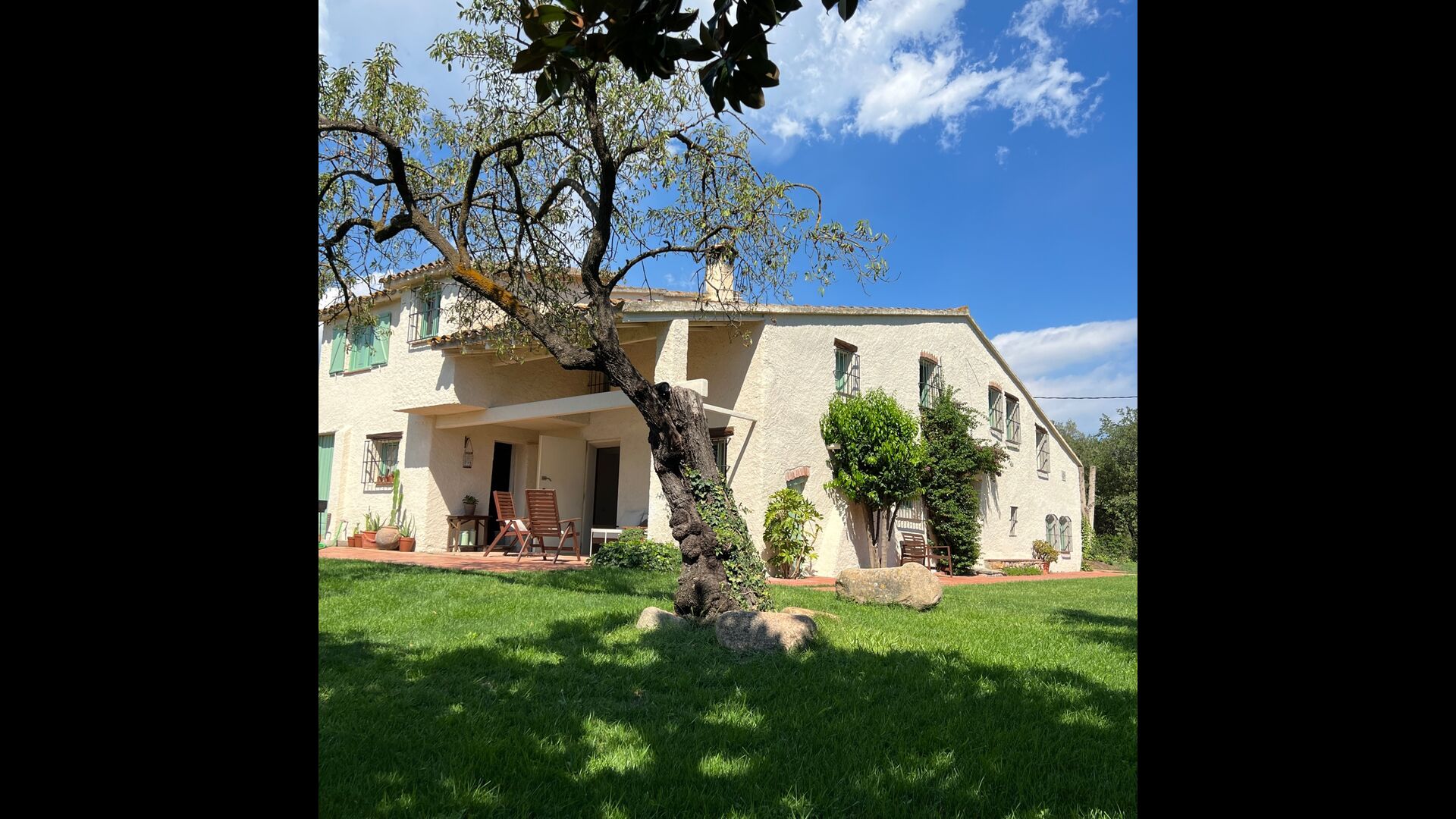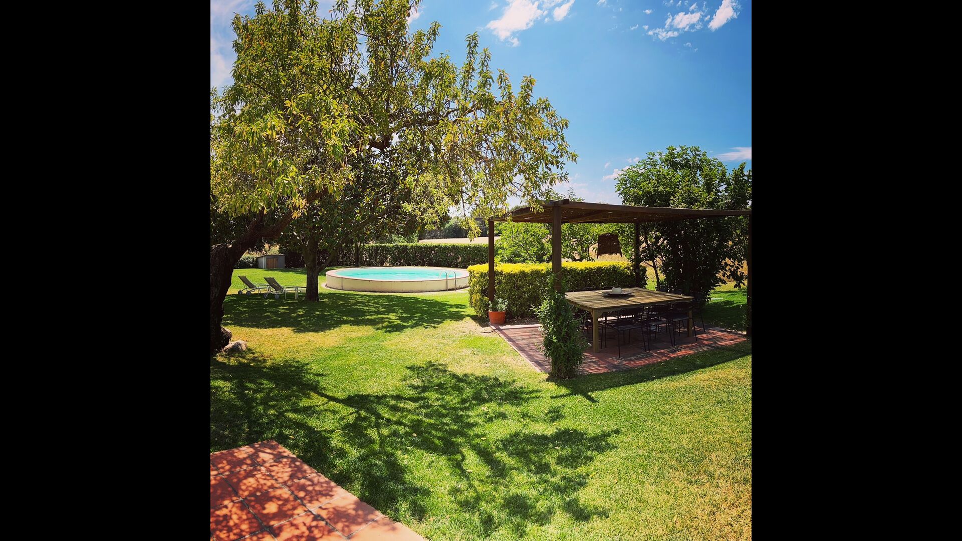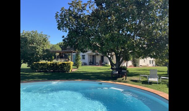 La “masia”, acuradament renovada, que amb els seus colors pastel regala records del sud de França, està envoltada d'un gran jardí > amb una terrassa ombrejada encantadora amb una gran taula; a més, hi ha la terrassa matinal més acollidora amb cantons de sofà just davant de la porta d'entrada a la casa. El jardí té molts arbres fruiters, que ofereixen molts llocs d'ombra, i una bella piscina rodona amb esglaons i un banc, que inclou; pots seure a l'aigua i gaudir de la vista.