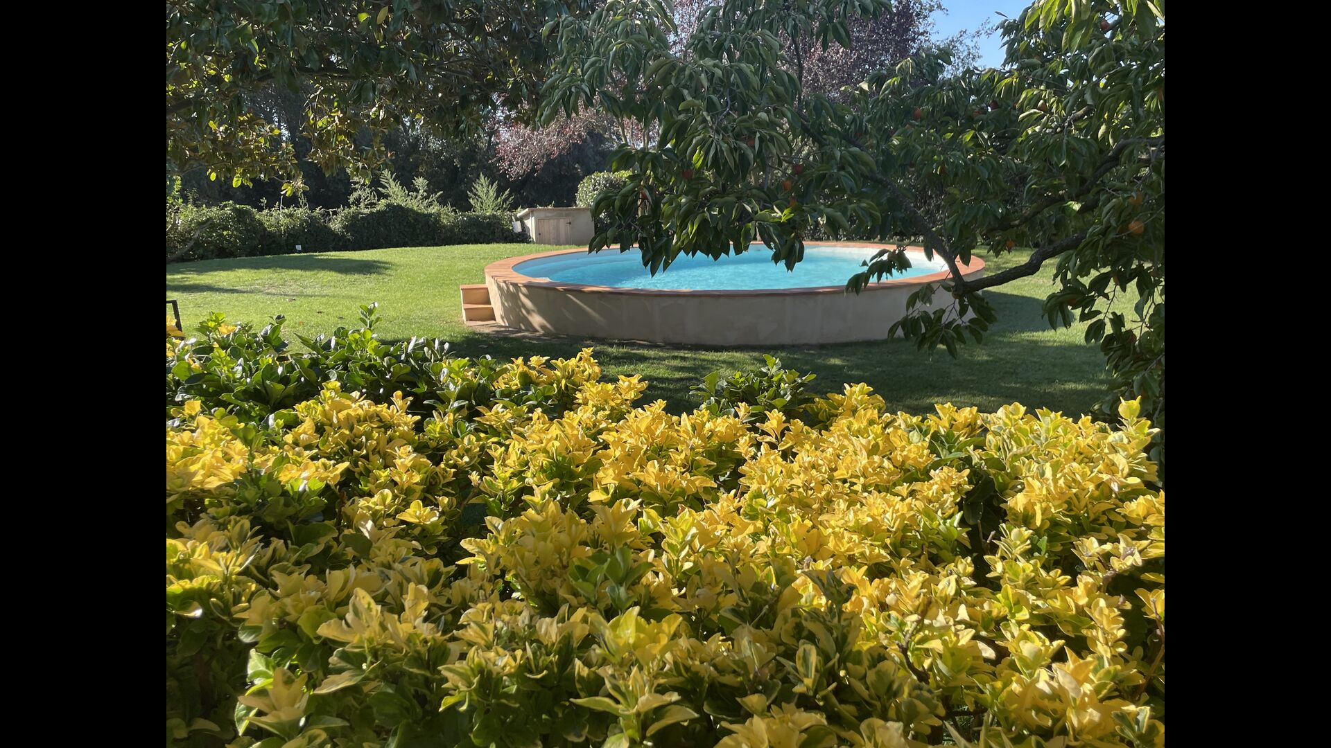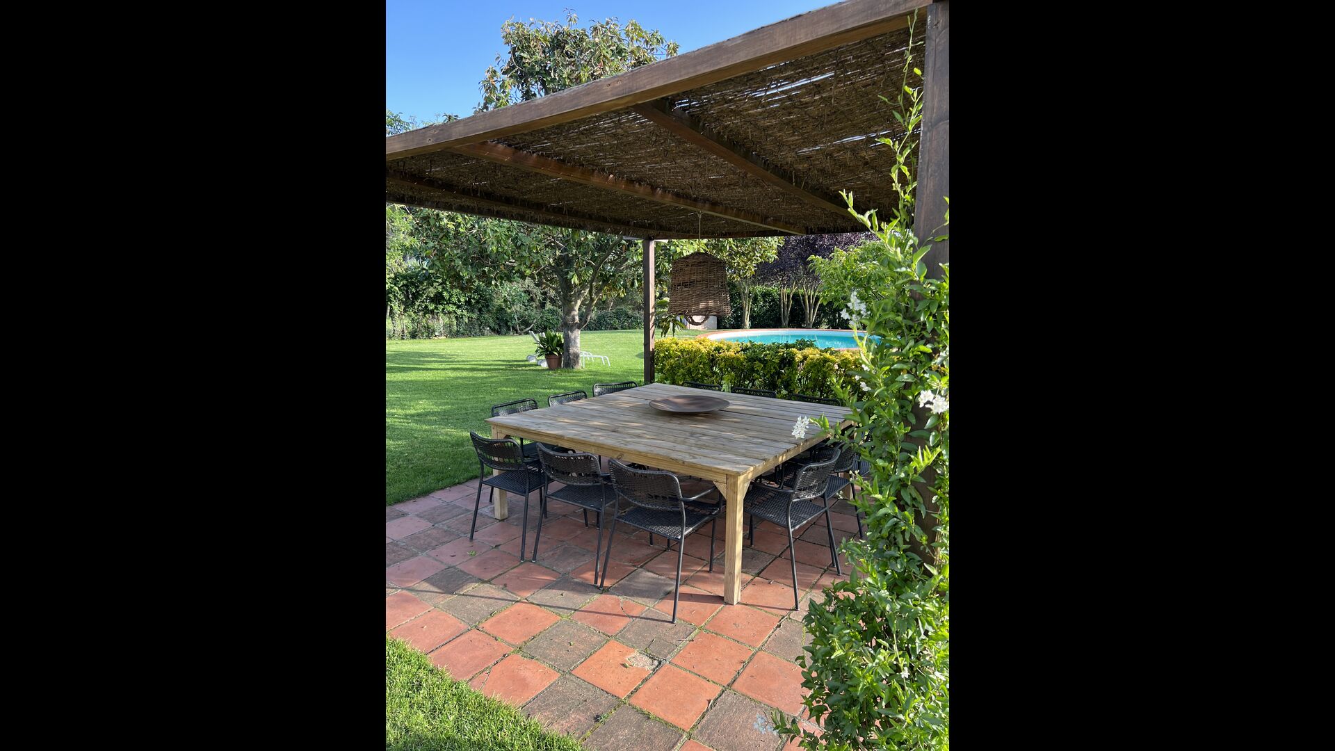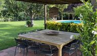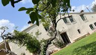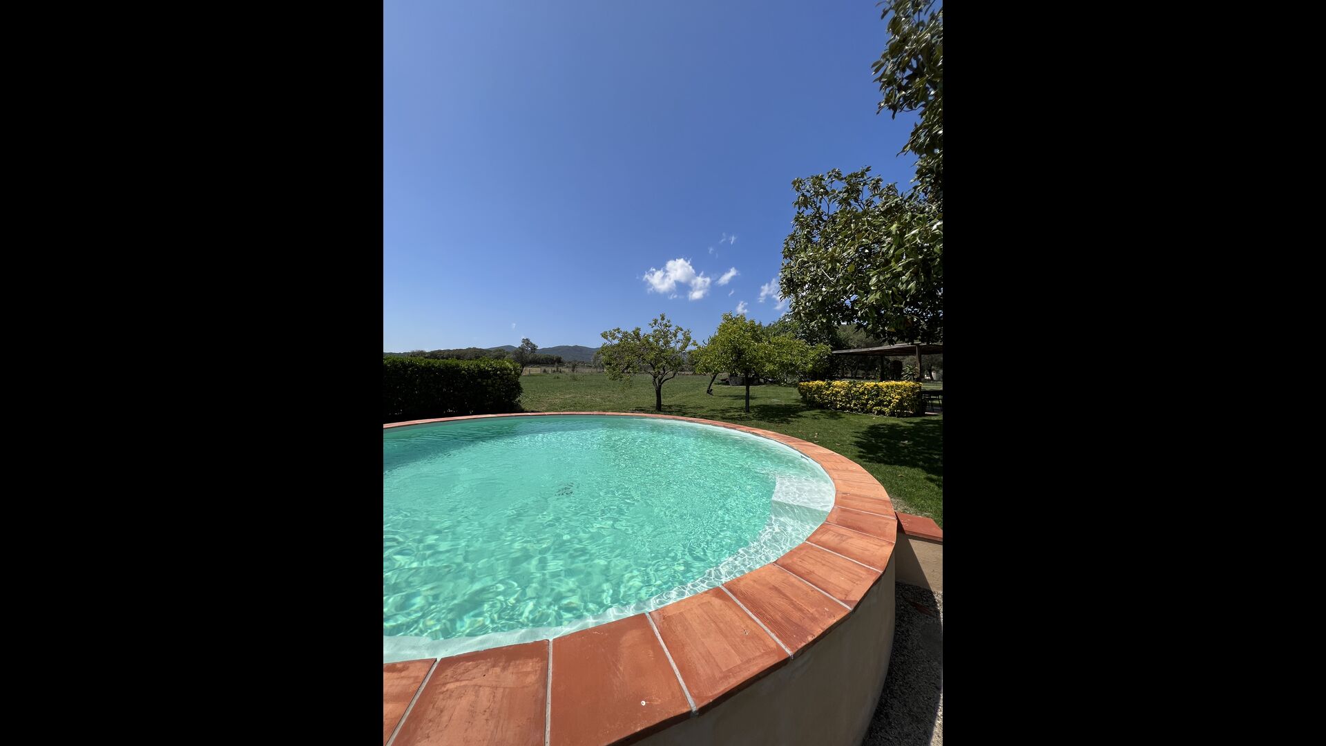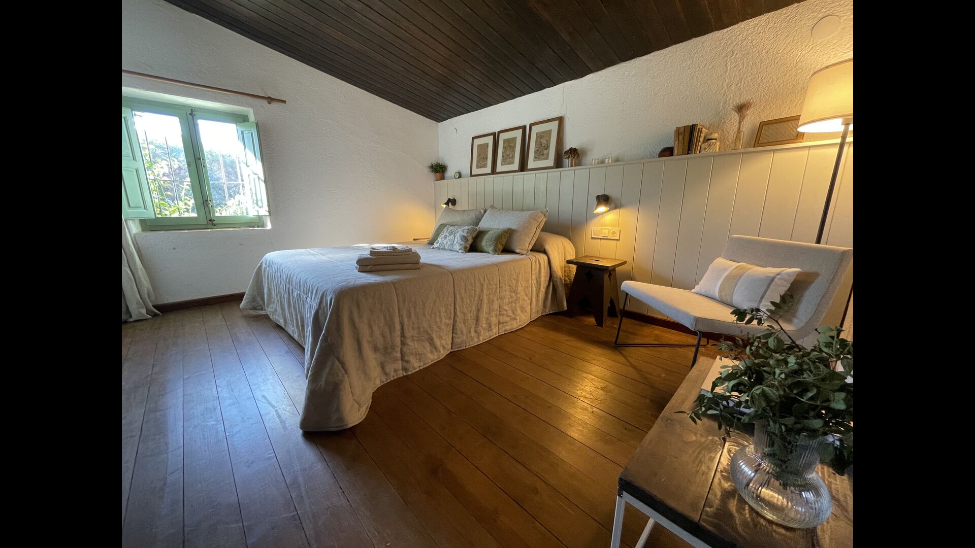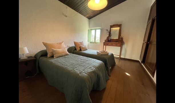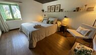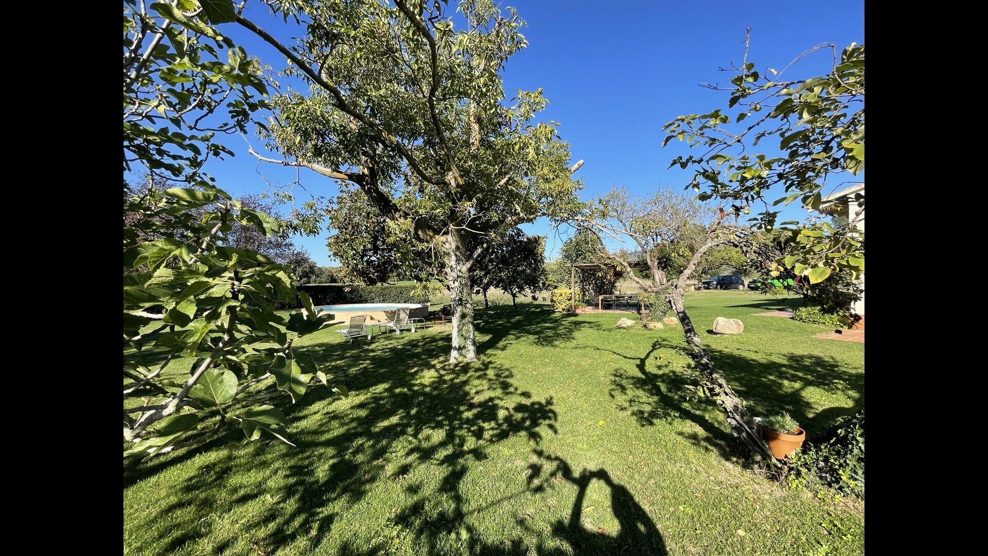La “masia”, acuradament renovada, que amb els seus colors pastel regala records del sud de França, està envoltada d'un gran jardí > amb una terrassa ombrejada encantadora amb una gran taula; a més, hi ha la terrassa matinal més acollidora amb cantons de sofà just davant de la porta d'entrada a la casa. El jardí té molts arbres fruiters, que ofereixen molts llocs d'ombra, i una bella piscina rodona amb esglaons i un banc, que inclou; pots seure a l'aigua i gaudir de la vista.