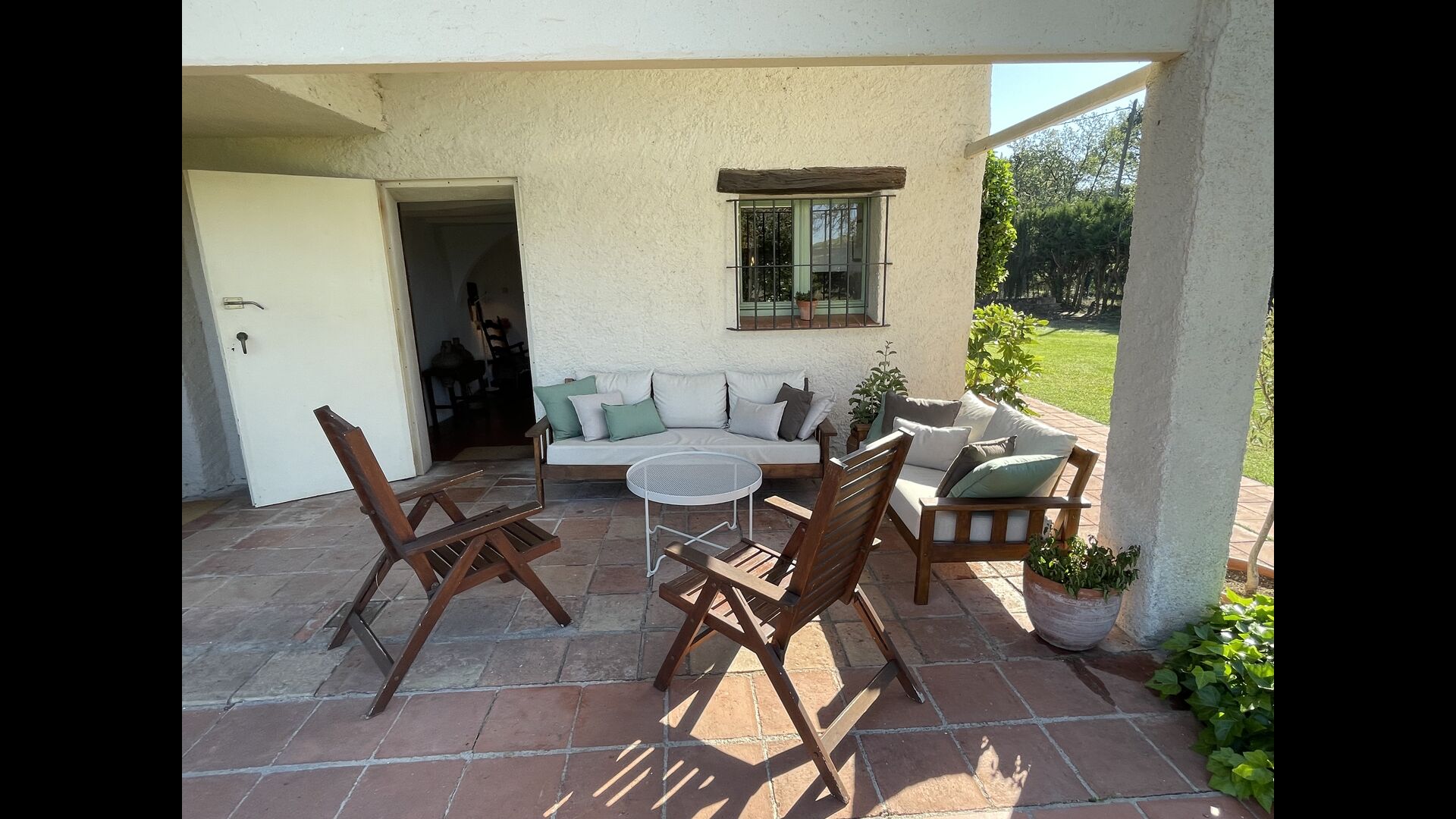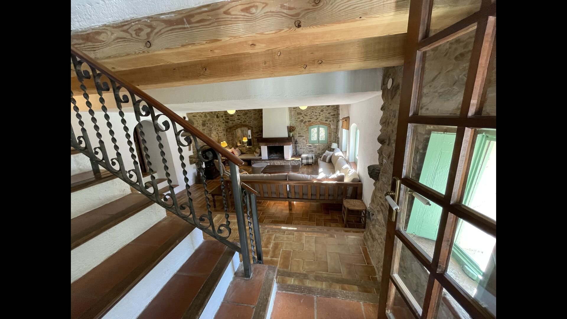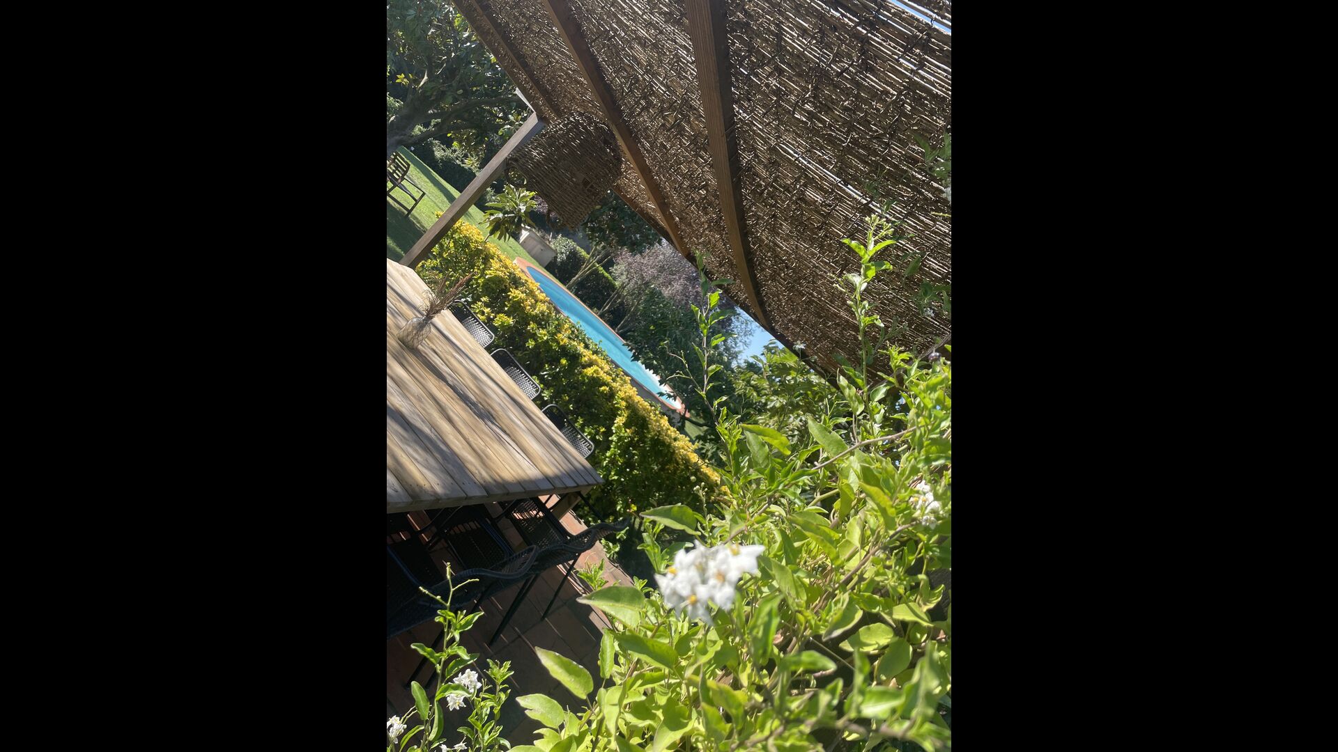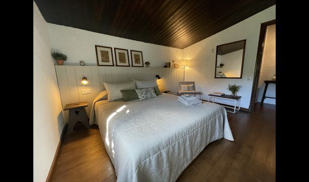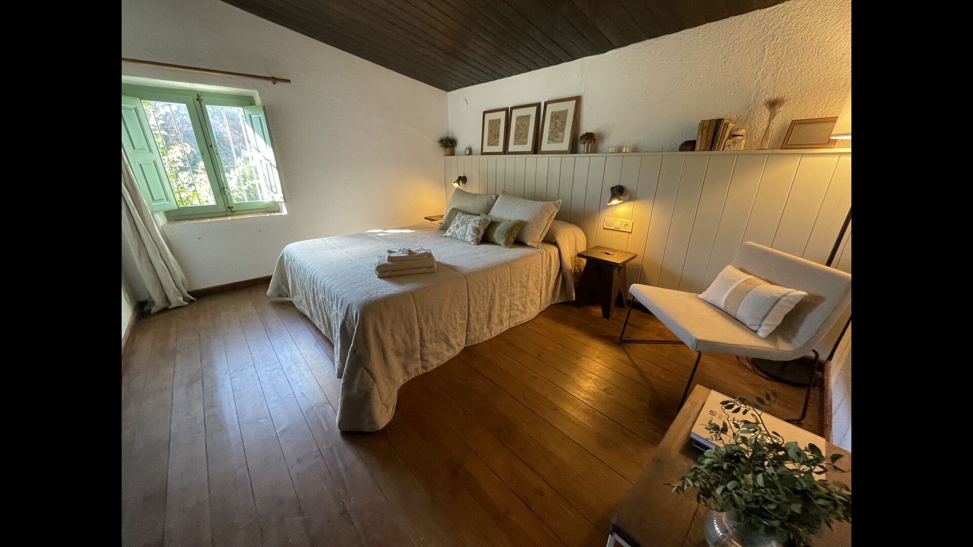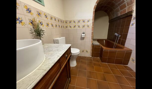 La “masia”, acuradament renovada, que amb els seus colors pastel regala records del sud de França, està envoltada d'un gran jardí > amb una terrassa ombrejada encantadora amb una gran taula; a més, hi ha la terrassa matinal més acollidora amb cantons de sofà just davant de la porta d'entrada a la casa. El jardí té molts arbres fruiters, que ofereixen molts llocs d'ombra, i una bella piscina rodona amb esglaons i un banc, que inclou; pots seure a l'aigua i gaudir de la vista.