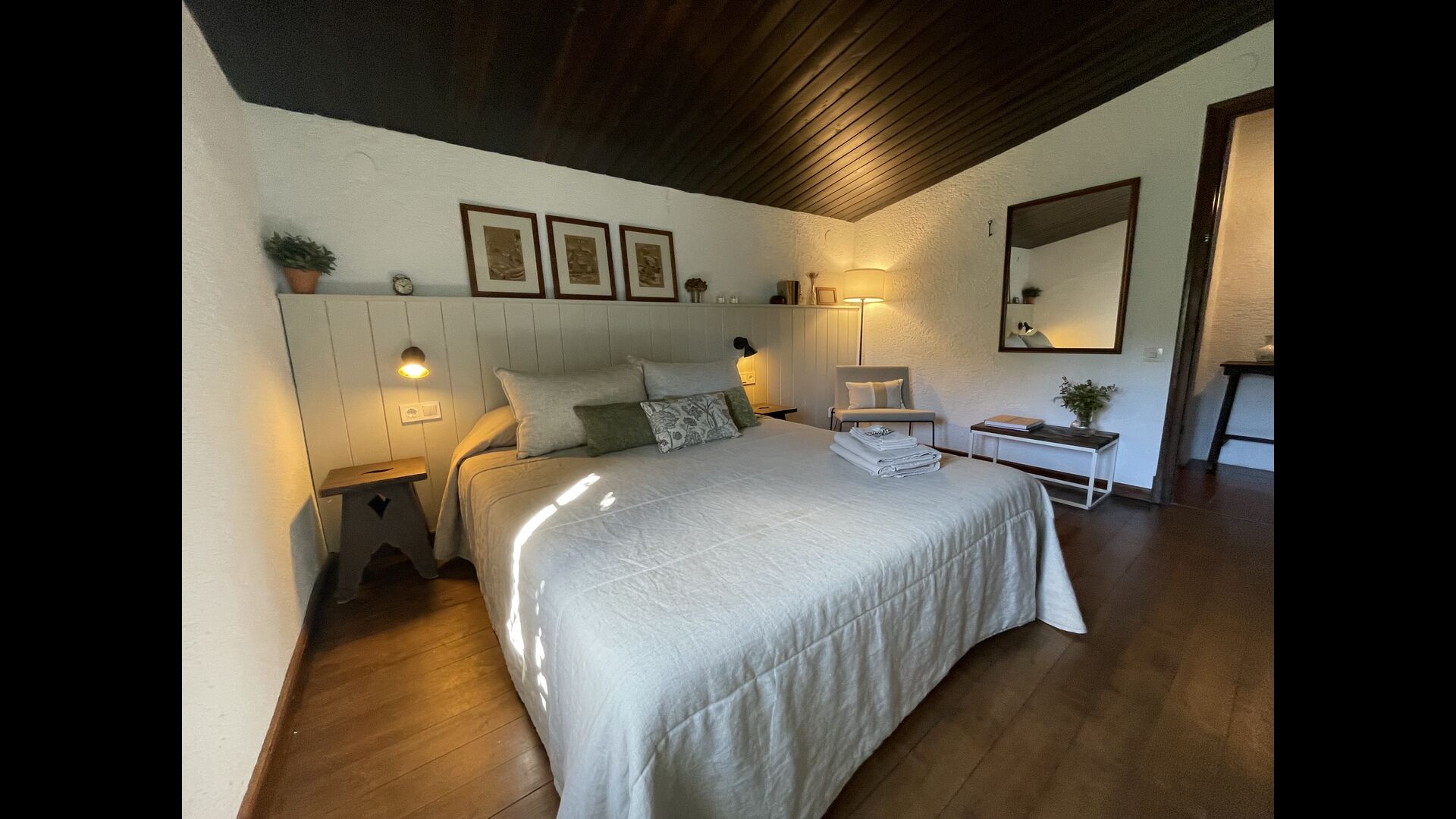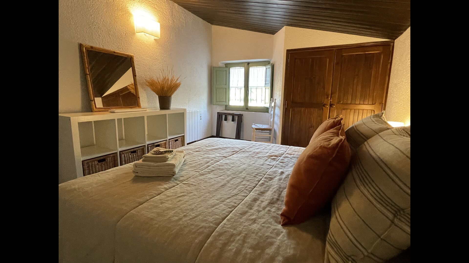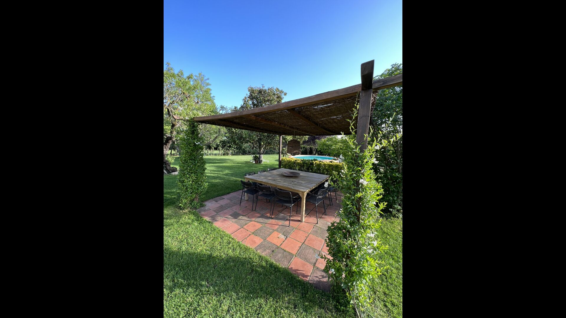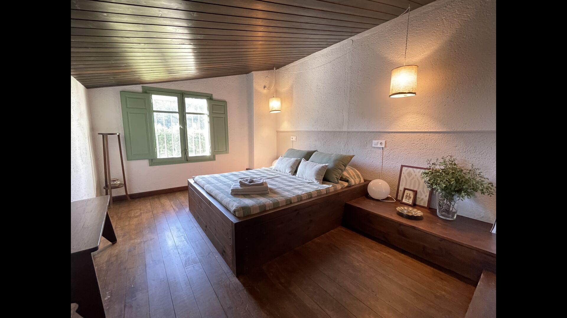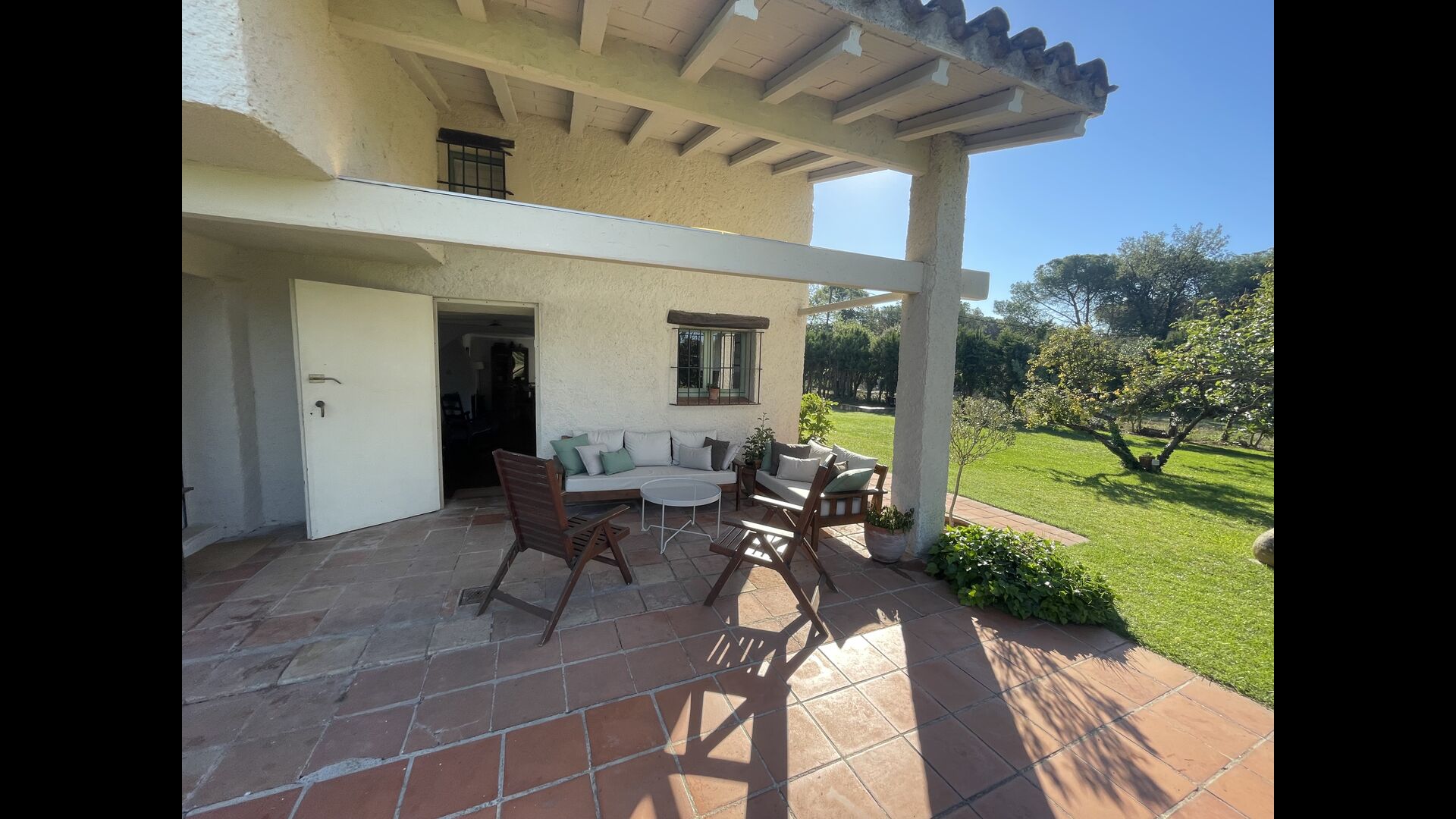 La “masia”, acuradament renovada, que amb els seus colors pastel regala records del sud de França, està envoltada d'un gran jardí > amb una terrassa ombrejada encantadora amb una gran taula; a més, hi ha la terrassa matinal més acollidora amb cantons de sofà just davant de la porta d'entrada a la casa. El jardí té molts arbres fruiters, que ofereixen molts llocs d'ombra, i una bella piscina rodona amb esglaons i un banc, que inclou; pots seure a l'aigua i gaudir de la vista.