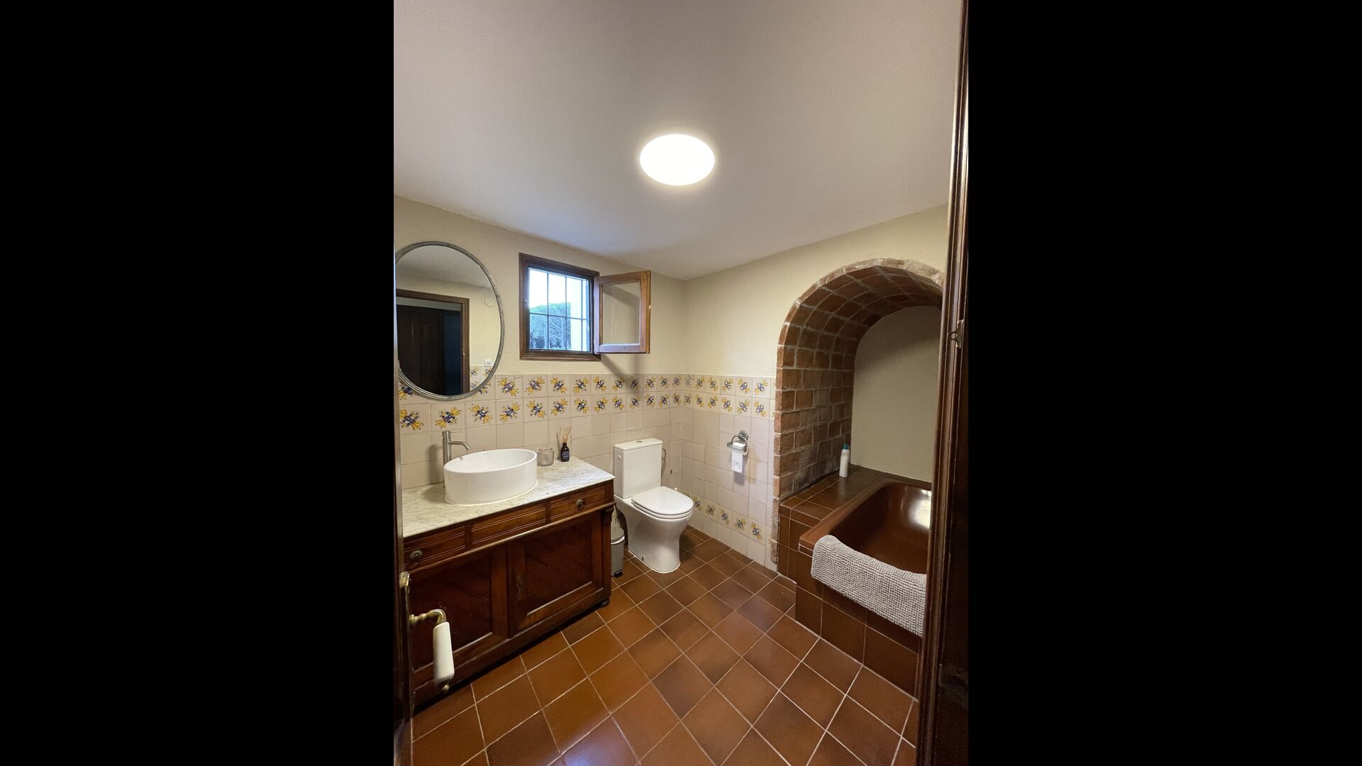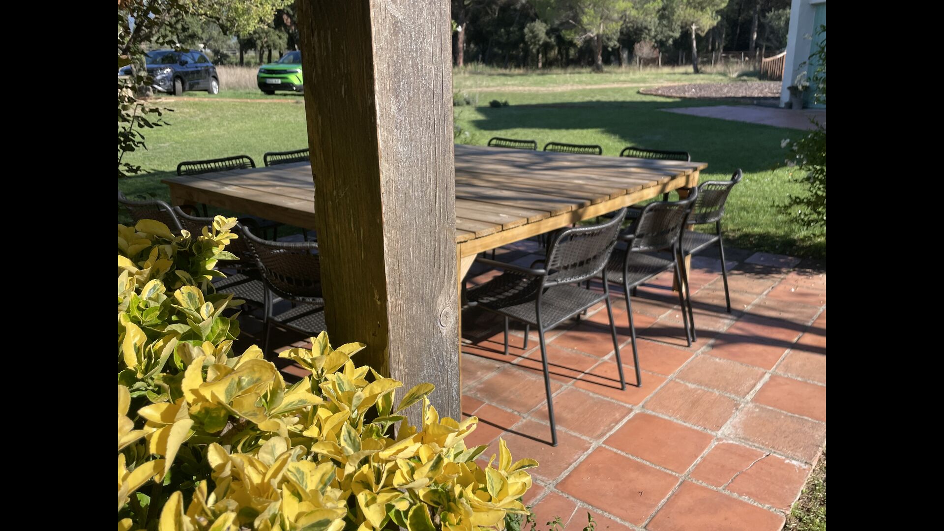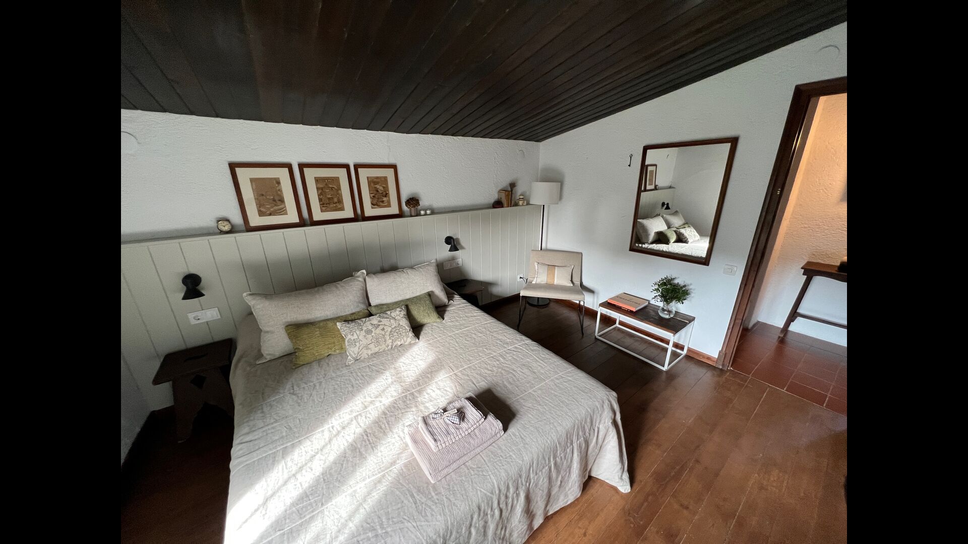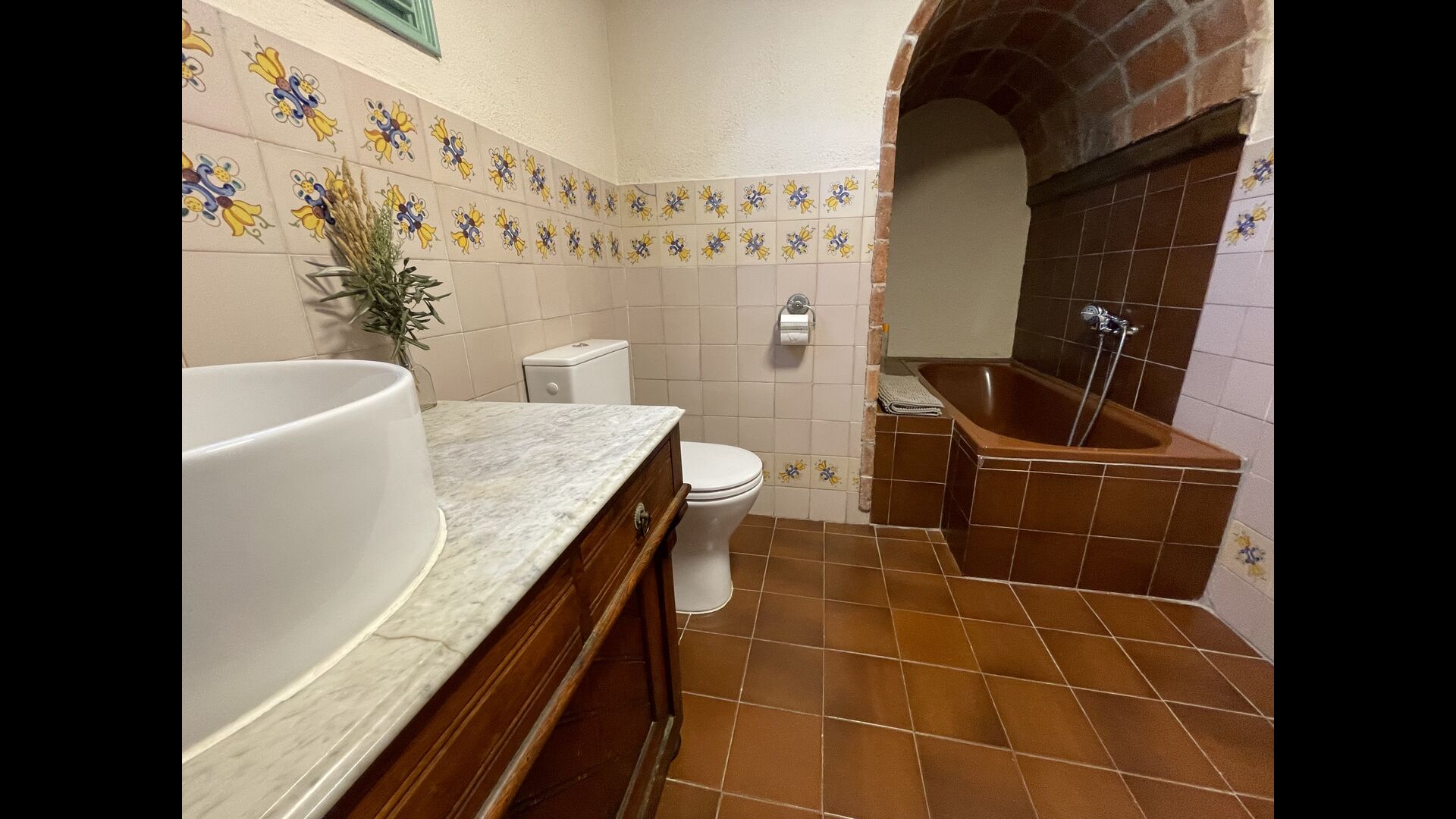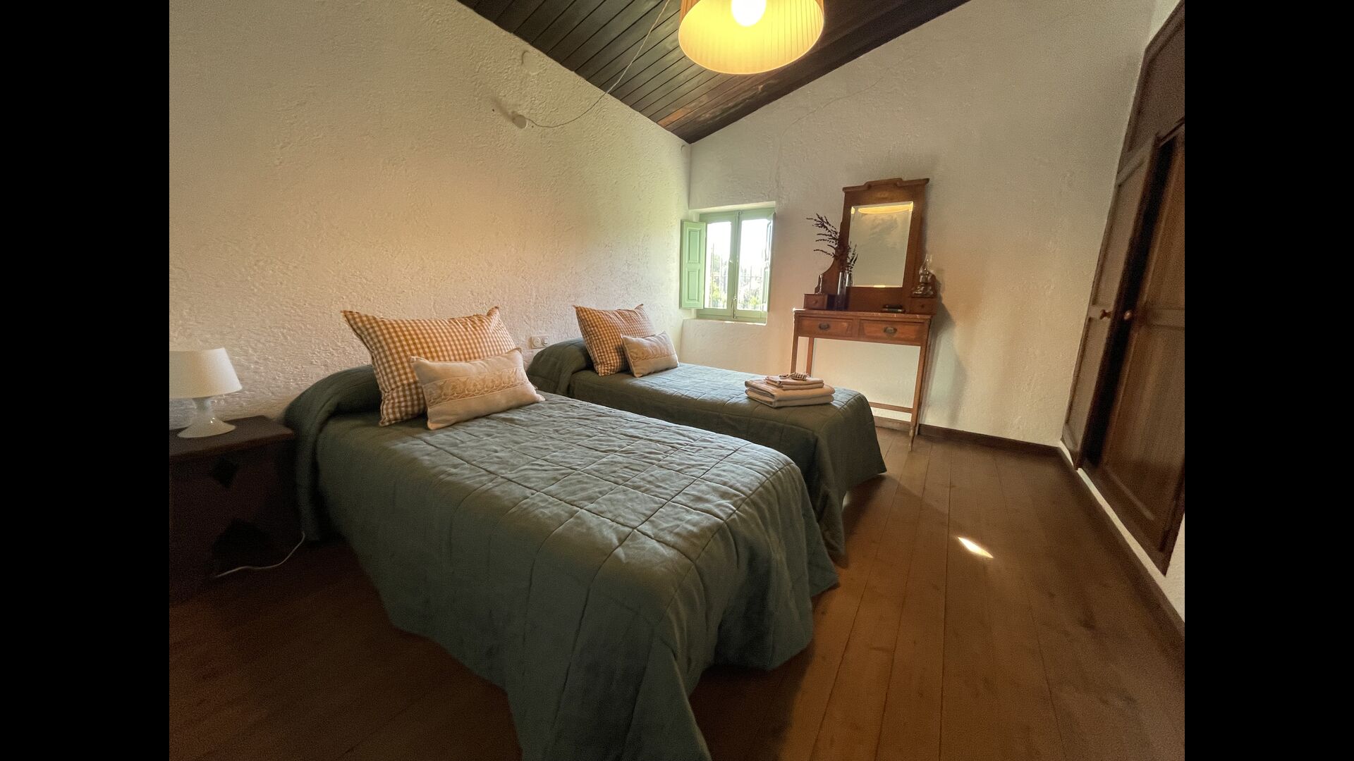 La “masia”, acuradament renovada, que amb els seus colors pastel regala records del sud de França, està envoltada d'un gran jardí > amb una terrassa ombrejada encantadora amb una gran taula; a més, hi ha la terrassa matinal més acollidora amb cantons de sofà just davant de la porta d'entrada a la casa. El jardí té molts arbres fruiters, que ofereixen molts llocs d'ombra, i una bella piscina rodona amb esglaons i un banc, que inclou; pots seure a l'aigua i gaudir de la vista.