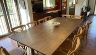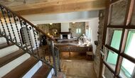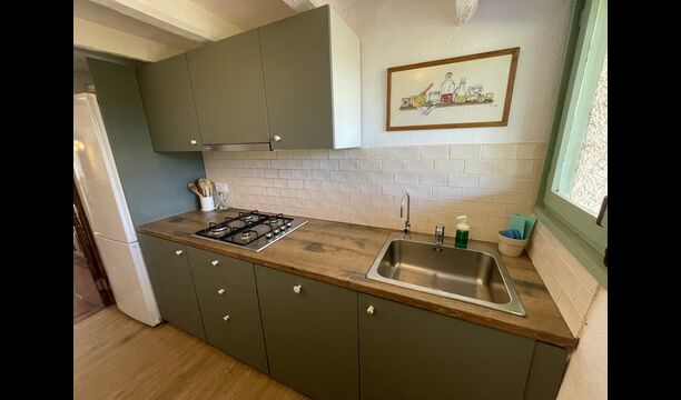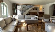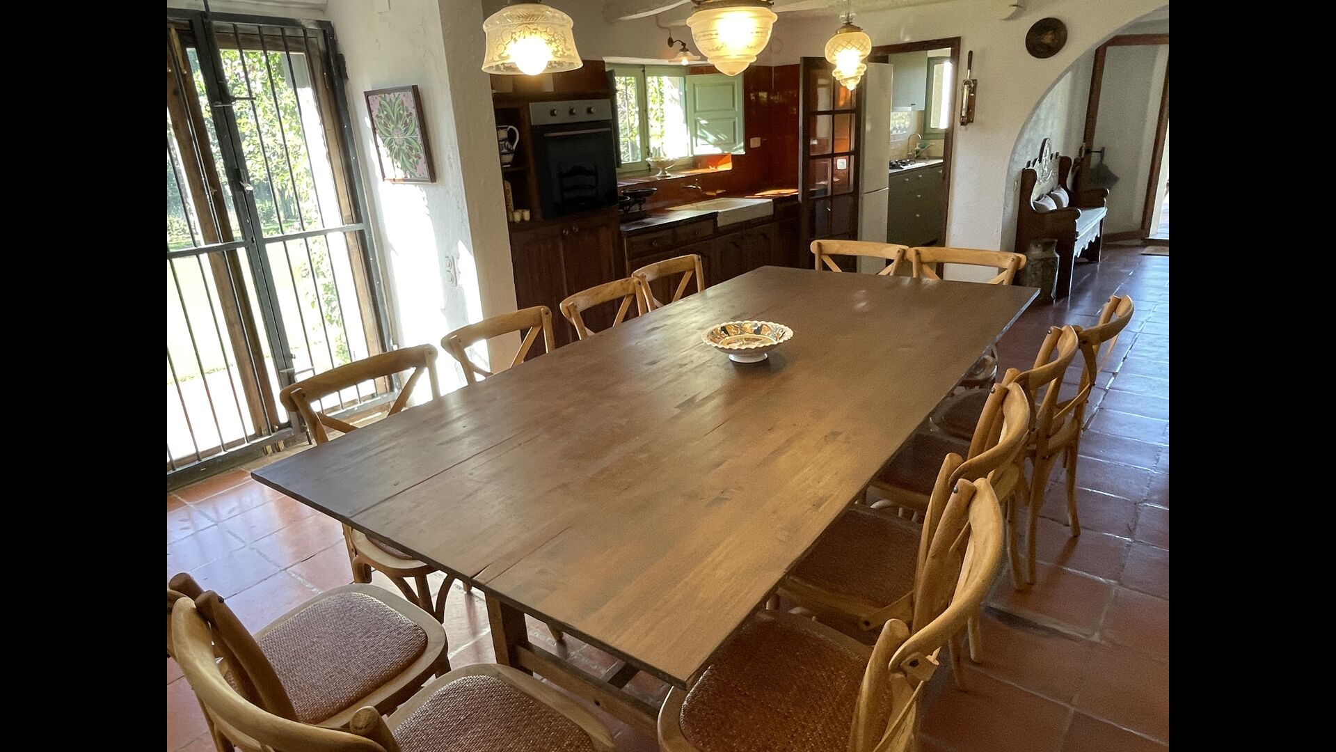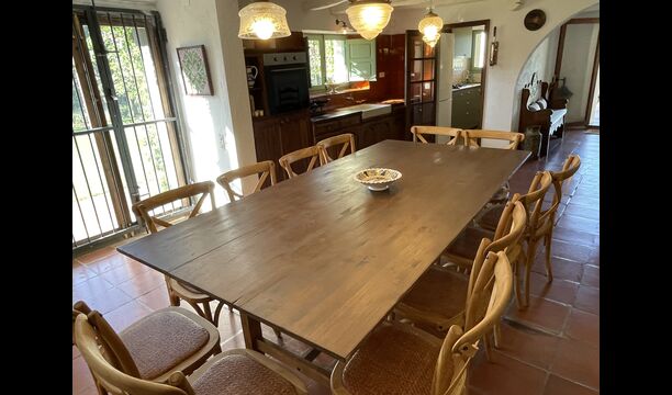 La casa consta de dues plantes – planta baixa i planta primera – i té capacitat per a 12 persones. Hi ha 6 habitacions – tot på primer pis. Si entres per la porta principal de la planta baixa, trobaràs un entre amb molt d'espai. Si entres més enllà, trobaràs el menjador i les cuines – una cuina clàssica, amb un acabat preciós, així com una cuina moderna – just un al costat de l'altre. Hi ha 2 neveres, quatre cremadors de gas amb campana a la cuina moderna i un forn a la cuina clàssica . Aquí també trobareu el rentavaixelles. Les dues cuines tenen una pica. I al costat de la cuina clàssica, hi ha una taula de menjador agradable on hi ha espai – i cadires per – 12 persones. Hi ha bona il·luminació a l'habitació – tant des de la porta principal, sinó també des d'una altra porta que també da al jardí.