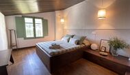 Quan sortiu de la sala d'estar, podeu pujar per les escales que separen la sala d'estar i el menjador. Així és com puges al primer pis. Aquí dalt hi trobareu un llarg passadís on hi ha les 6 habitacions – 3 habitacions amb llit de matrimoni, 2 amb llit individual i 1 habitació amb llit de matrimoni (adaptat per a adults i nens) – així com un bany amb banyera. També hi ha un altre bany amb dutxa.