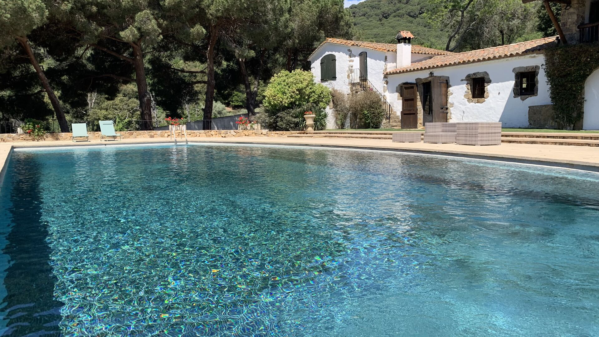 El punt de trobada natural de la casa és la bonica piscina, que és increïblement gran! Així que si t'agrada nedar, hi ha moltes oportunitats per a això. Però, per descomptat, també podeu prendre els raigs de sol catalans en una de les moltes i còmodes gandules que hi ha al costat de la piscina.