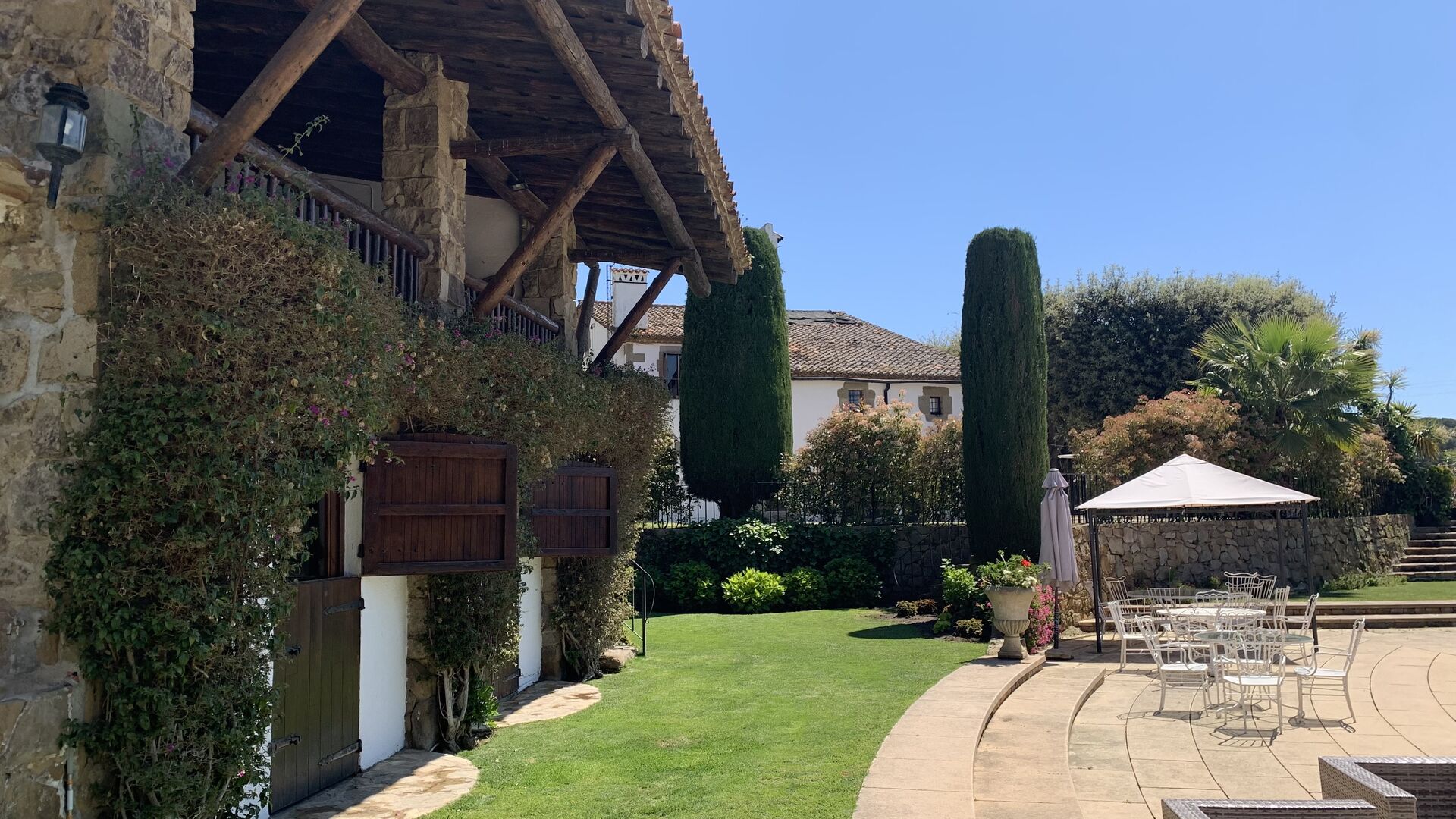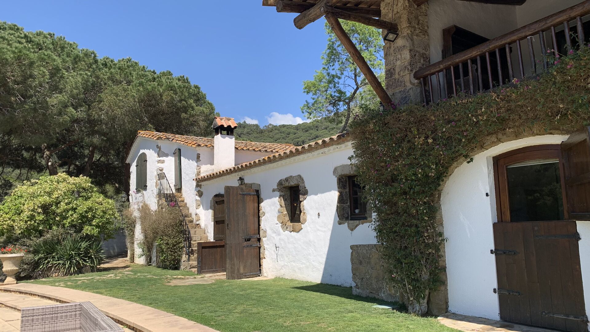 El camí de grava recorre el turó amunt, a través del paisatge exuberant i verd. Quan us acosteu a Vila Valdes, passareu per una bonica porta d'arc. Un cop arribes a casa, de seguida t'adones que Vila Valdes és una cosa molt especial! Una autèntica i preciosa casa de camp catalana envoltada d'un bell i exuberant jardí amb flors i arbres impressionants.