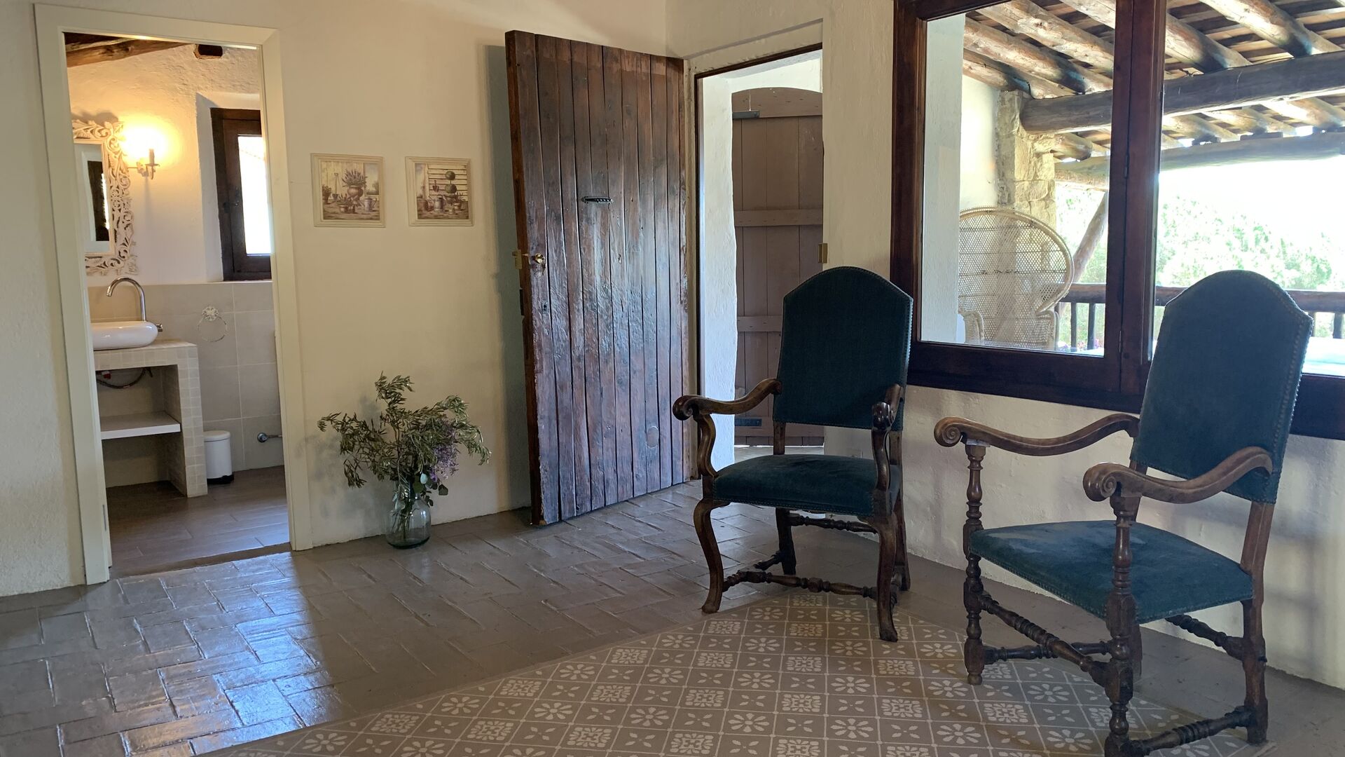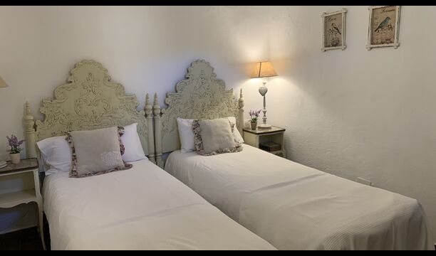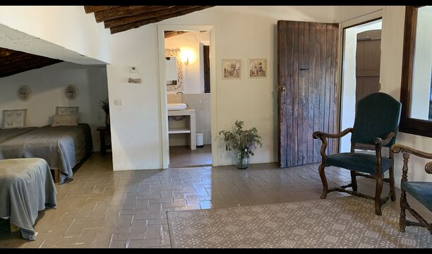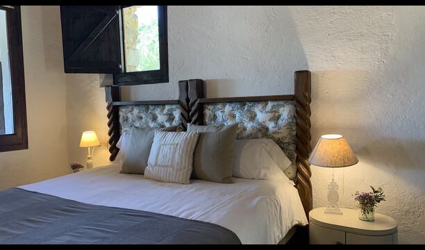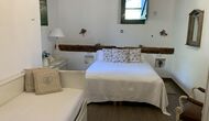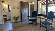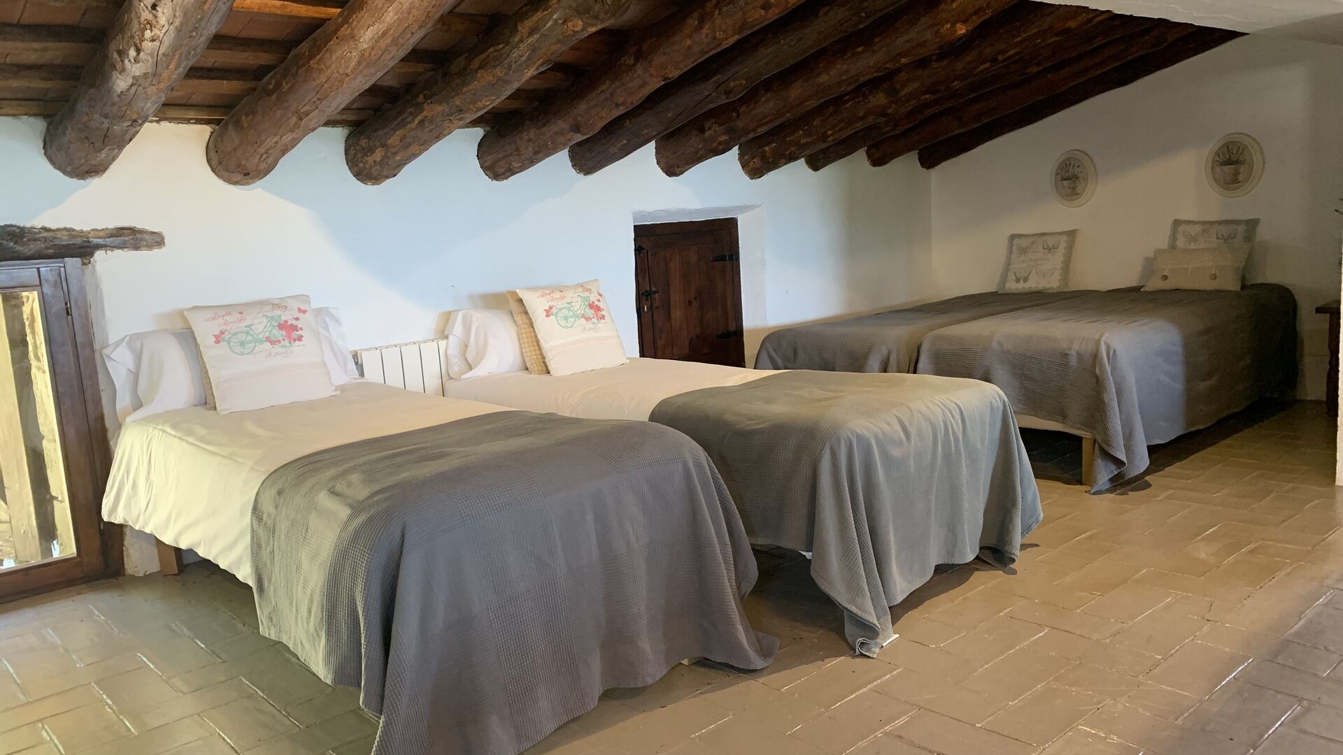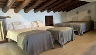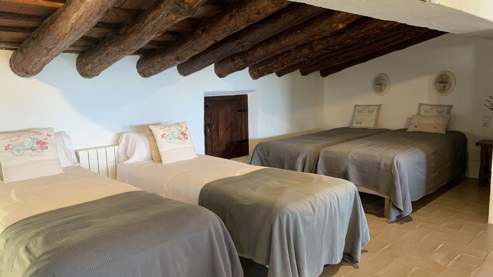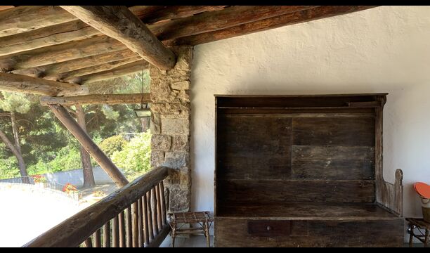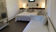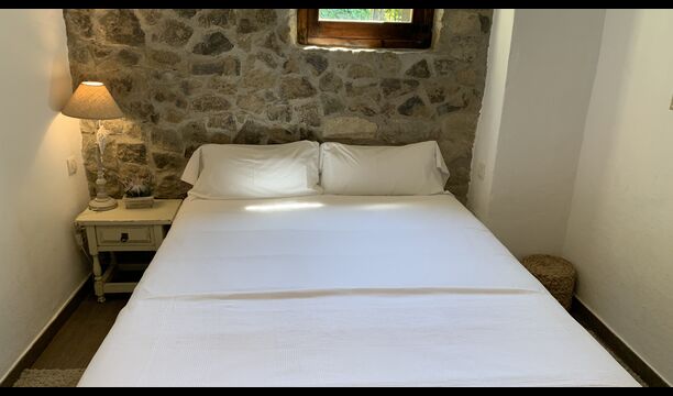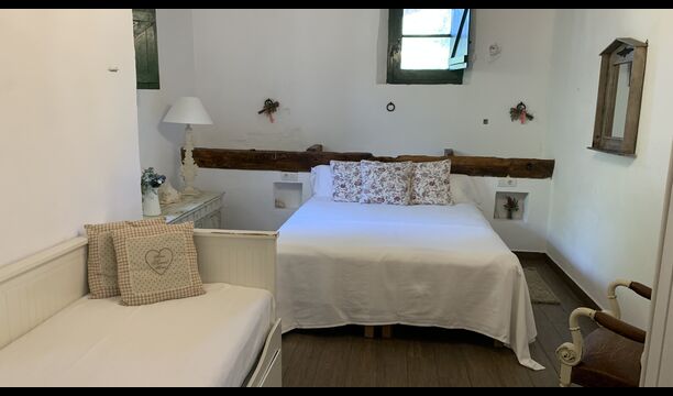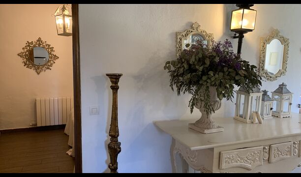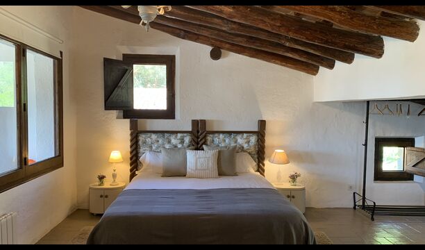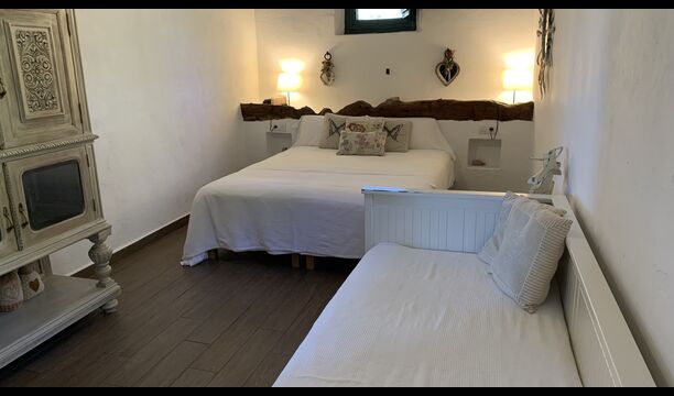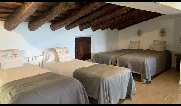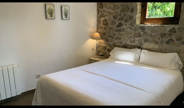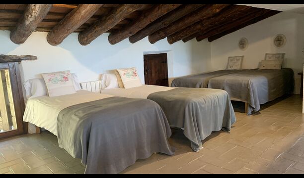 Al costat de la zona de barbacoa hi ha l'entrada a la planta baixa de la casa. L'interior de la casa ha estat molt ben reformat, però per descomptat amb respecte per l'arquitectura original de la casa i els seus nombrosos detalls preciosos, com els bonics arcs i les bigues de fusta del sostre, s'han conservat. Aquí trobareu quatre habitacions grans. Dues de les habitacions són triples amb un llit de matrimoni i un llit individual, i les altres dues habitacions són habitacions dobles, una amb dos llits individuals i l'altra amb un llit de matrimoni. Les habitacions comparteixen un gran bany a la planta baixa.
