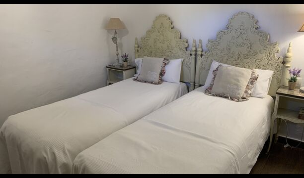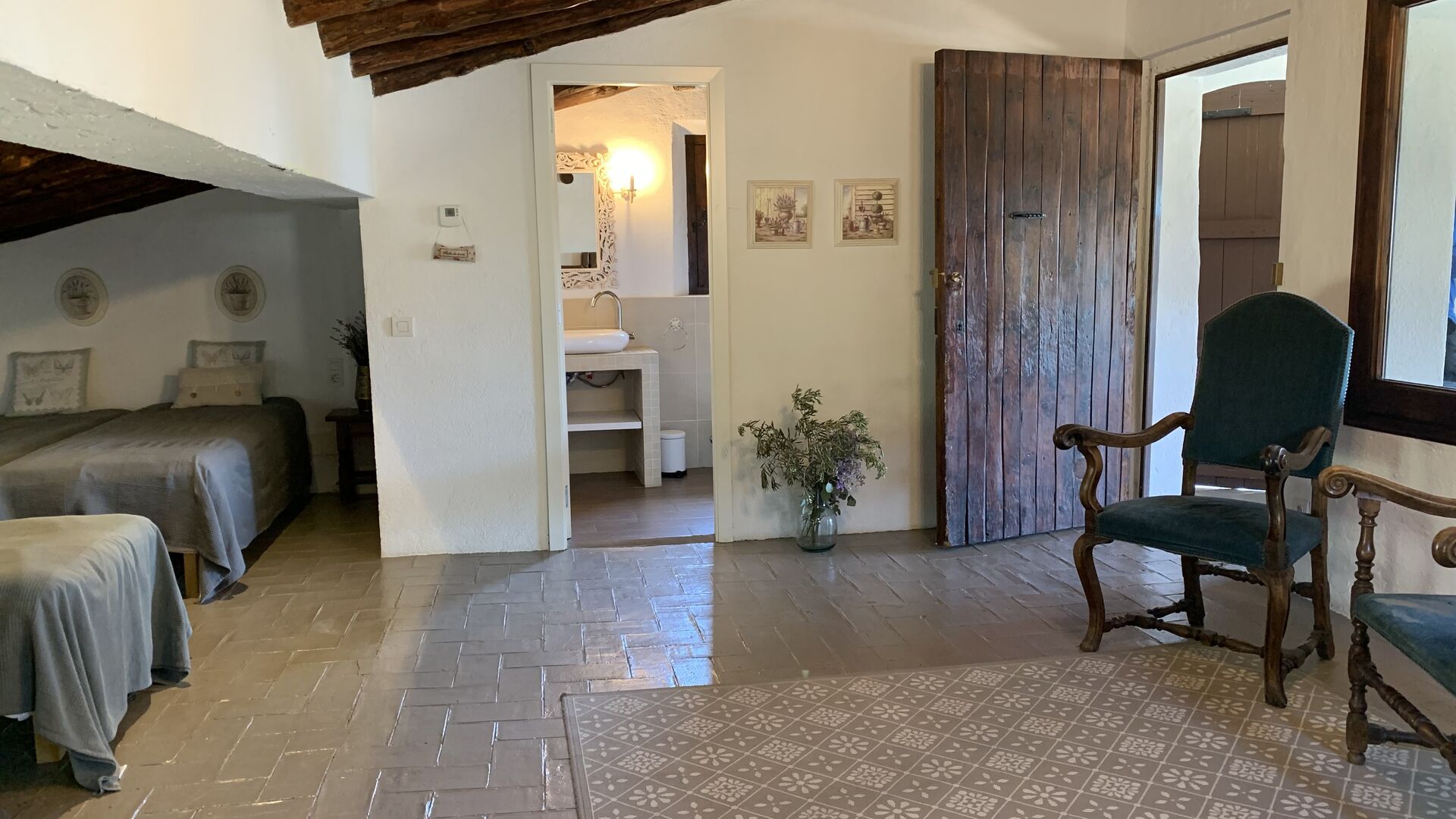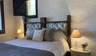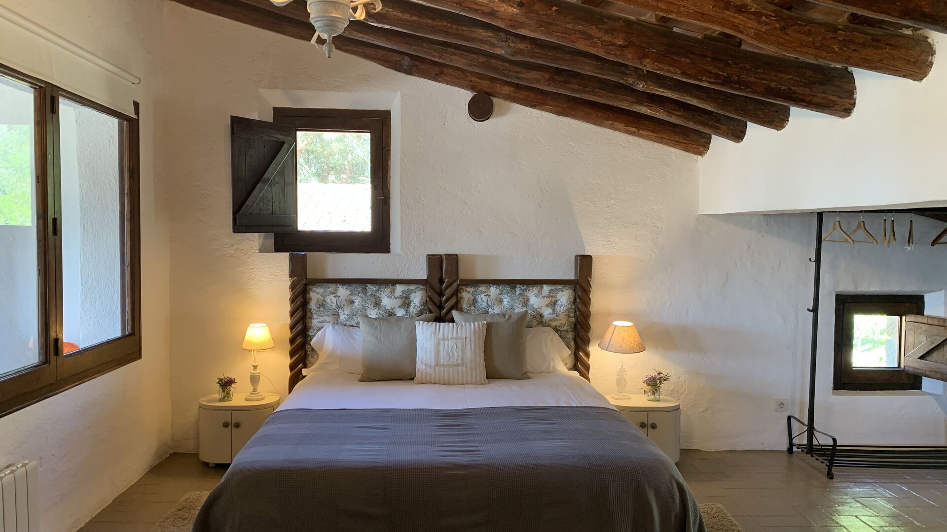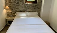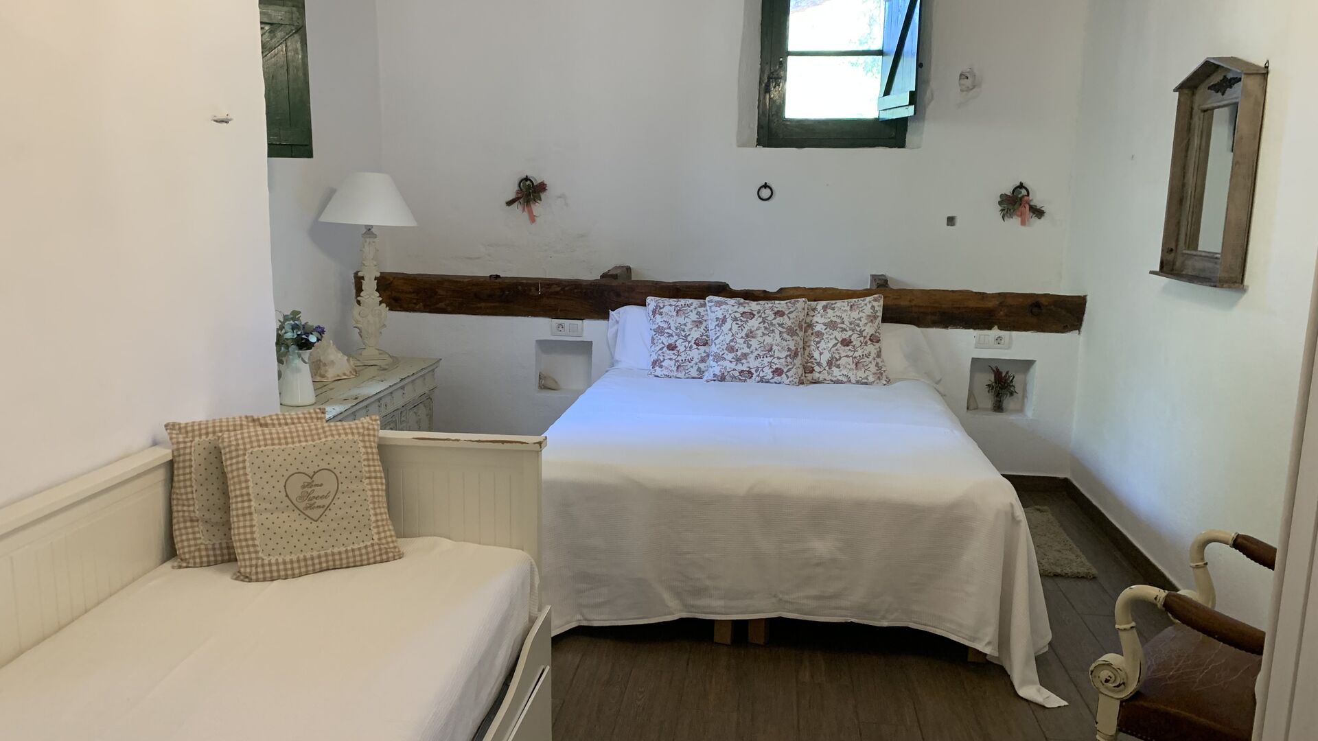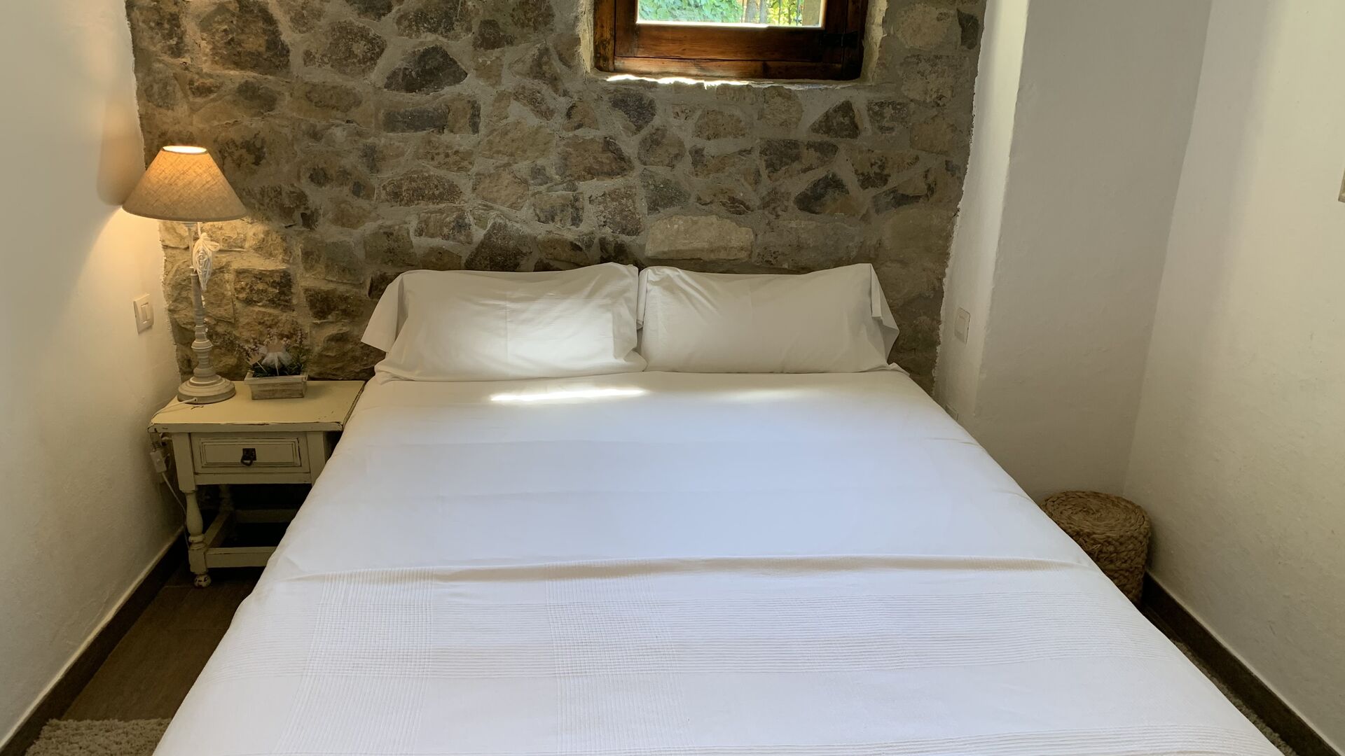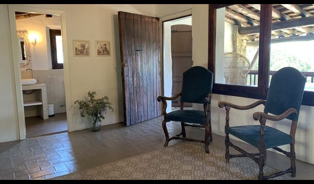Al costat de la zona de barbacoa hi ha l'entrada a la planta baixa de la casa. L'interior de la casa ha estat molt ben reformat, però per descomptat amb respecte per l'arquitectura original de la casa i els seus nombrosos detalls preciosos, com els bonics arcs i les bigues de fusta del sostre, s'han conservat. Aquí trobareu quatre habitacions grans. Dues de les habitacions són triples amb un llit de matrimoni i un llit individual, i les altres dues habitacions són habitacions dobles, una amb dos llits individuals i l'altra amb un llit de matrimoni. Les habitacions comparteixen un gran bany a la planta baixa.