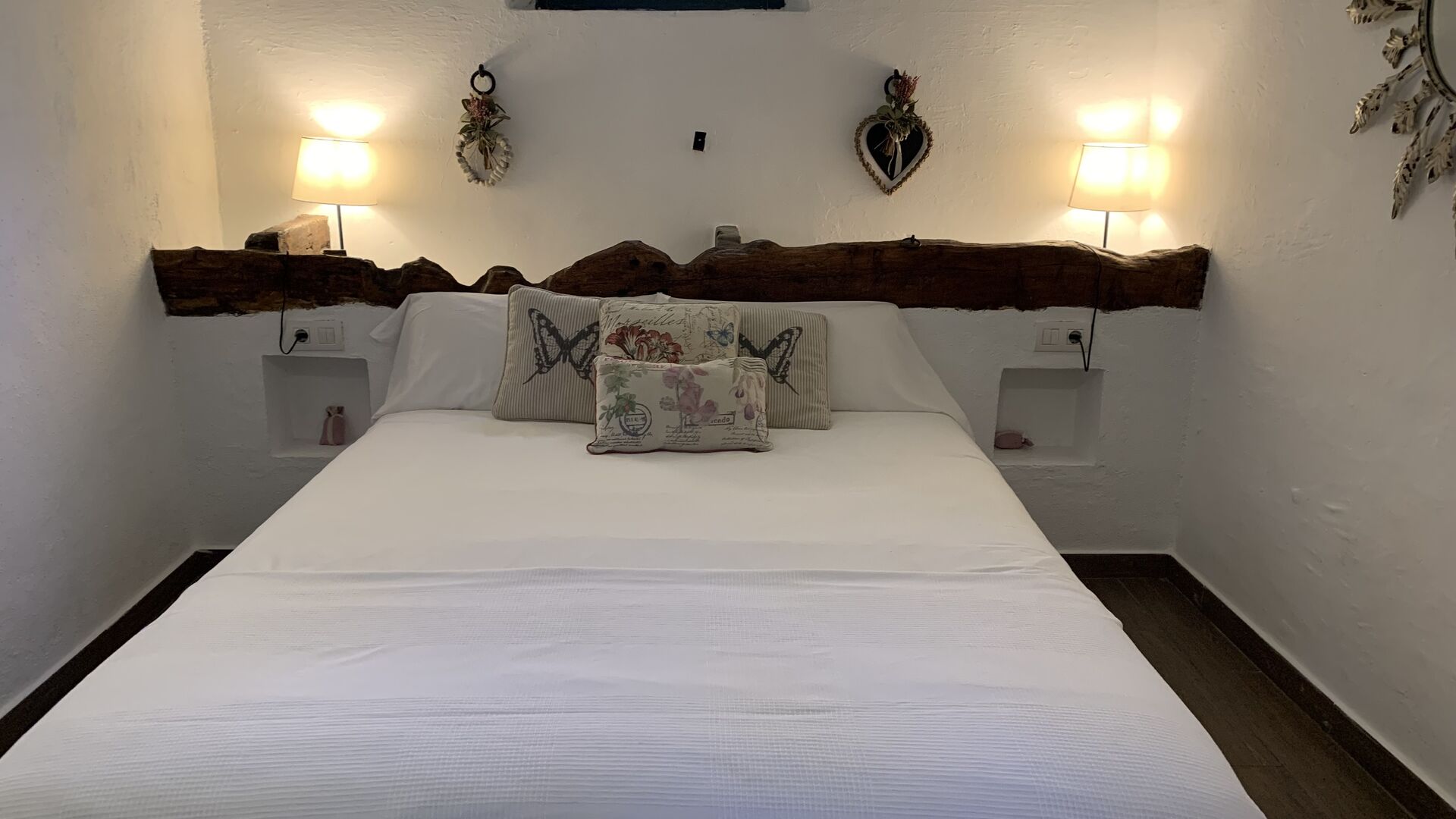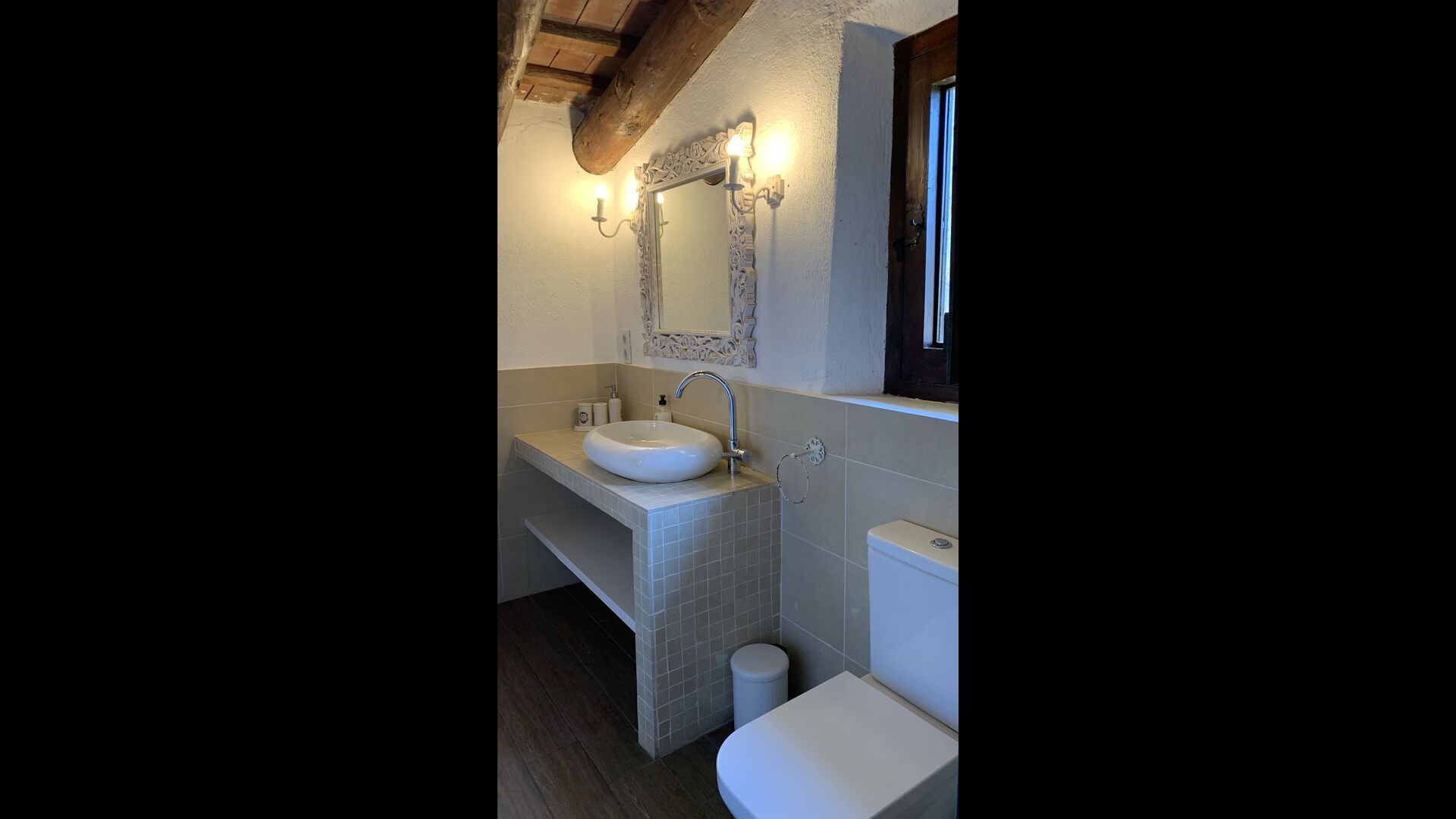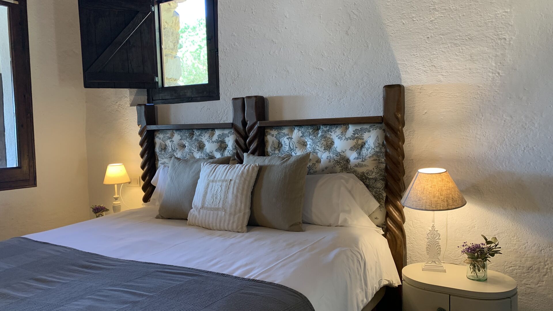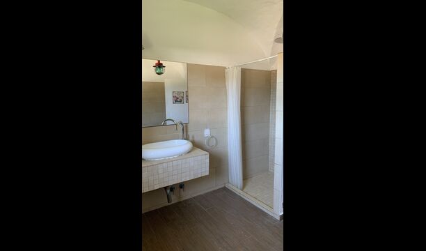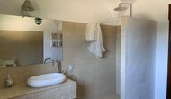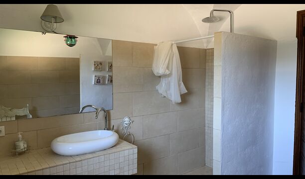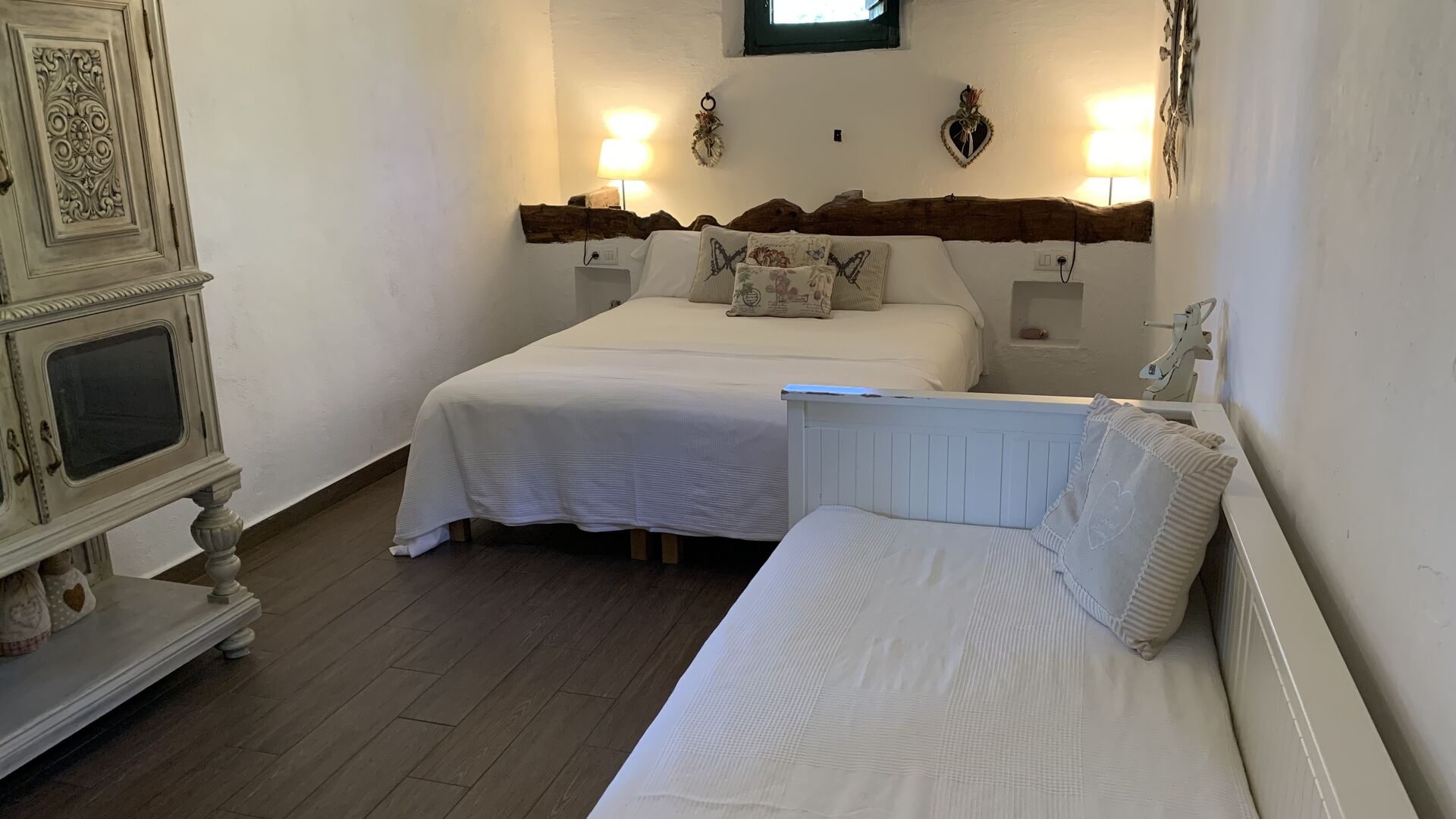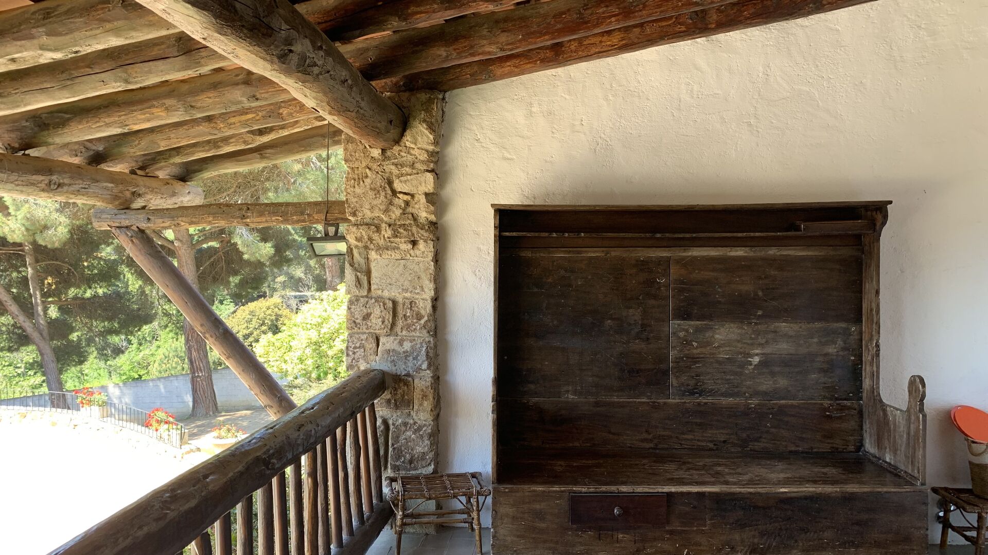 Al costat de la zona de barbacoa hi ha l'entrada a la planta baixa de la casa. L'interior de la casa ha estat molt ben reformat, però per descomptat amb respecte per l'arquitectura original de la casa i els seus nombrosos detalls preciosos, com els bonics arcs i les bigues de fusta del sostre, s'han conservat. Aquí trobareu quatre habitacions grans. Dues de les habitacions són triples amb un llit de matrimoni i un llit individual, i les altres dues habitacions són habitacions dobles, una amb dos llits individuals i l'altra amb un llit de matrimoni. Les habitacions comparteixen un gran bany a la planta baixa.