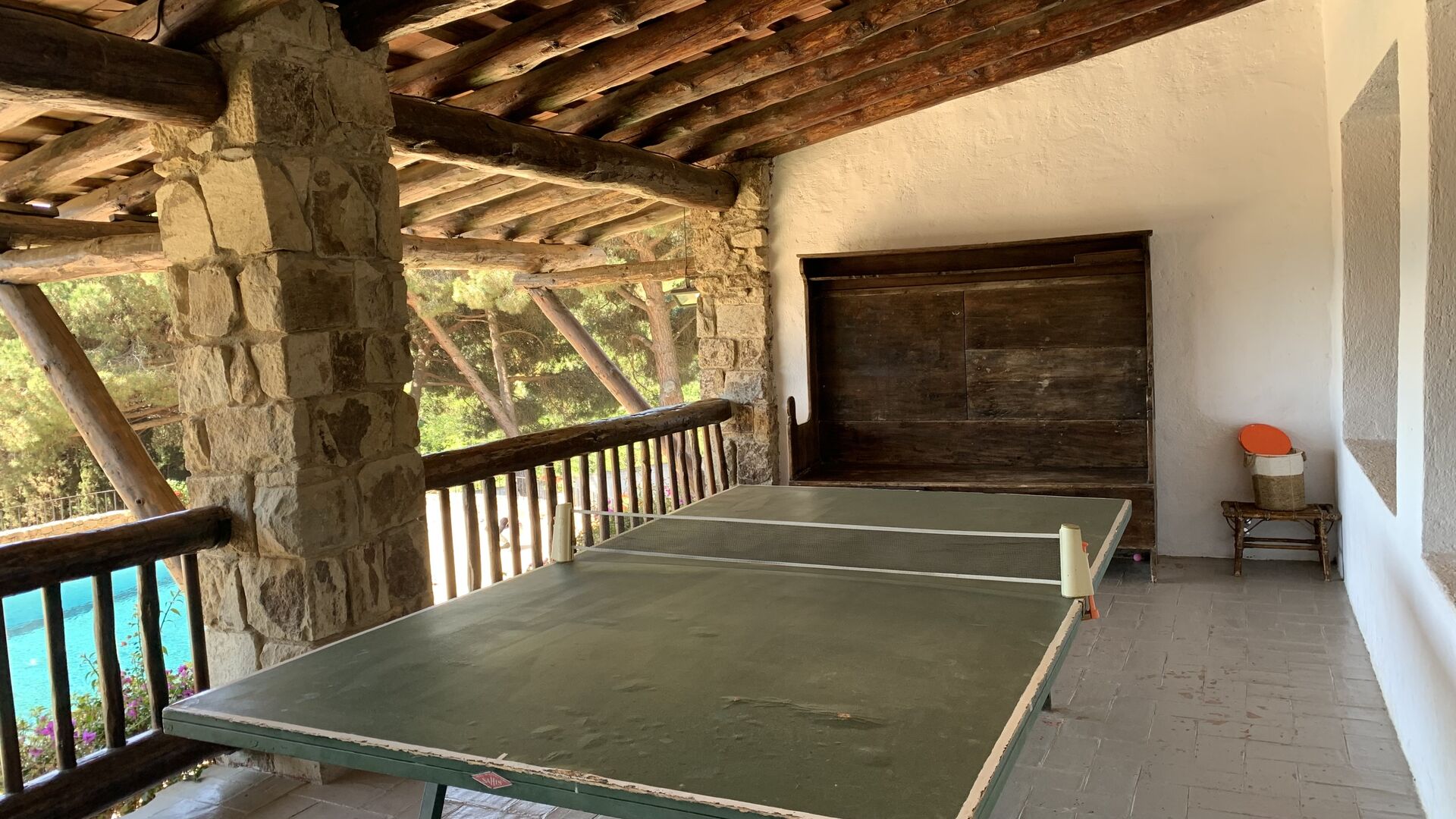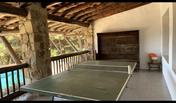Al costat de l'entrada de la planta baixa hi ha una escala que condueix a l'habitació del primer pis. Aquesta és l'habitació infantil perfecta, amb espai per a sis persones (un llit de matrimoni i quatre llits individuals). L'habitació també té un bany privat. Però la millor part de la primera planta, és l'accés directe a la terrassa coberta que està equipada amb una gran taula de ping-pong i vistes a l'impressionant jardí i la piscina.