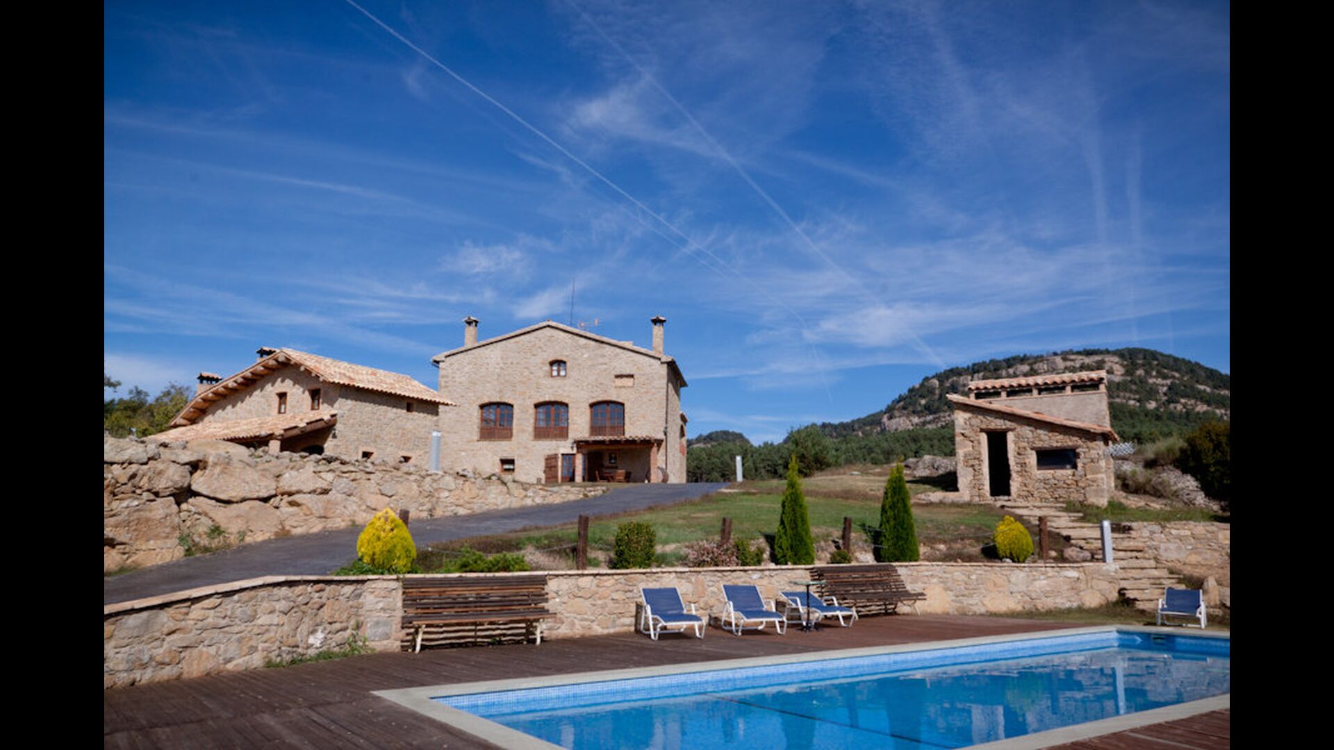Casas Montañas lies, as the name suggests, in the mountains. This beauty of a property is located in the lower slopes of the Pyrenees. To get to the house you have to follow some small winding roads, which means that it lies in completely private, quiet and beautiful surroundings. If you like fresh air and wonderful scenery, there are no other houses that fit better than this. Casas Montañas is divided into five apartments, which are rented separately. Here there are respectively an apartment for 8 persons, one apartment for 4 persons and two apartments for two people.
