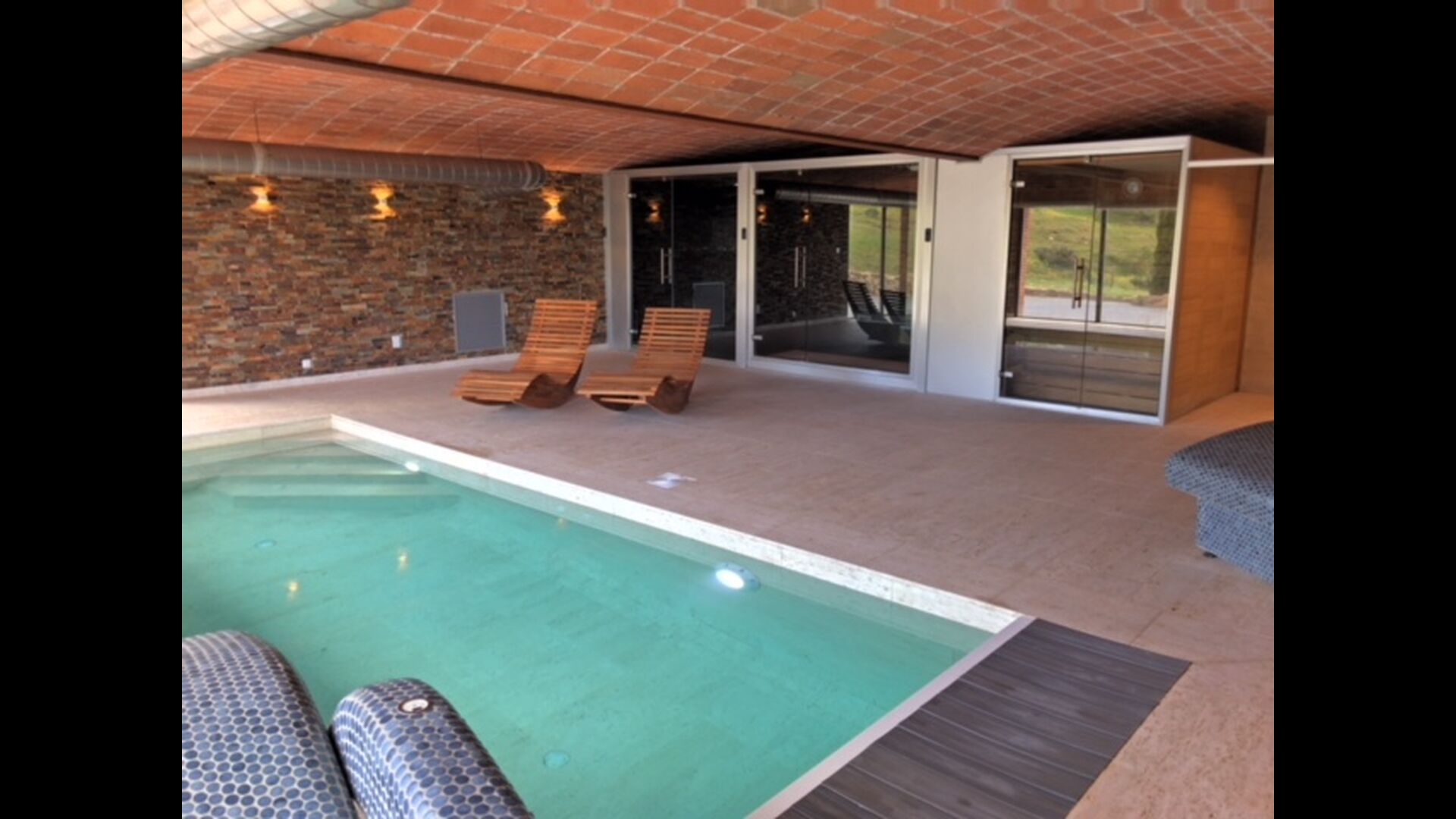 There are two shared facilities that particularly stand out. Firstly there is the wonderful pool of an entire 40 m2, which has a fantastic view over the mountains and woods. Secondly, there is a very special spa / wellness area, which includes the following: