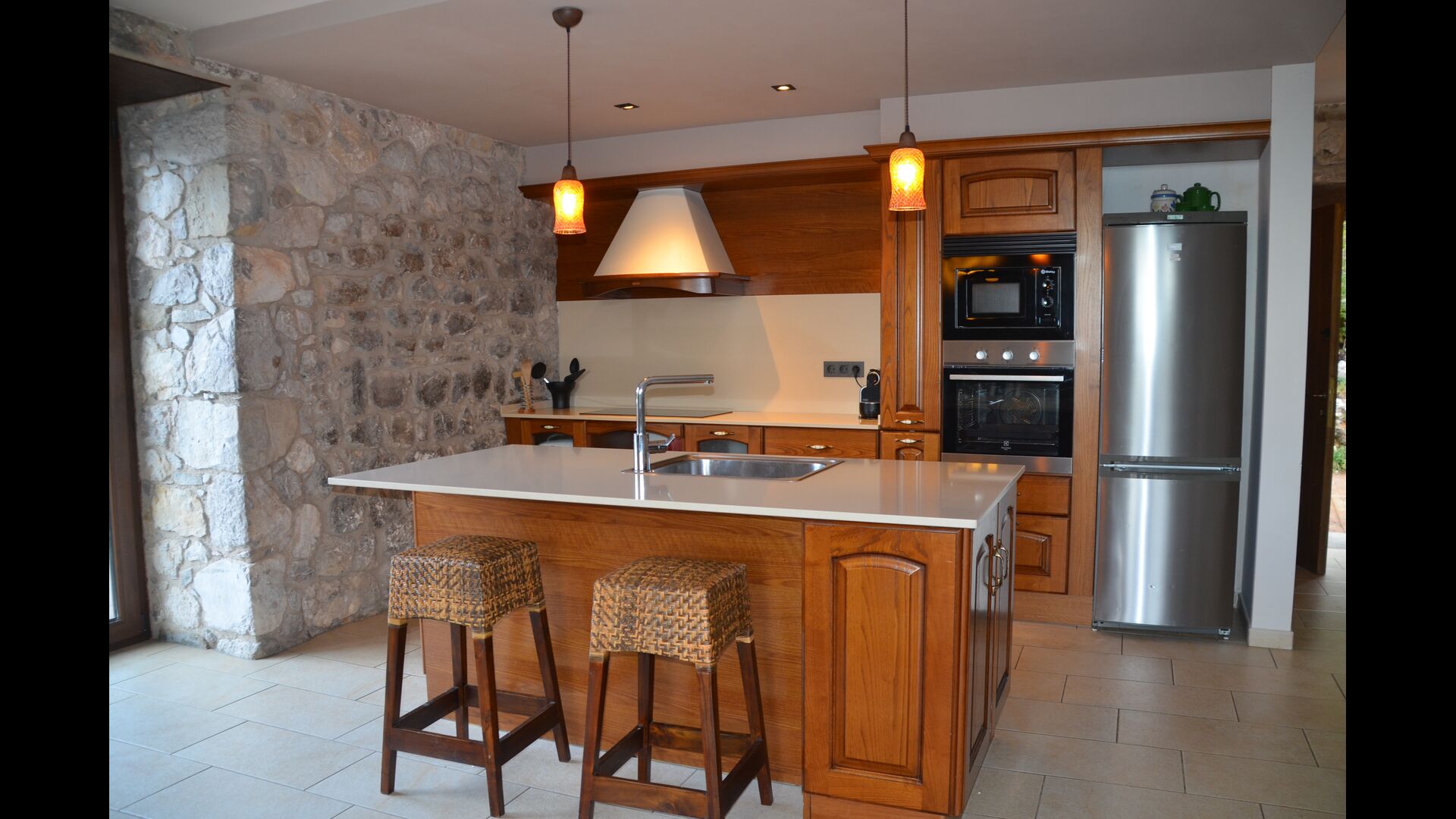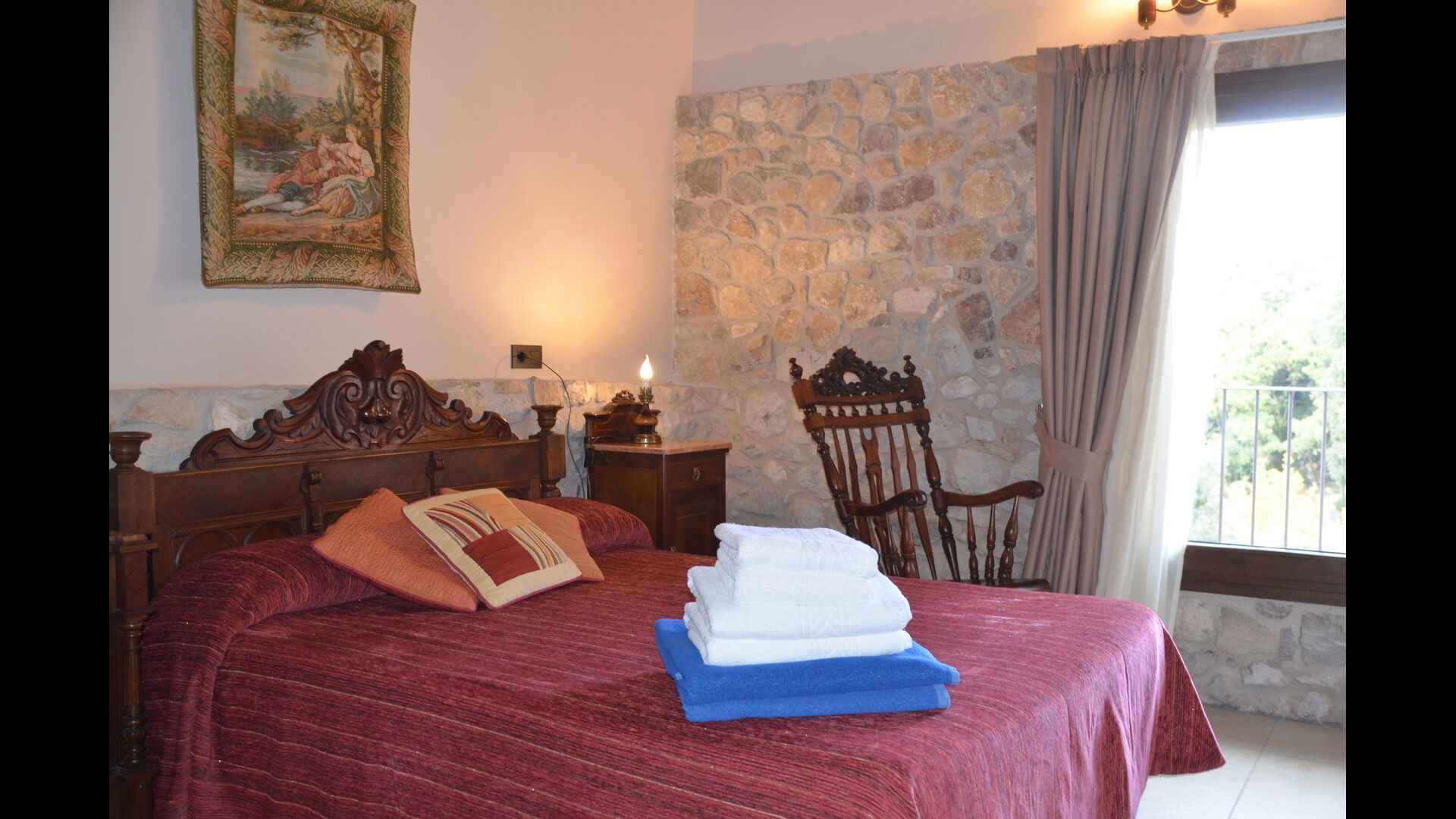 Ferieboligen er af meget høj standard og kvalitet med fx traditionelle catalanske stenvægge, der giver et meget smukt og autentisk look. Huset er som nævnt fem "enheder", der er blevet slået sammen, hvilket betyder, at man til hver en tid kan trække sig lidt tilbage til sin egne, private bolig og slappe af. Der er i alt 13 soveværelser, heraf 11 dobbeltværelser og 2 enkeltværelser. Med til værelserne hører selvfølgelig 11 moderne badeværelser.