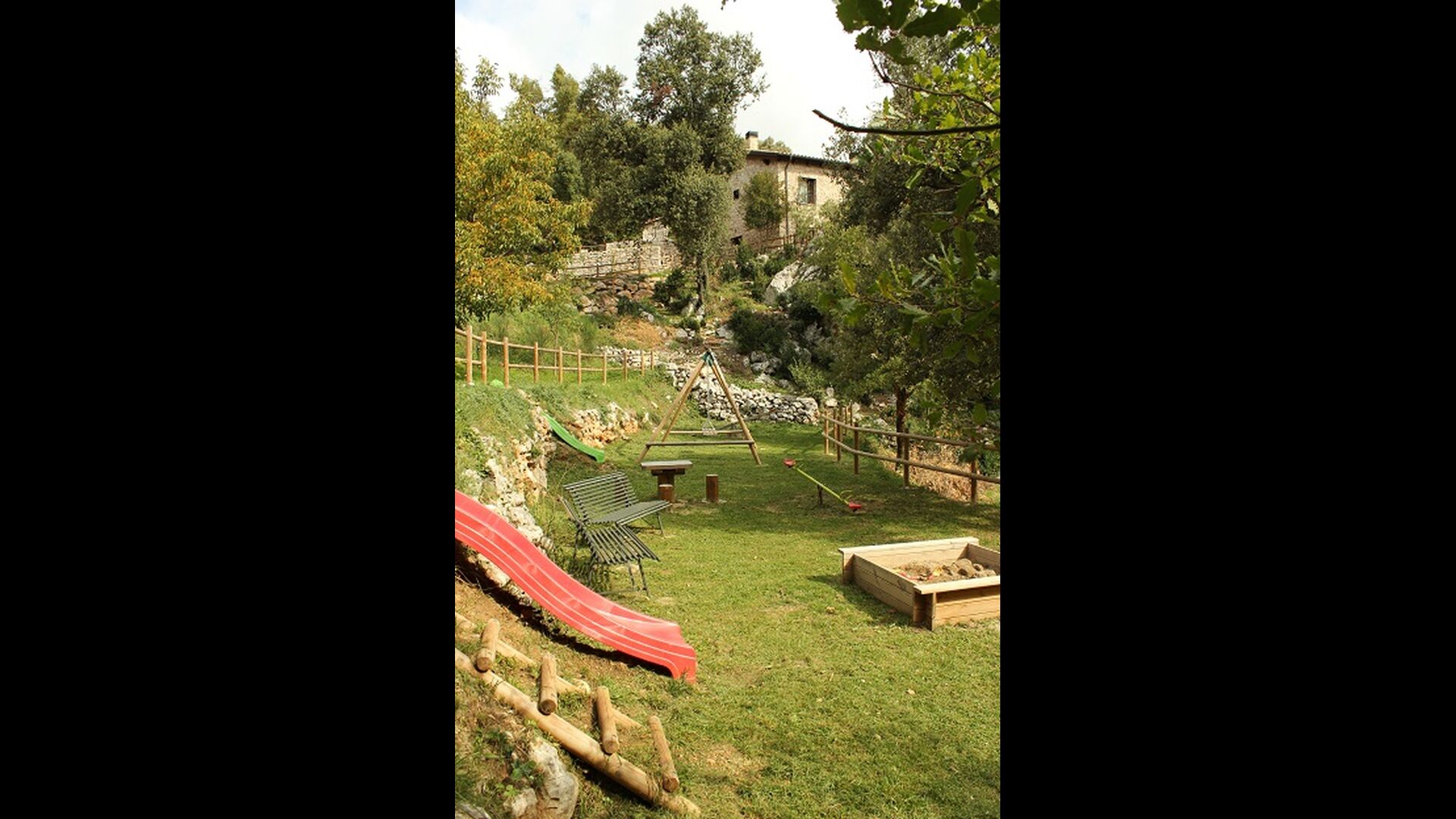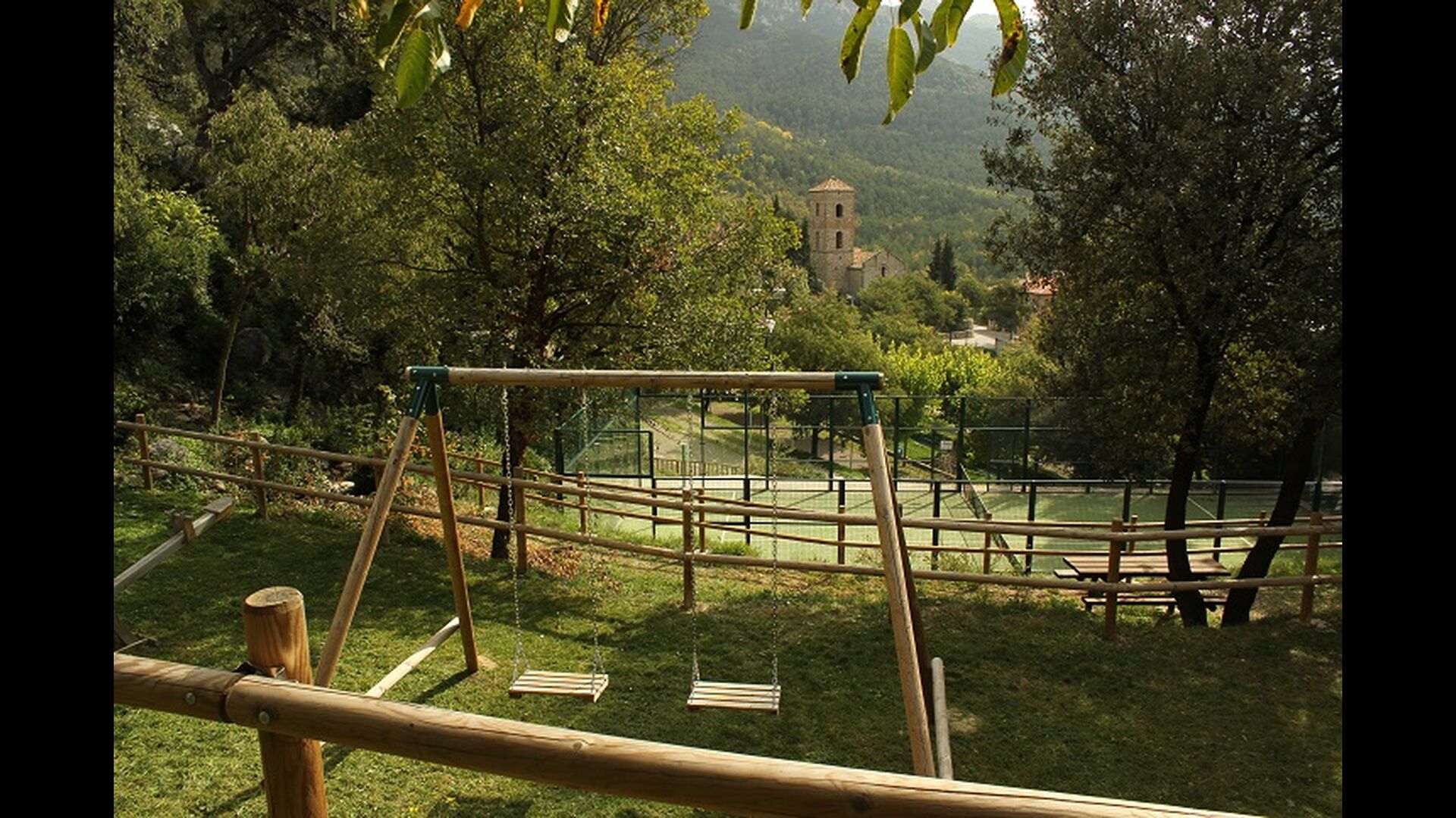 Vila Mas Vistador has a fantastic view which looks over the authentic small town, located at the foot of the estate. The cozy town has two restaurants, a local church, a large playground and a football pitch and can be reached by foot within 2-3 minutes by using the stairway that leads through the garden. The garden is divided into four different levels, one level with the tennis court, one with the playground, one with a chill-out area and finally the fabulous pool area. The holiday homes are located at the very top.