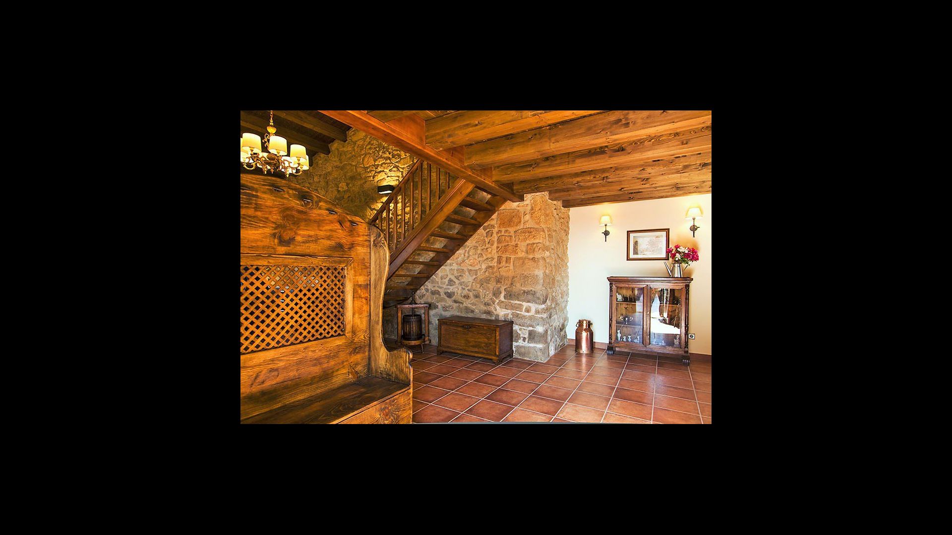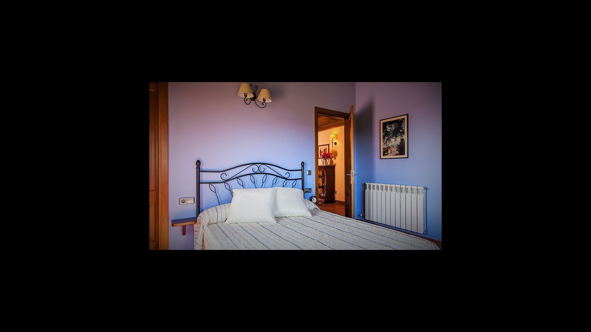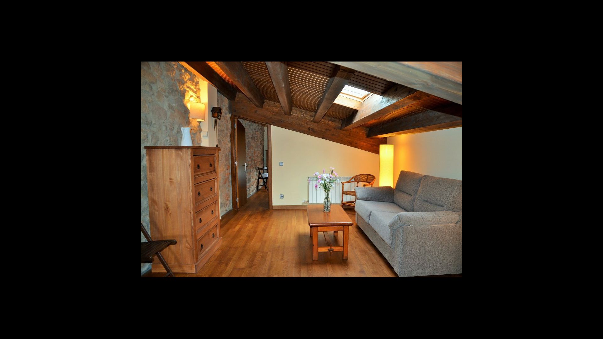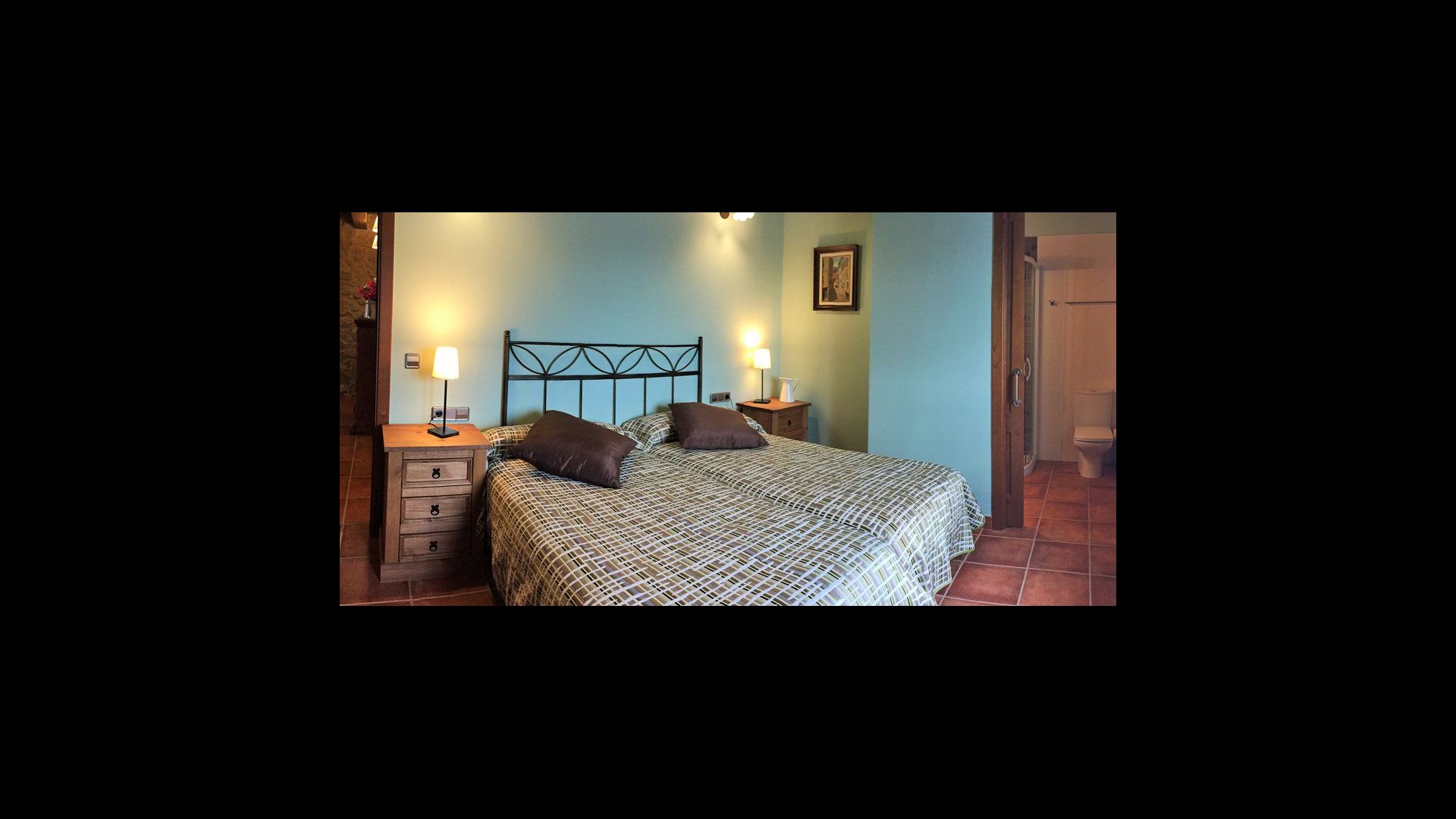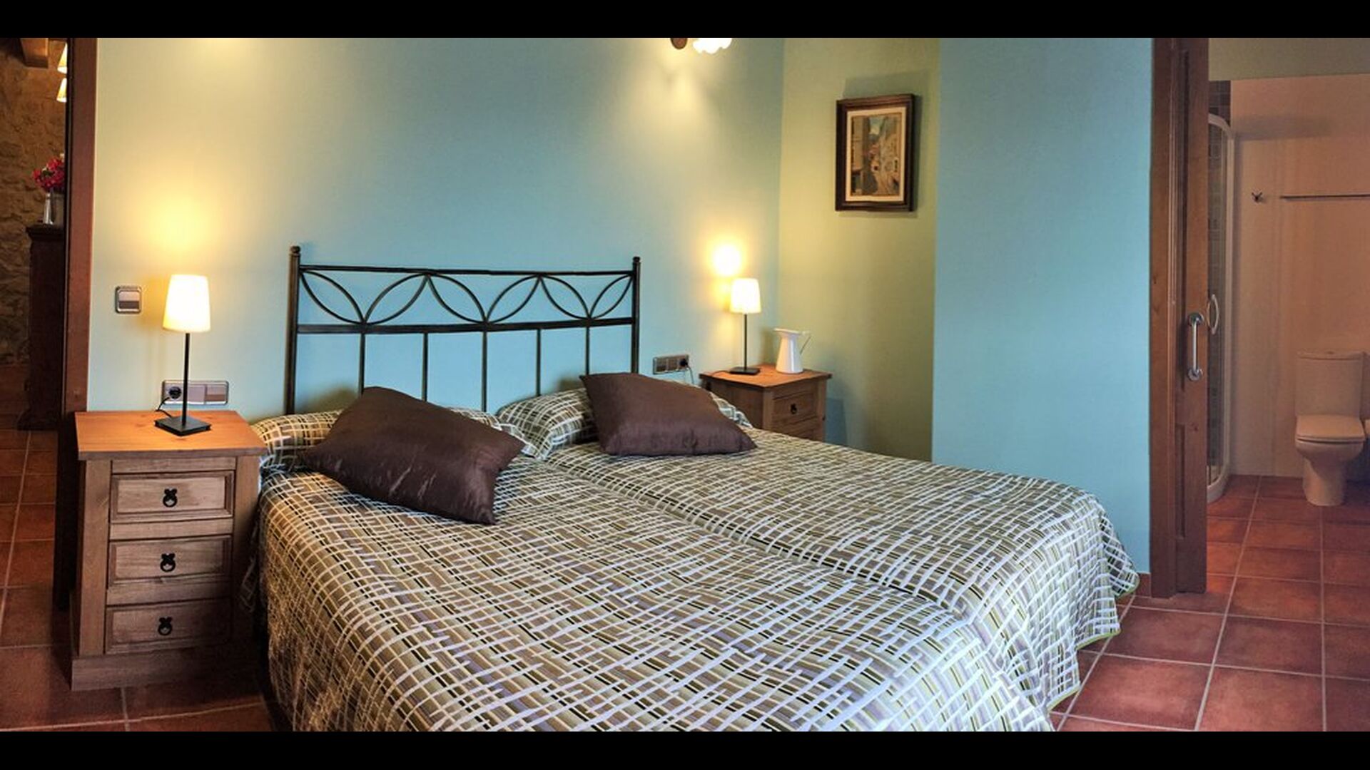 To the right of the hallway are four of the five beautiful bedrooms in Can de Mateo. The four bedrooms are all doubles, three of which have bath ensuite. One of the rooms has direct access to the terrace. This floor also contains a further bathroom which is shared with the last bedroom on the top floor of the house.
