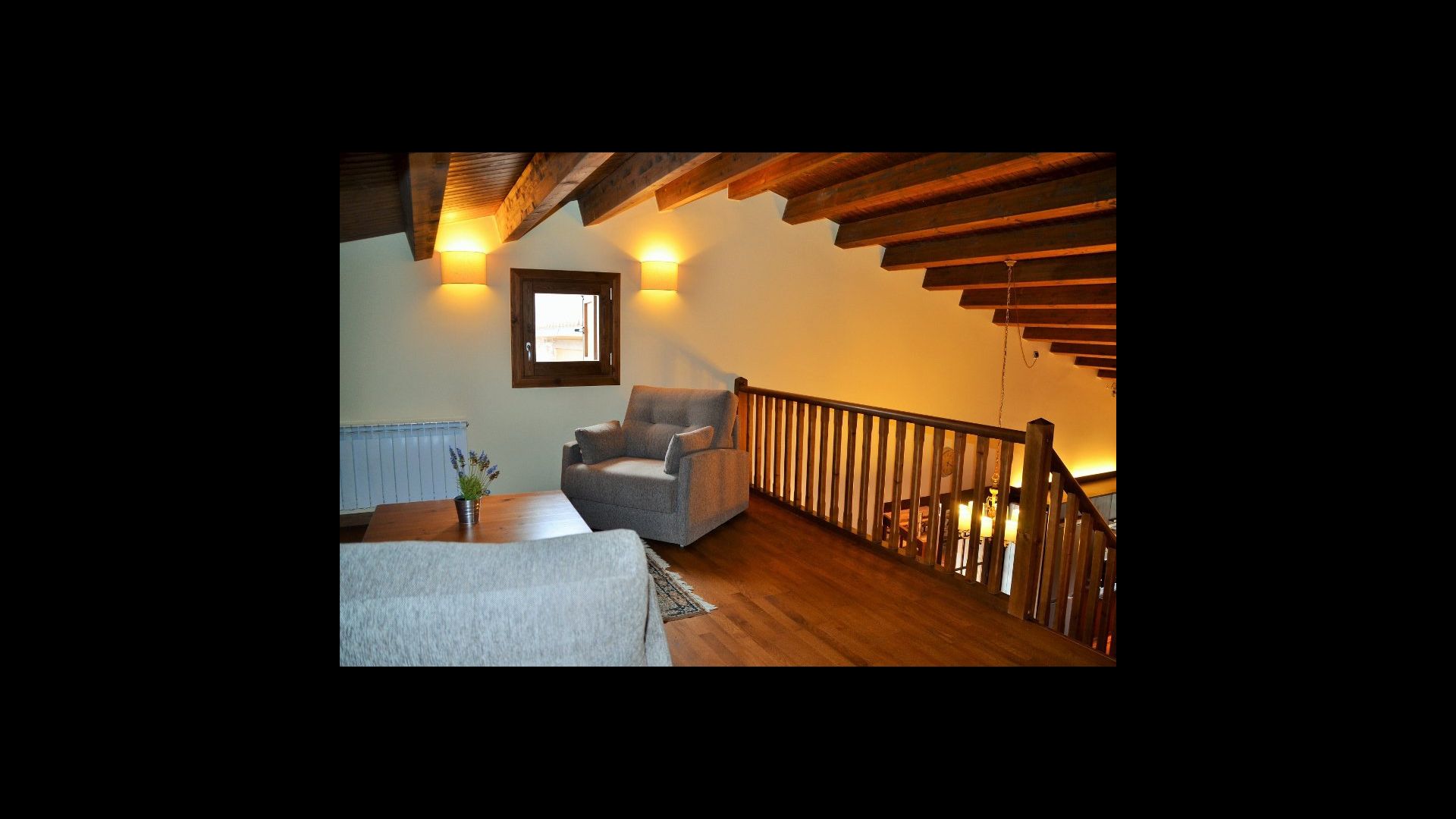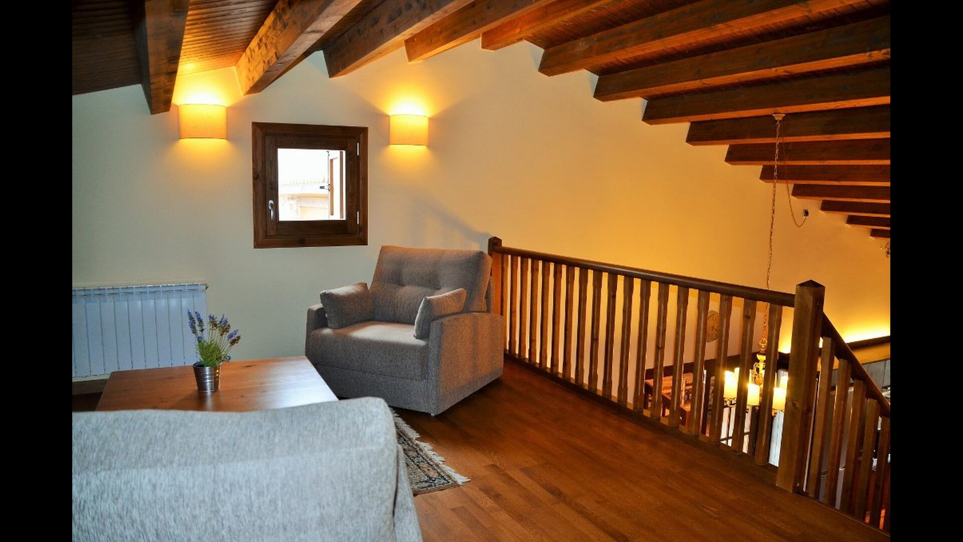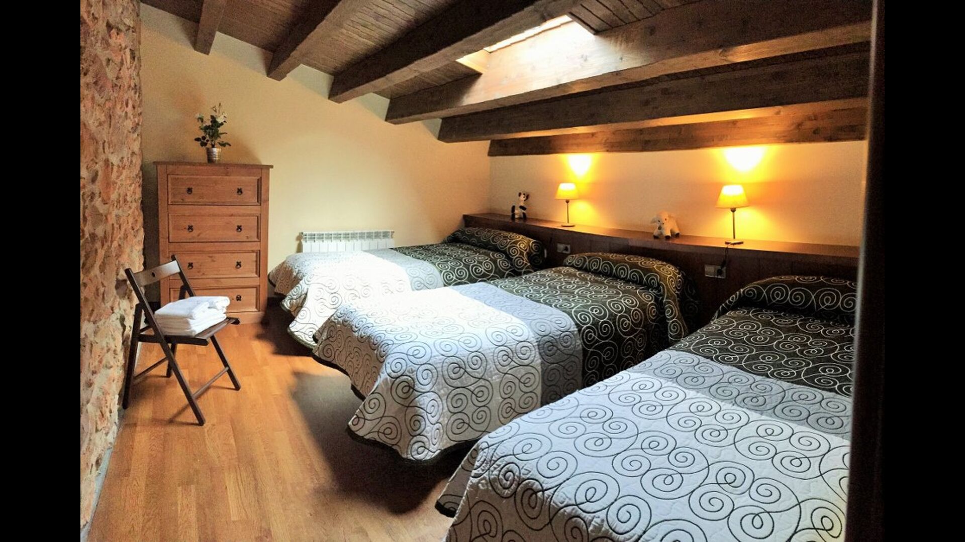 On the top floor is a cosy lounge area, which is situated next to the triple room, which has three single beds. The room is ideal as a children's room and the small lounge will be excellent for use as a cosy corner for children in the evening.