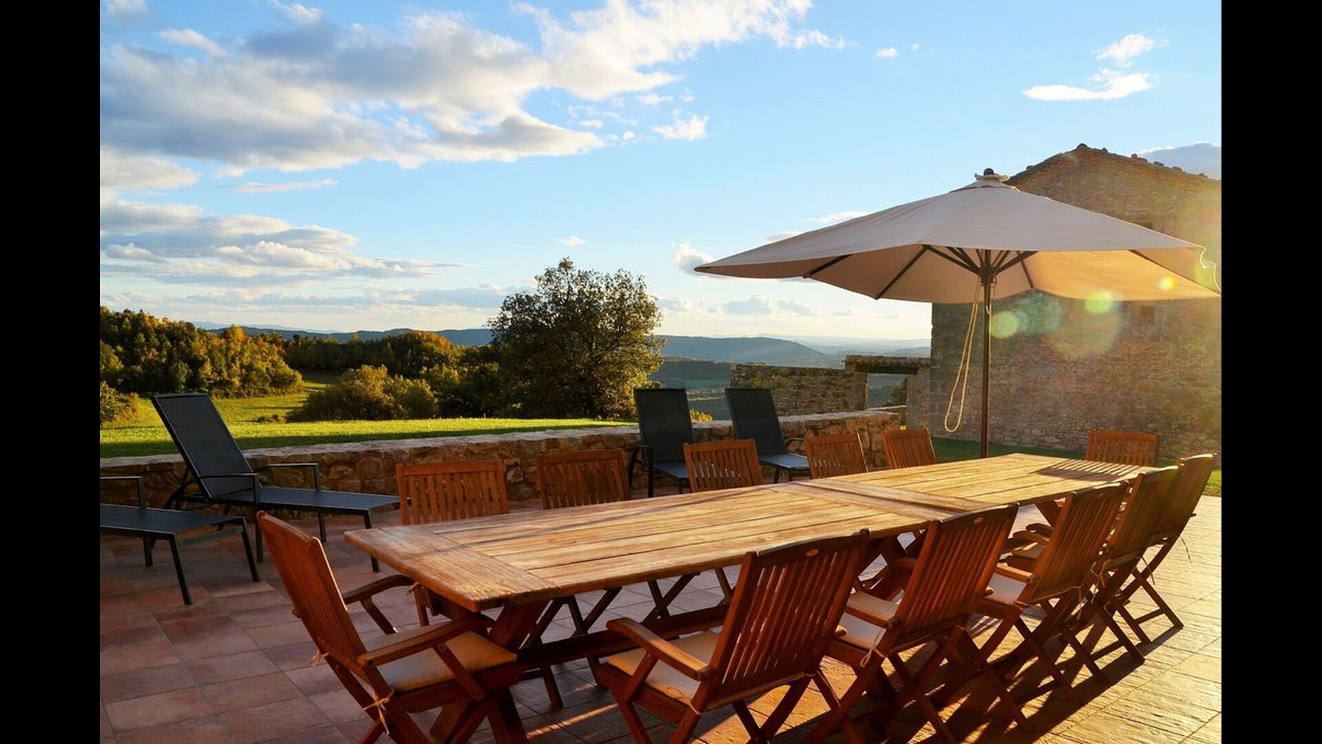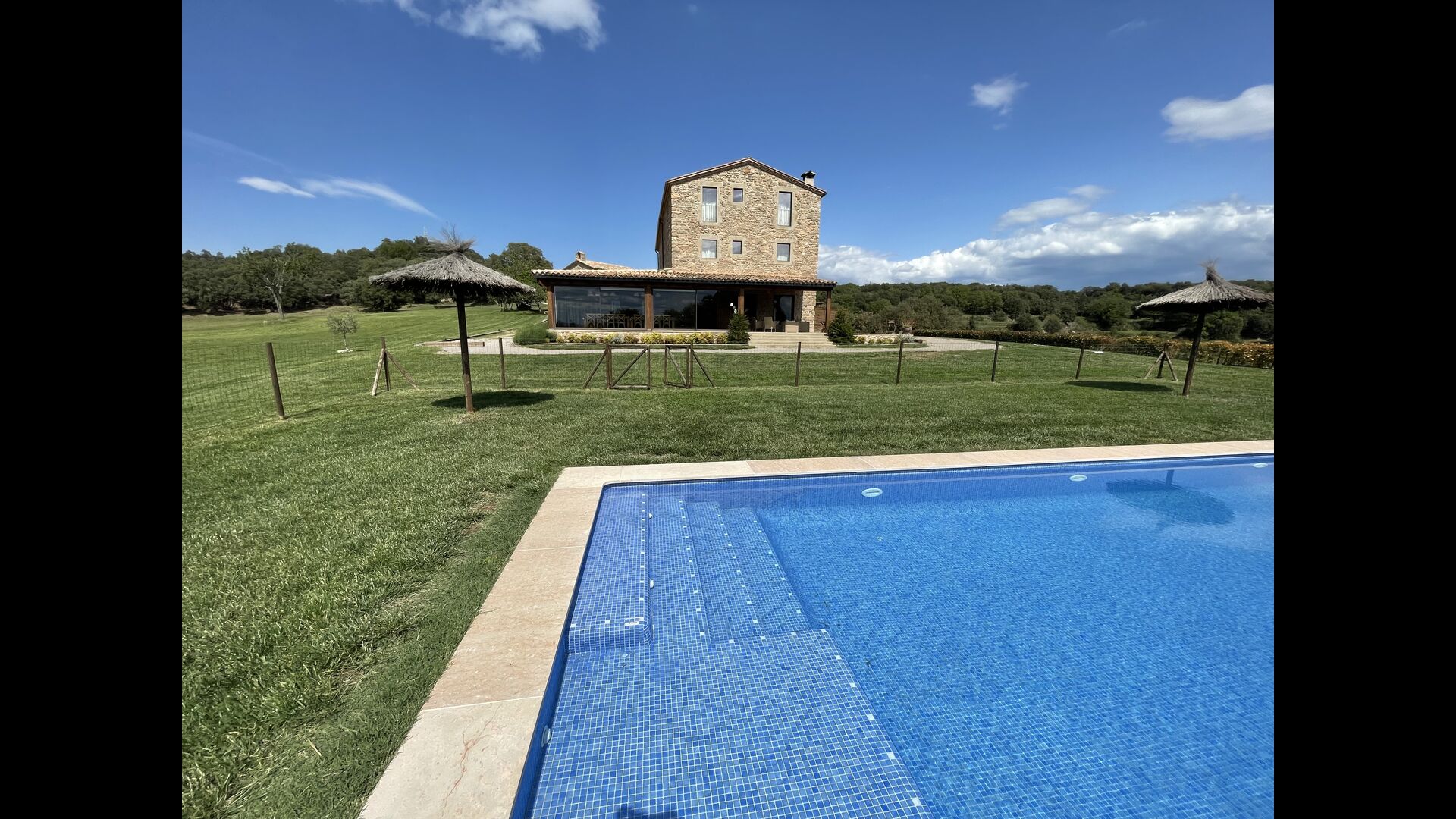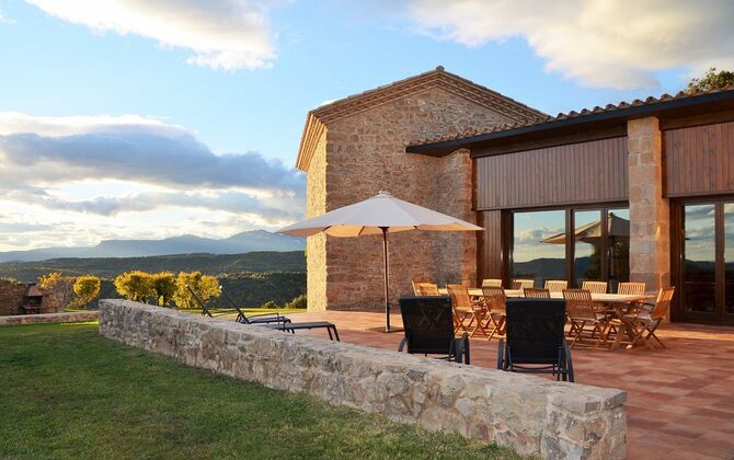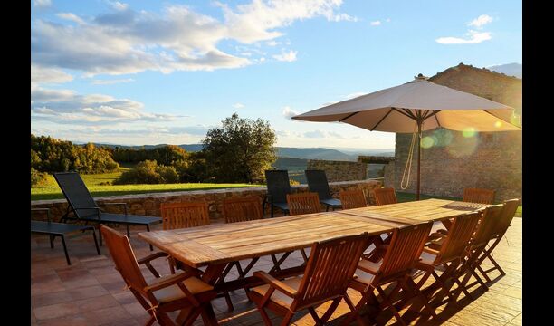 In Central Catalonia, on a hilltop, the newly restored holiday home Can de Mateo has just been opened for guests. The house has room for 11 + 2 guests and the grand attraction is the unique location. In Can de Mateo you have the opportunity to enjoy a 360 degree view of the Catalonian countryside,framed by the Pre-Pyrenees rising in the background. We represent many holiday homes in this region, all with stunning views, but Can de Mateo beats everything so far.