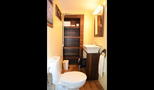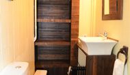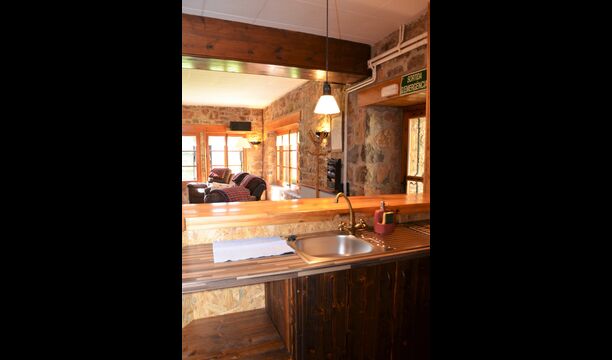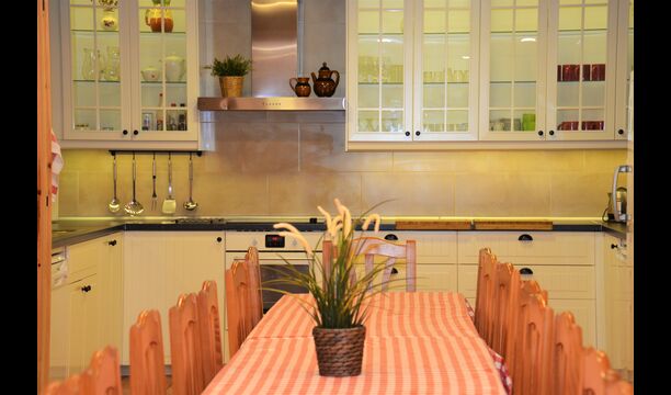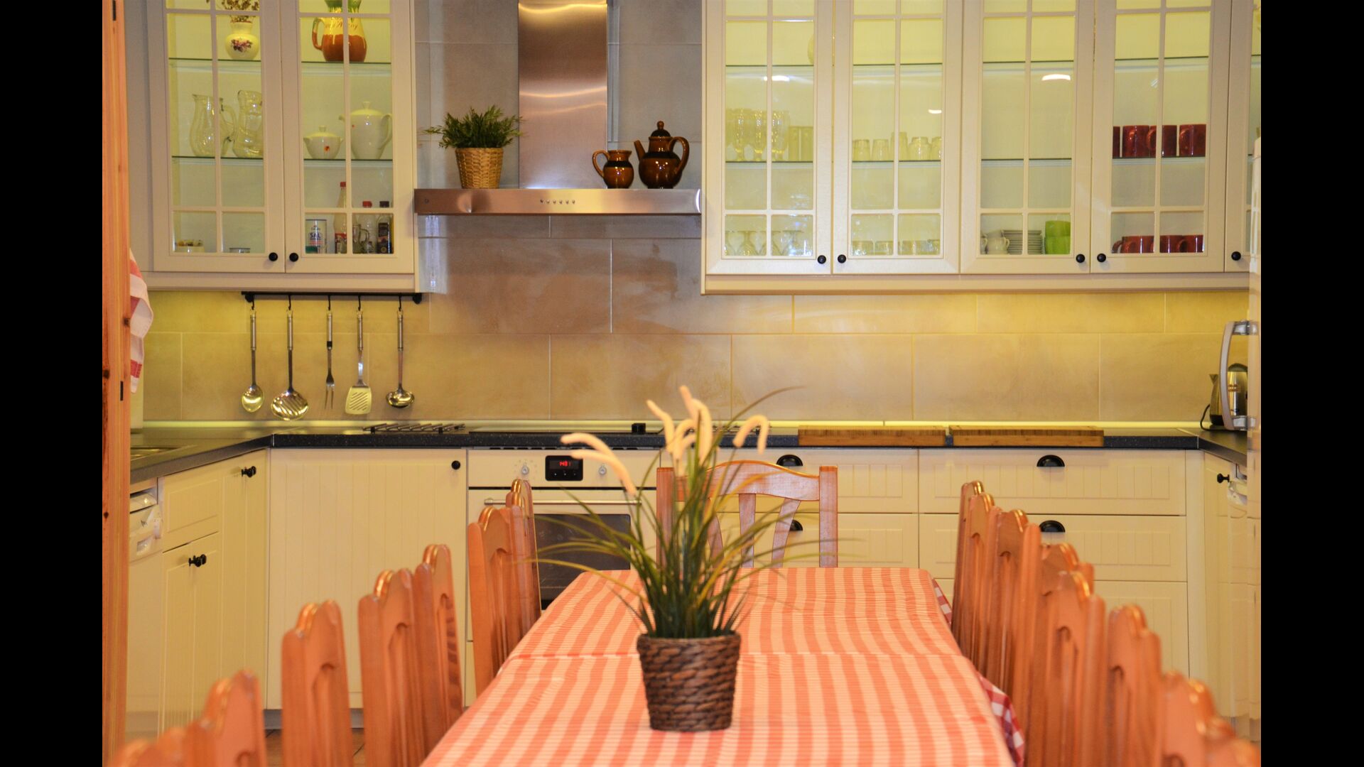 Inside the house on the ground floor, you will find the cozy and comfortable common rooms. The large open kitchen is very well equipped with everything you need including a large fridge, freezer, stove, double-toaster, kettle, washing machine and a dishwasher. There is also a large dining table in the open kitchen, where indoor meals can be enjoyed. At the end of the large dining + kitchen room you can entertain yourselves with a game of table tennis or fooseball. In the next room is the large loungeroom. The loungeroom is set up with comfortable couches and chairs. It is also equipped with a large flat screen television. There is also a bar with two large fridges. So there is plenty of space for food and beverages that needs to be kept cool. There is also a bathroom on the ground floor, so you don’t have to go upstairs.