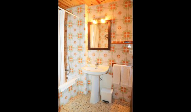 Upstairs you will find all 9 bedrooms. Two of the bedrooms are triple rooms and the rest are double rooms. All bedrooms except for two of them have ensuite bathrooms. The bedrooms are very simple and cosy with decorative walls and bed linens. The triple rooms consist of a single bed and a bunk bed, and are the perfect bedrooms for children. The double rooms have two single beds, but can be turned into normal double beds. There is a small town located just 300 meters away from the house. Here you can eat at the local restaurant or visit the authentic, local church. There is also the possibility of taking a day trip to the regions large city Berga, which has plenty of shops and markets. Berga is located roughly a short 20 minute drive from the holiday home.