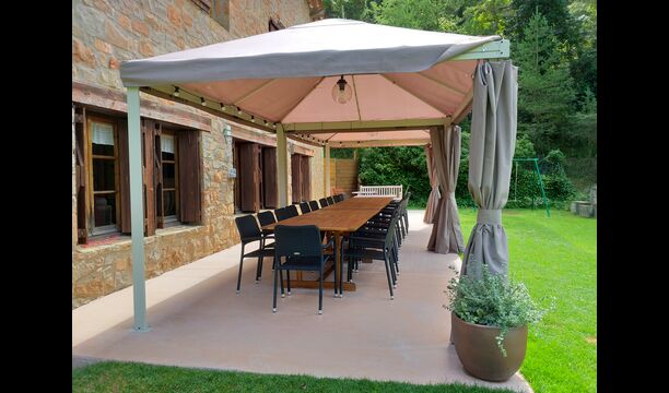 Can de Xique’s many outdoor facilities are incredibly luxurious and perfect for the warm sunny days in Catalonia. The large pool is located down in front of the house, and is fenced for the safety of children. There is a deep end and a low end for the younger children to play in. And with its stunning view looking over the Catalan mountains, we imagine that most of your time will be spent down here. Up in front of the house you will find a large green garden, also with a fabulous view. Several small tables with chairs are placed in the garden. There is also a large table (not shown on the photos), where outdoor meals can be enjoyed throughout the day. The setting is absolutely fantastic with the view, the beautiful nature and the authentic holiday home. The friendly owners of the house live behind the holiday home. They will ensure you that you have 100% privacy also on the outdoor grounds. However, if you should be in need of anything they will be more then happy to help.