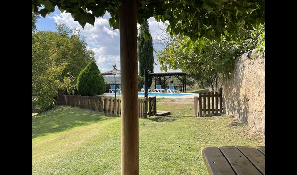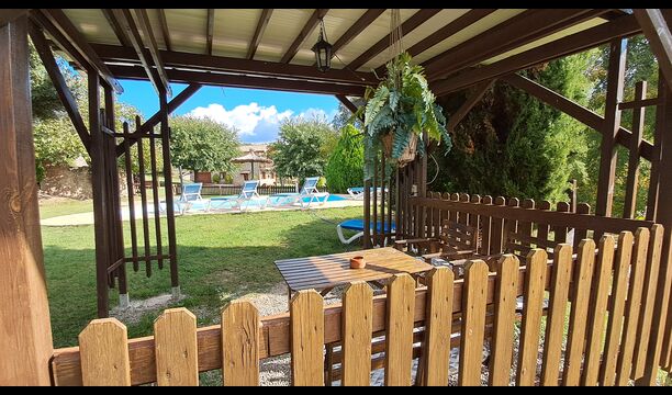 No hay vecinos ruidosos, sólo el campo tranquilo. El paisaje montañoso, los campos cultivados y los arroyos pequeños crean un ambiente especial y, a pesar del clima cálido y seco, el jardín de la casa es verde y limpio. Hay una vista muy hermosa desde prácticamente cualquier lugar en la casa y el jardín.