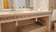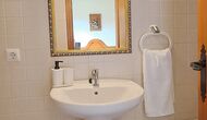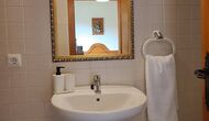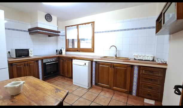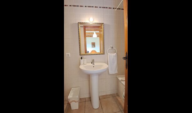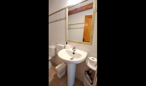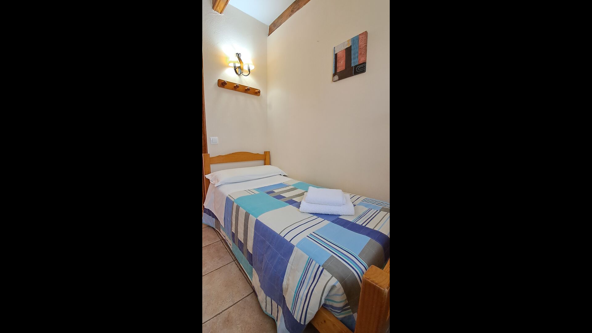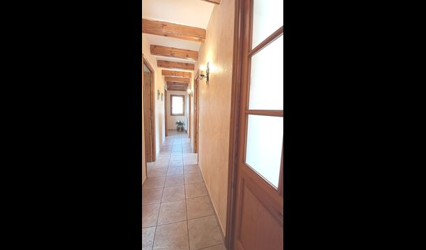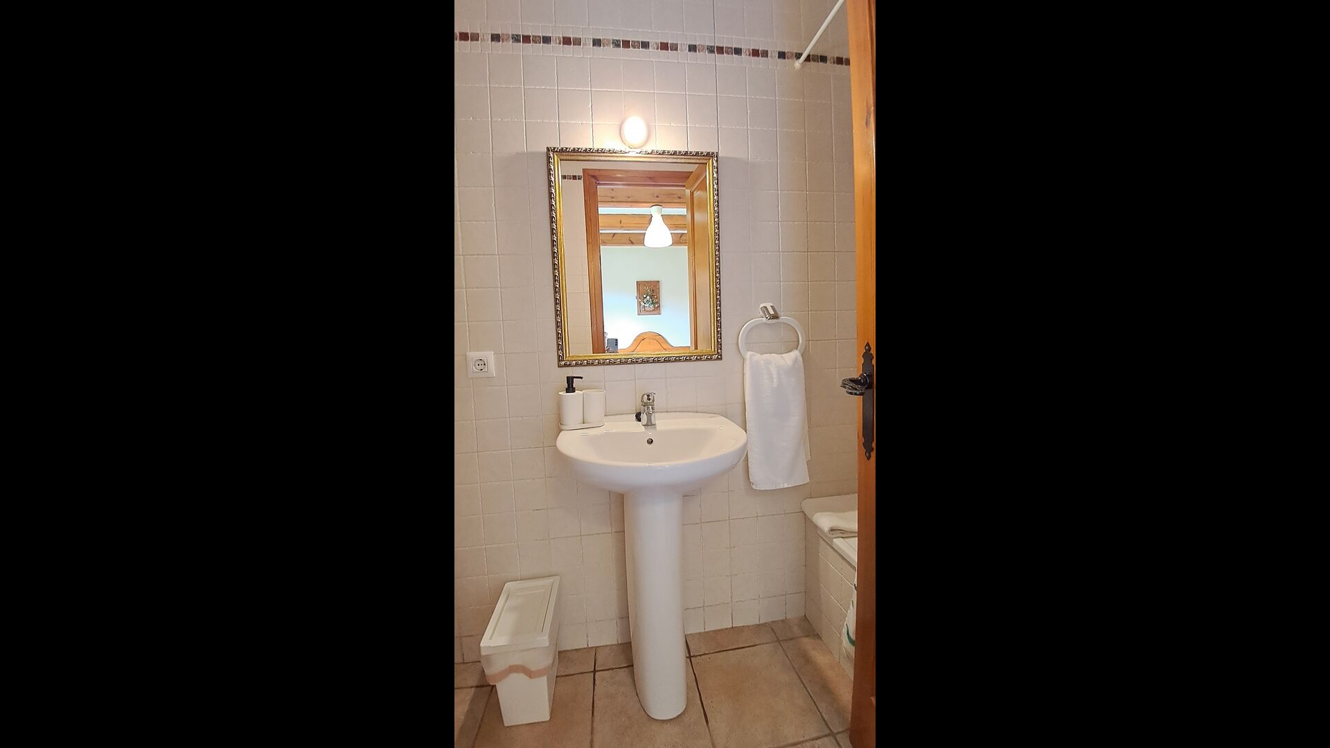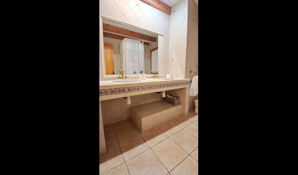 Cuando ingresa a la entrada agradable, se encuentra con una sala familiar grande y espaciosa. Aquí hay un rincón acogedor con cómodos sofás, y detrás de esto, hay una mesa de comedor grande y ancha, donde podrá disfrutar de sus comidas. Junto a la sala familiar, la cocina auténtica es donde se encuentran todos los utensilios necesarios, que incluyen un lavaplatos, una lavadora, un microondas y muchas otras cosas. La cocina es excelente, y el propietario ha puesto mucho esfuerzo en ella. Desde la sala de estar mencionada anteriormente hay una escalera al primer piso donde se encuentran los dormitorios de la casa: hay un total de 7 habitaciones, de las cuales 1 es una habitación individual y 6 habitaciones dobles. Varias de las camas se pueden separar, por lo que se pueden adaptar las habitaciones. Todas las habitaciones son de alta calidad y son muy amplias. Dos de las habitaciones tienen un enorme balcón compartido con sillas, donde se puede disfrutar de la puesta de sol por la noche. Desde uno de los dormitorios puedes ver la puesta de sol directamente desde la cama. Hay 4 baños en total, de los cuales uno es en suite. Todas son modernas y están bellamente decoradas.