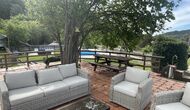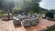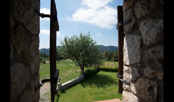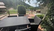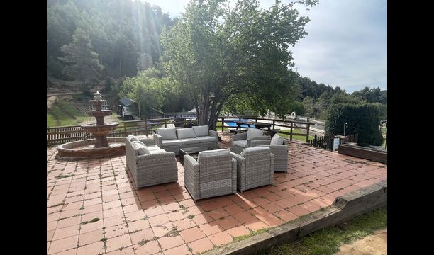 La propietat està situada en un pendent, de manera que Jordi i Constanca tenen accés a la seva terrassa i jardí darrere de la casa, mentre que les tres cases de vacances donen a la zona enjardinada amb totes les instal·lacions que es veuen a les imatges. .