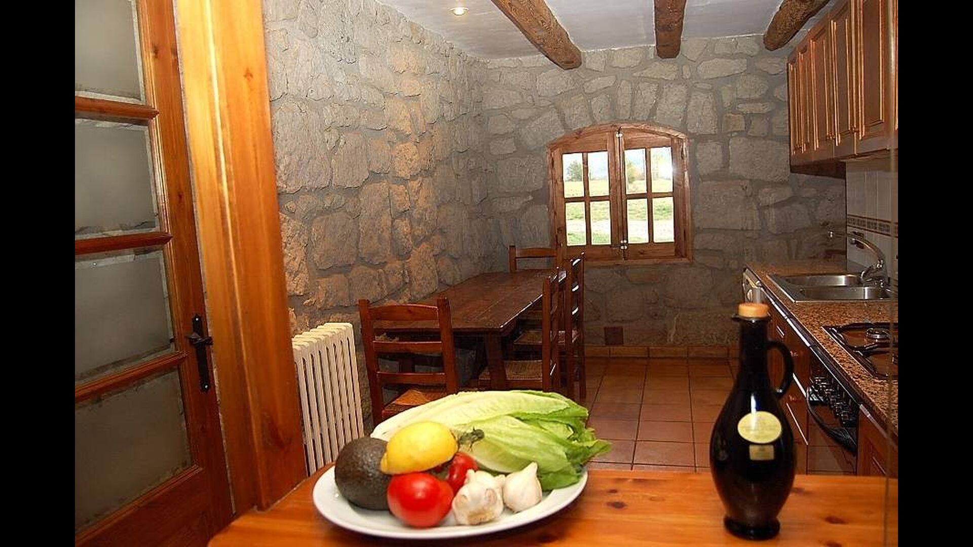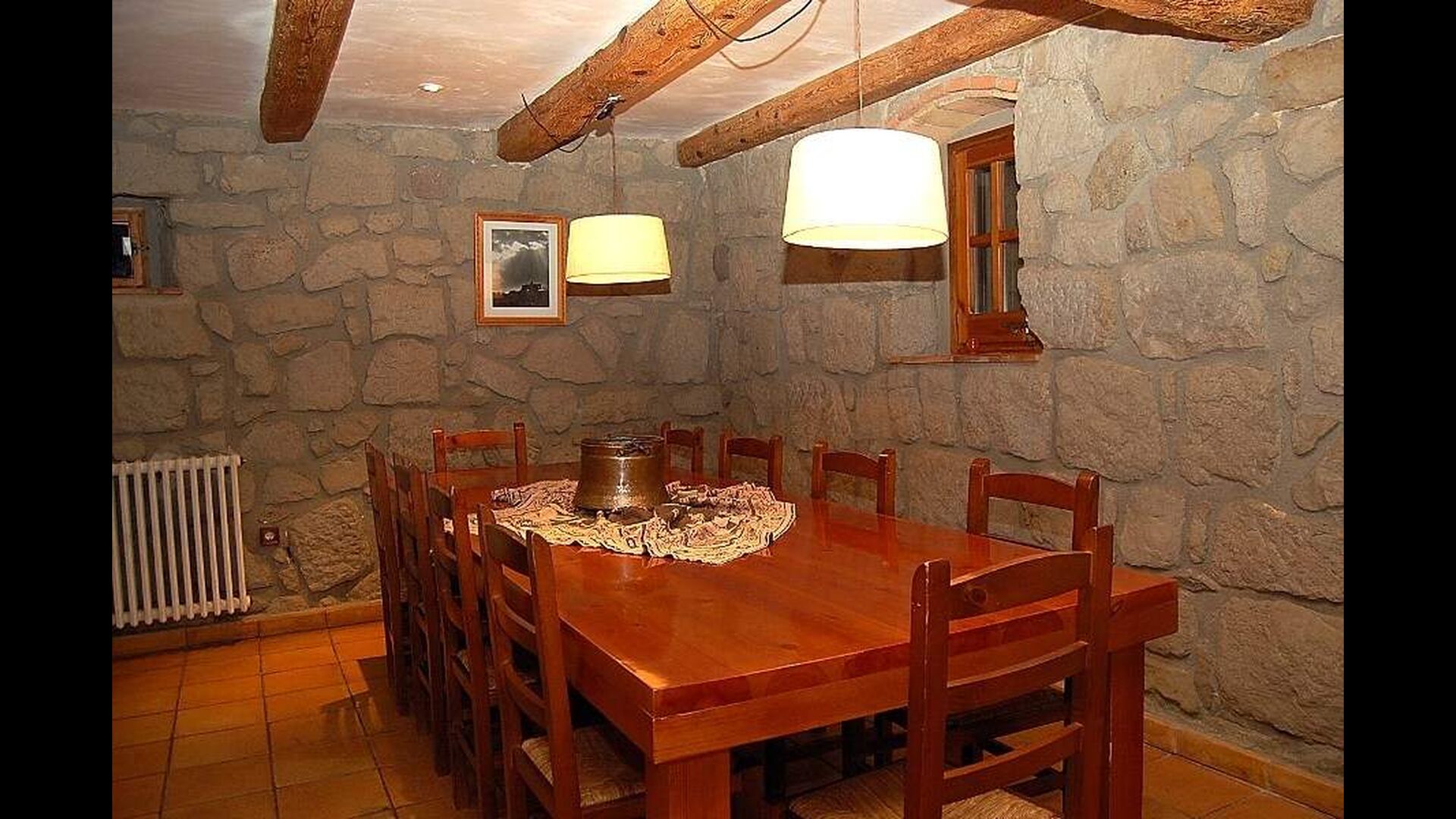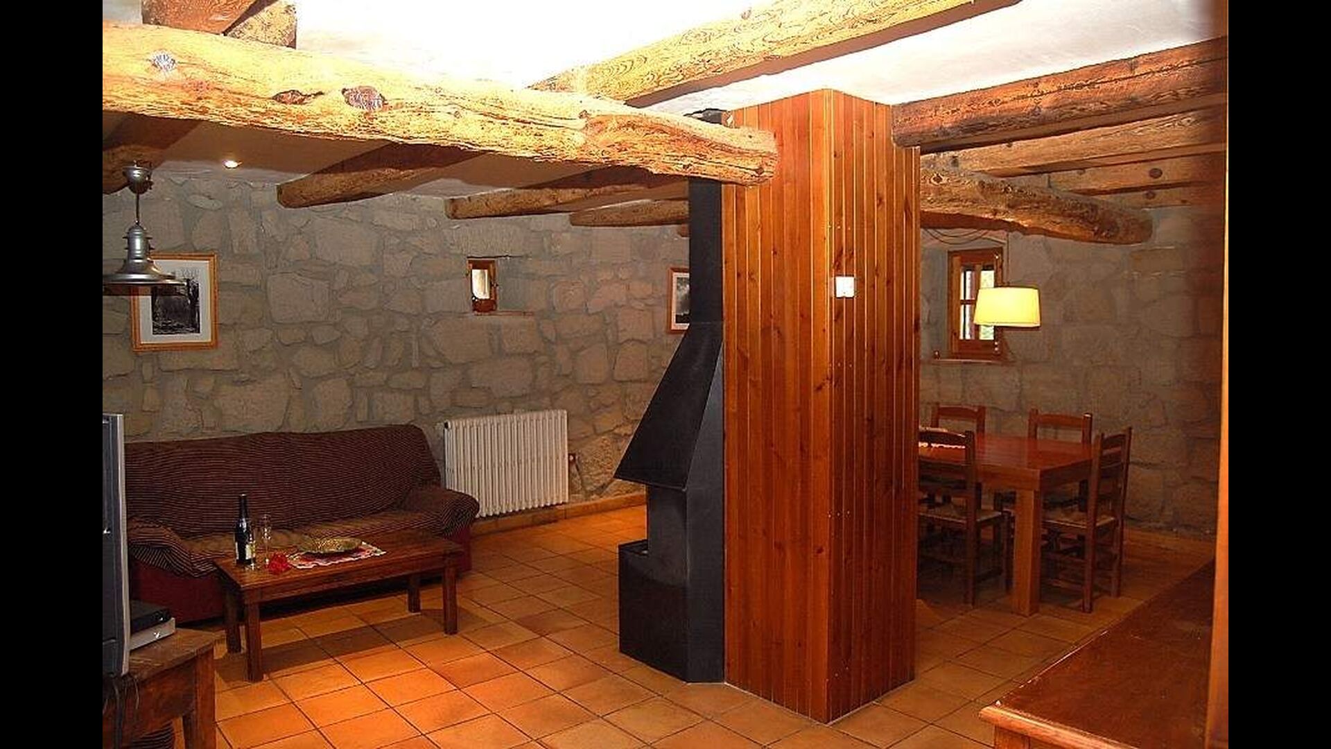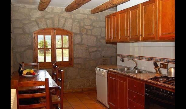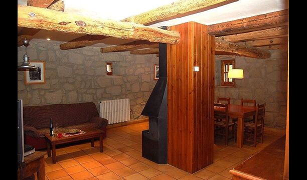Una de las cosas mejores y más fascinantes de Casa Setas es su estilo auténtico: aquí realmente se ha ido más allá de los detalles. General para esta casa es que tiene paredes de piedra originales y vigas que llevan la casa. La casa tiene dos plantas. La planta baja tiene una cocina con lavavajillas, lavadora, horno y otros equipos necesarios. También hay una sala de estar grande y espaciosa con chimenea, TV, mesa de comedor y sala de estar. Esta habitación es muy singular porque tiene una columna de madera en el centro, una reliquia del edificio original. También hay acceso directo a la terraza.