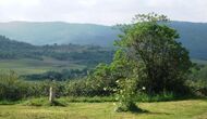 • Rodeado de colinas boscosas.