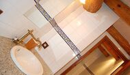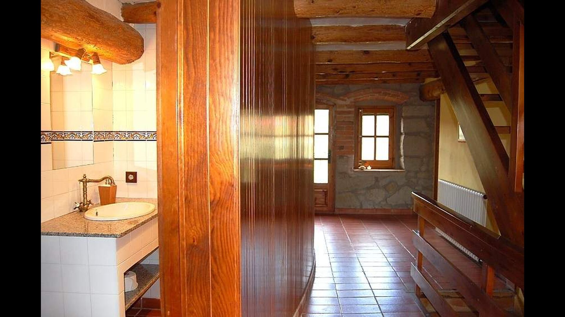 Si subes las escaleras al primer piso, te encontrarán 4 habitaciones dobles y 2 baños. Las habitaciones son generalmente muy espaciosas y bellamente decoradas. En total hay 4 camas individuales y 2 camas dobles. Una de las habitaciones tiene un hermoso y pequeño balcón desde el que se pueden disfrutar de impresionantes vistas. Especialmente los baños son hermosos y están decorados de forma clásica.