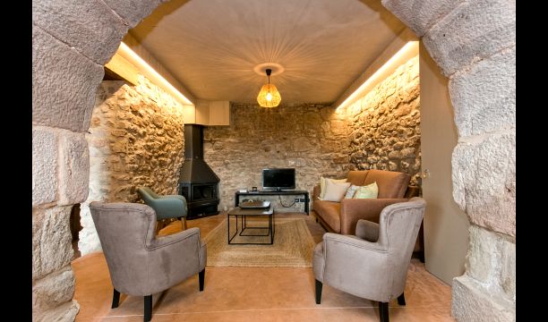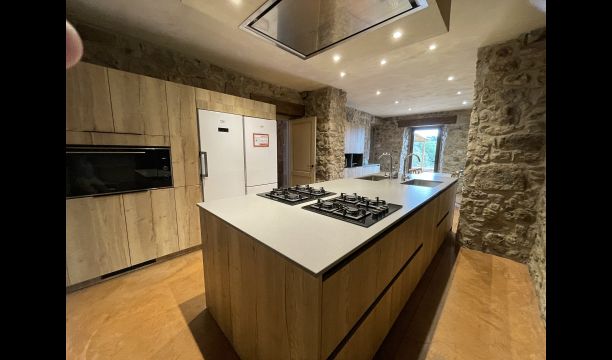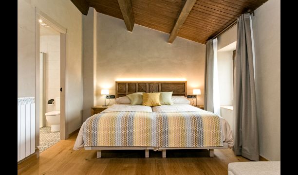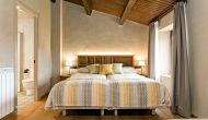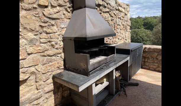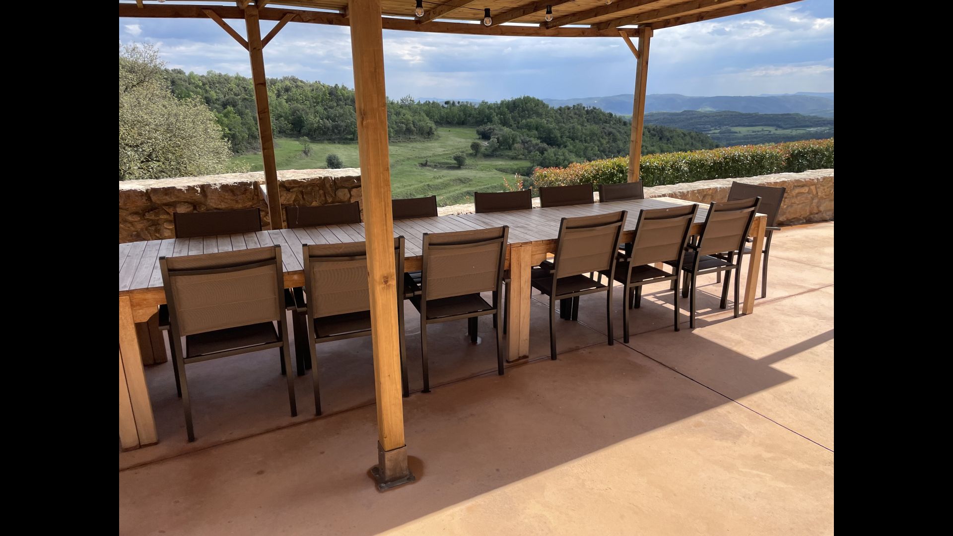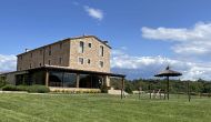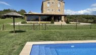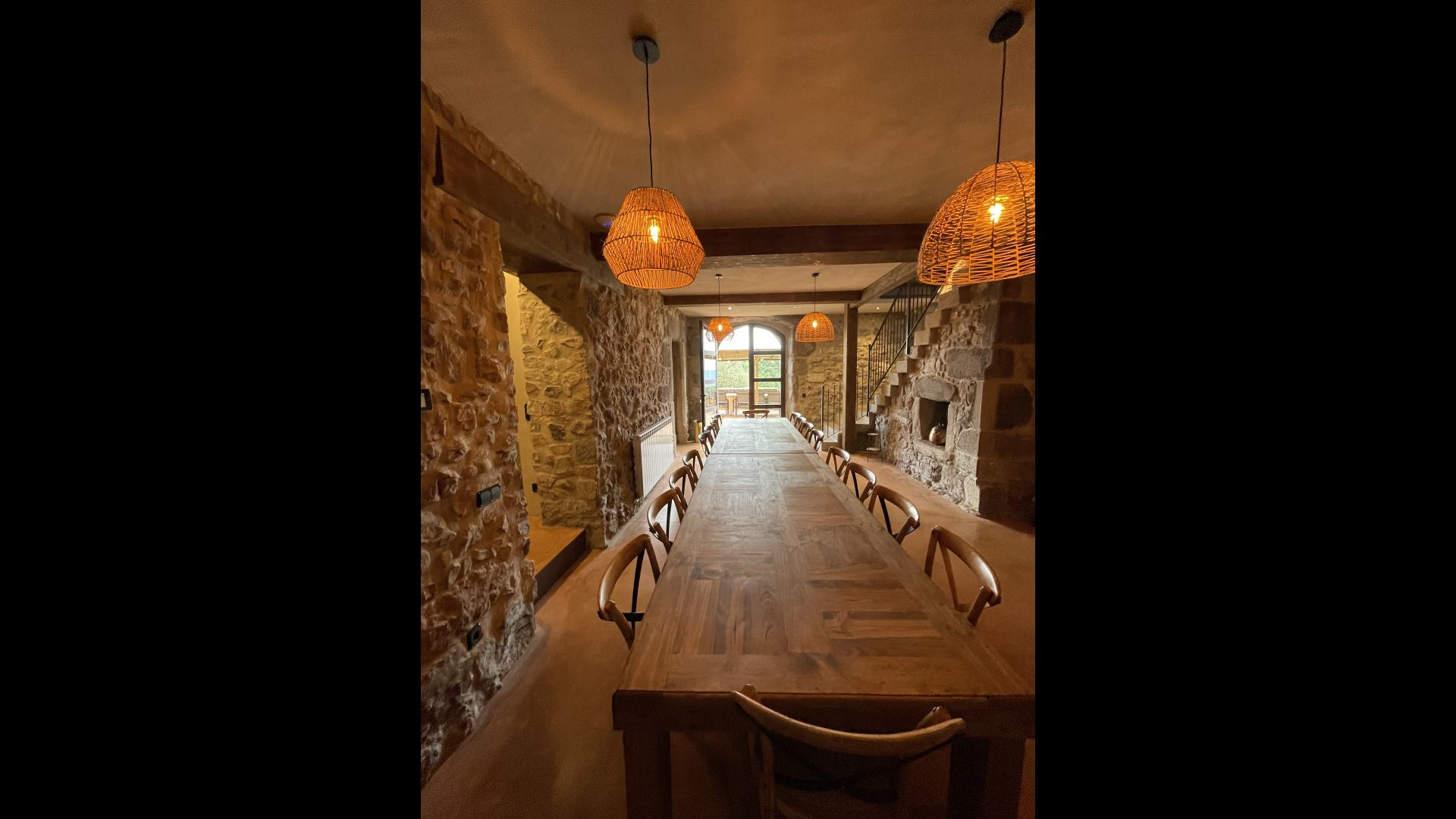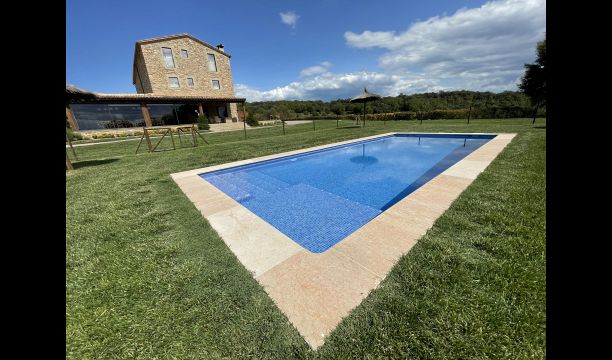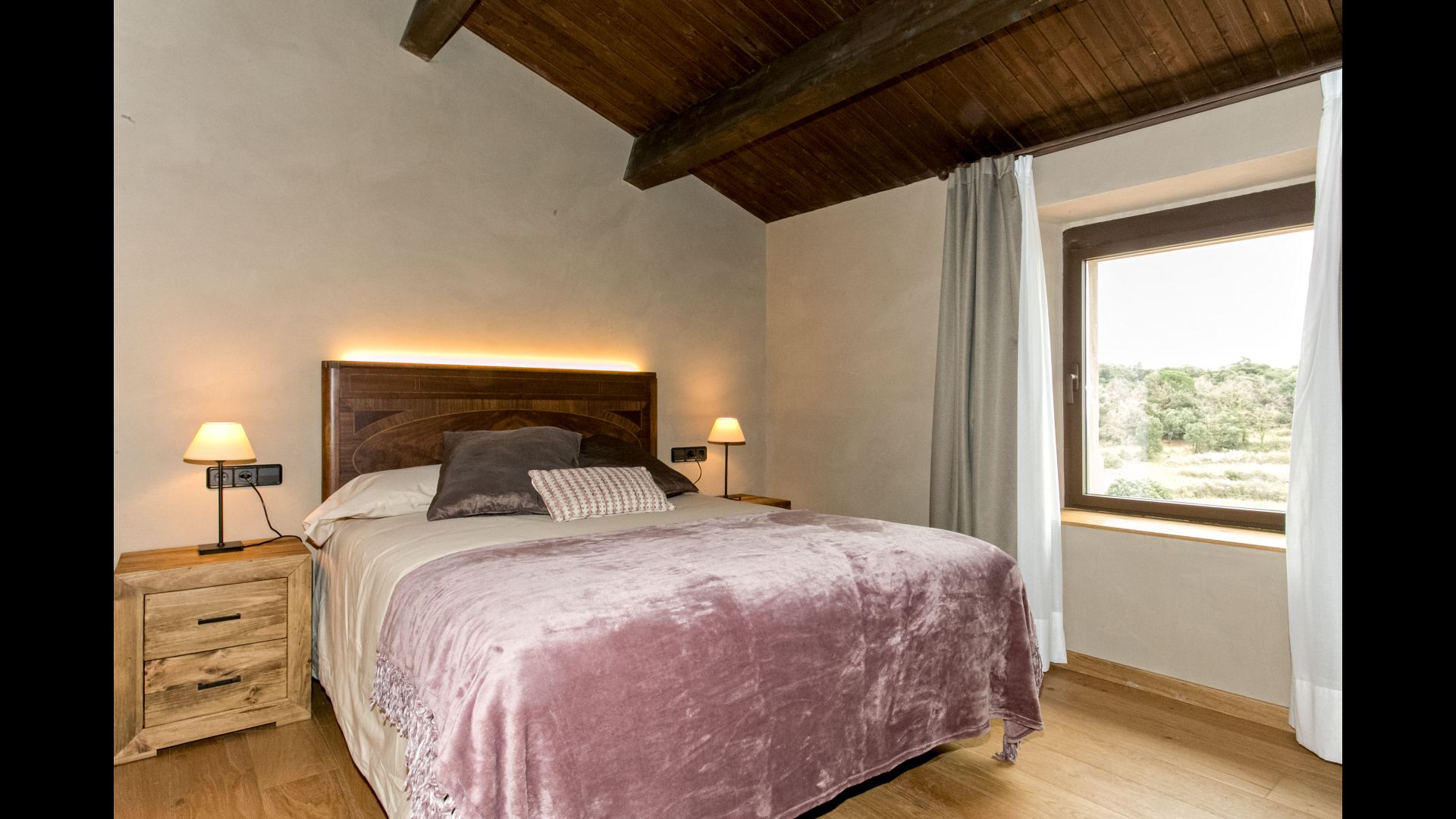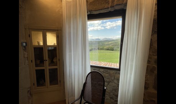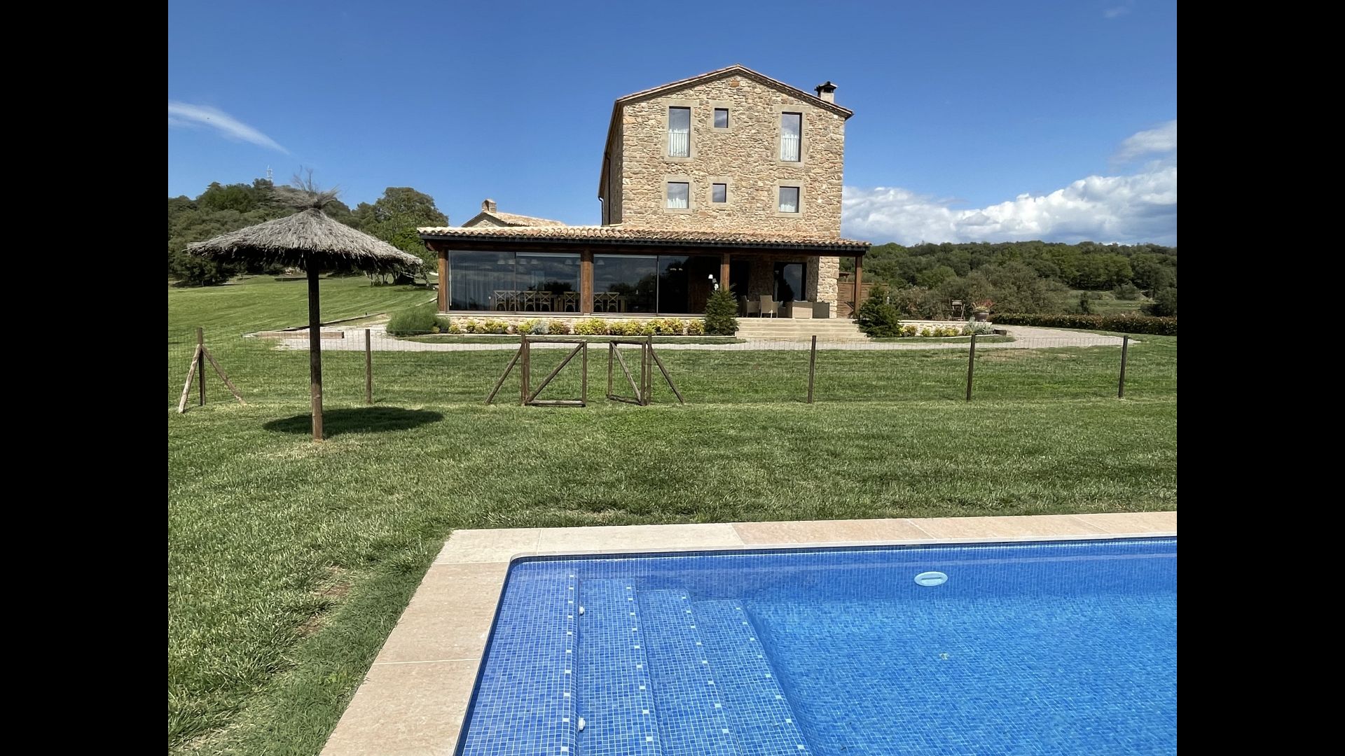 A spectacular house designed for large groups who want to enjoy a luxurious vacation, full of details from the original construction, framed in wooden furniture and warm fabrics. It has great views over the mountains of the Pre-pyrenees. It is located a little over 1 hour from Barcelona and Girona. On the 185-hectare land, 2 nearby houses are rented, totally separate and independent. Each with their own terrace and adjacent land. The pool, football field and volleyball field are shared by the 3 houses.