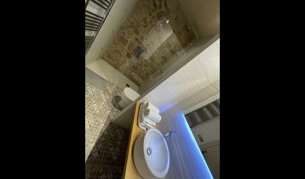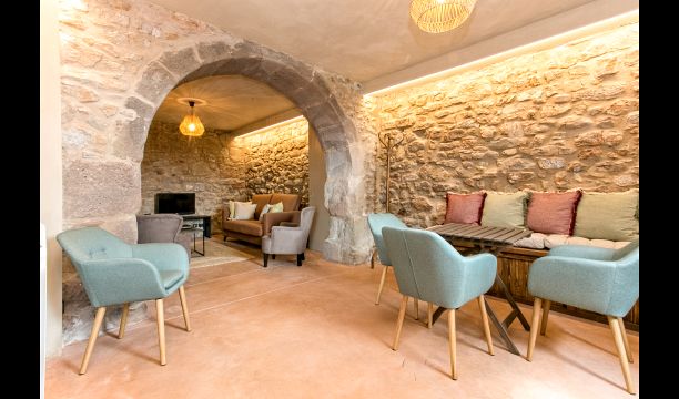 From the outdoor terrace, with a barbecue, a space to eat and loungers to relax, we enter directly into the Mas's large dining room. This acts as the heart of the house, connecting the two small living rooms on the ground floor with the large kitchen. The kitchen is fully equipped with 2 gas hobs, 2 dishwashers, 2 refrigerators with freezer, oven, microwave and coffee maker, as well as a small breakfast table.