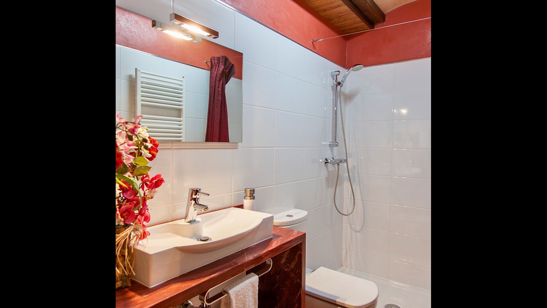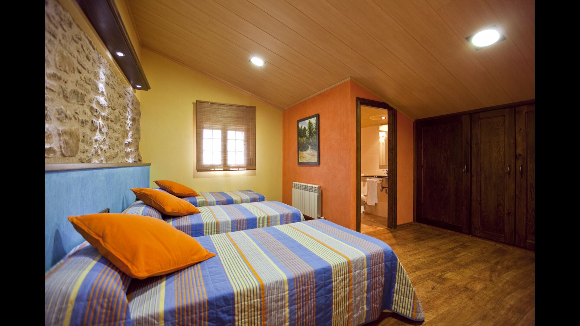 Des de la següent entrada, entres a la segona part de l'edifici. Només té una planta i té capacitat per a 7 persones, amb 3 habitacions distribuïdes en una habitació triple (tres llits individuals) i bany exterior, una habitació de matrimoni amb bany interior i una altra habitació de matrimoni amb bany exterior. Cuina i sala comuna amb TV i DVD. Aquesta part té accés directe a la terrassa i a la fantàstica piscina d'estiu.