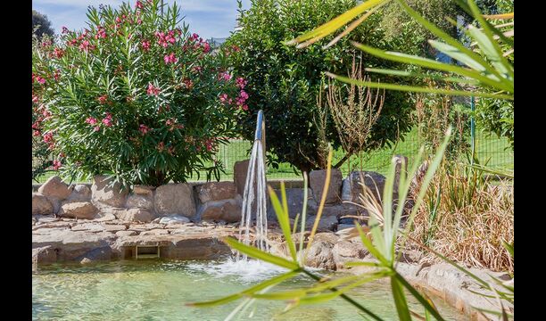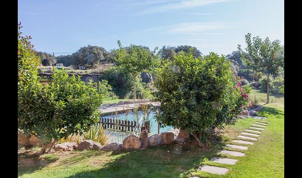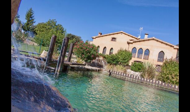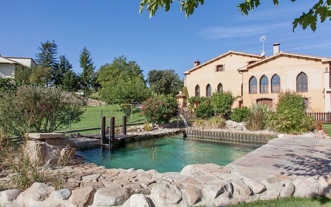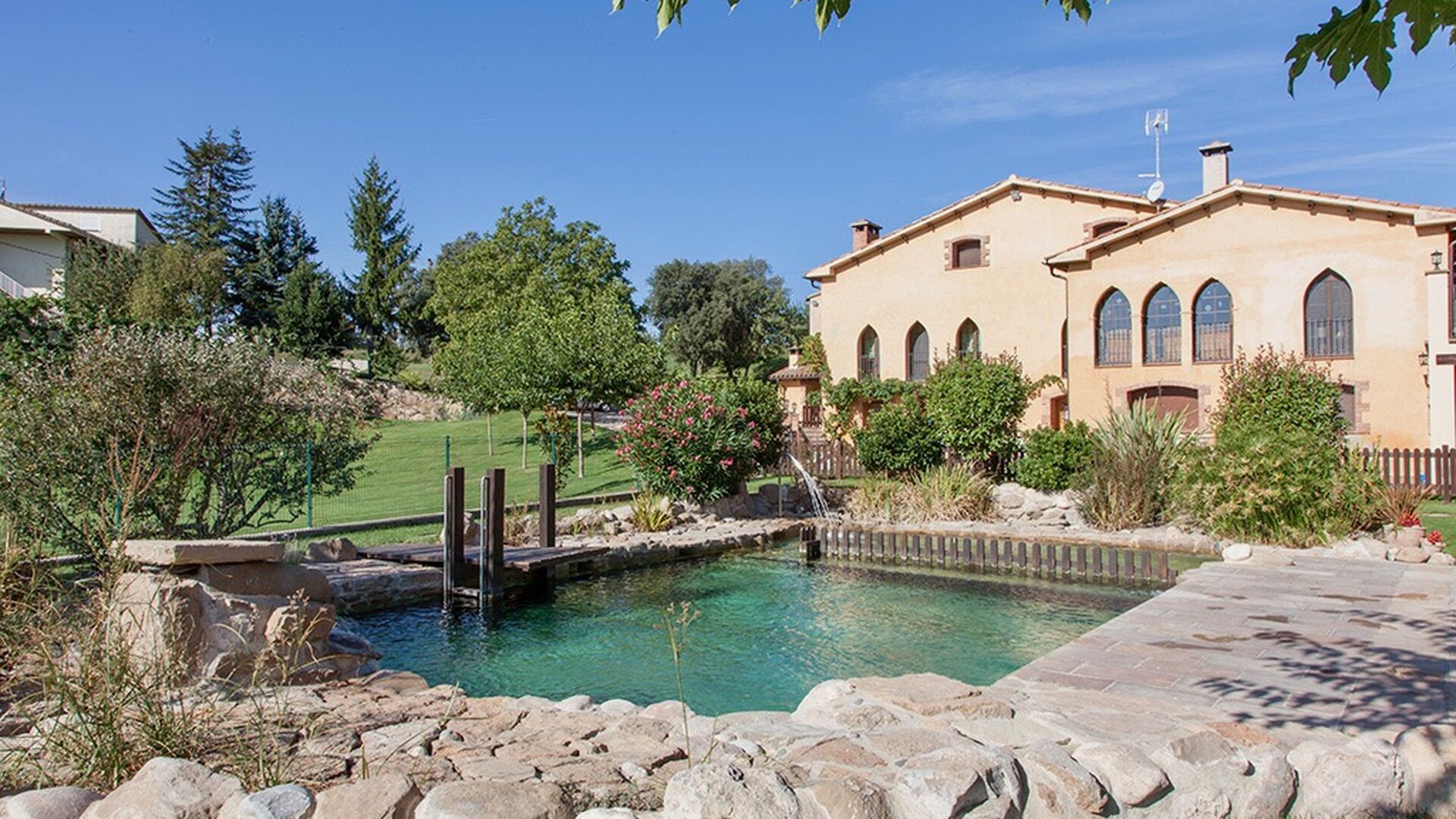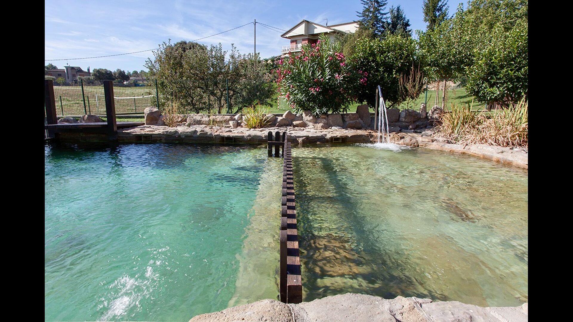 La zona de la piscina és realment especial. La piscina s'assembla una mica a un llac, perquè en reformar la casa, s'ha integrat al seu entorn natural amb plantes aquàtiques i rajoles de pedra que li donen aquest toc màgic semblant a un estany d'aigua natural. A més usant sal en lloc de clor, per problemes de pell.