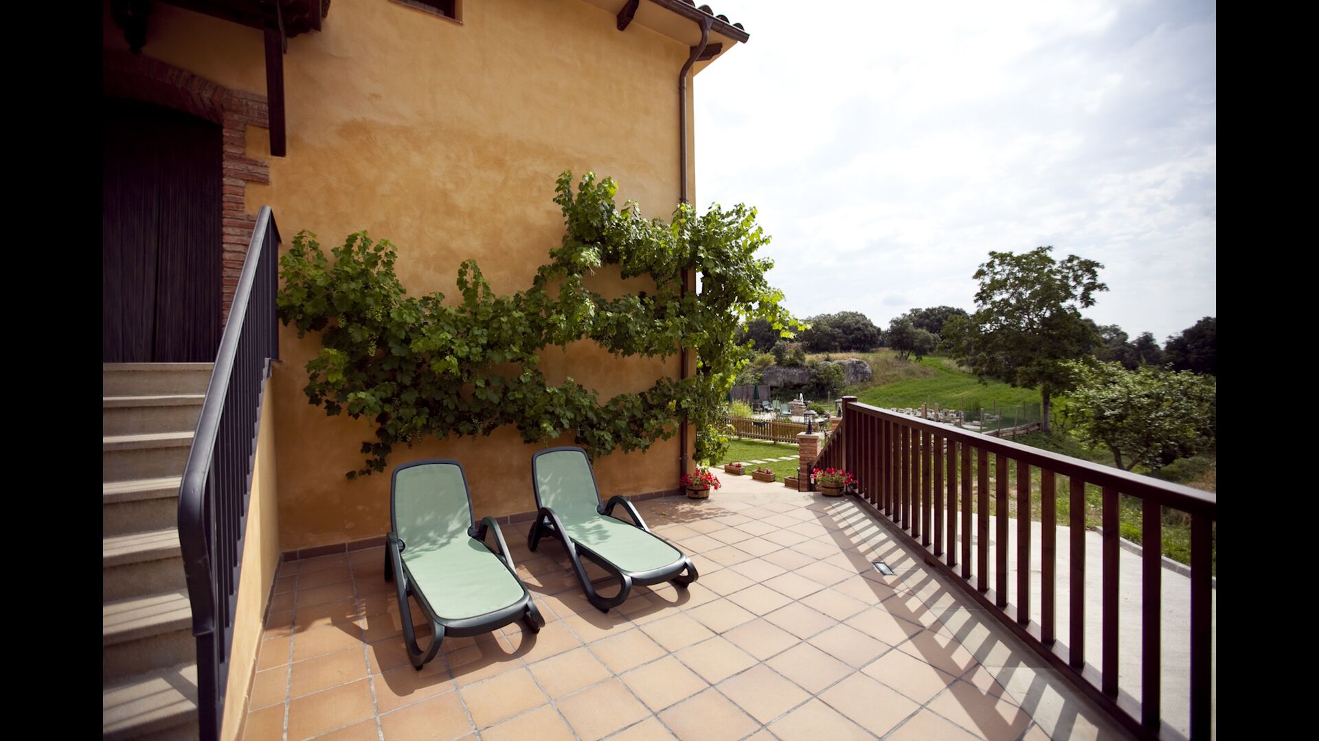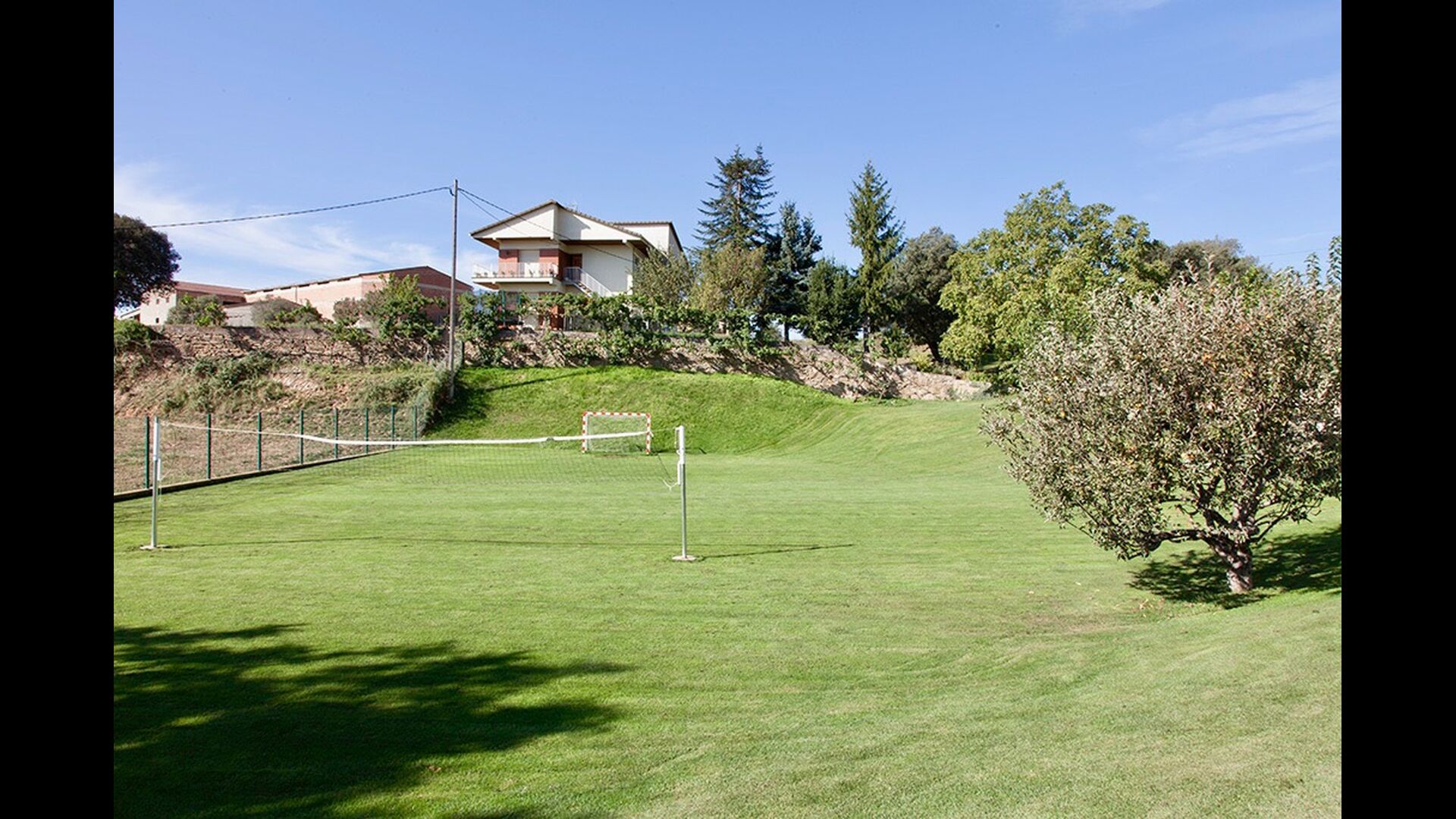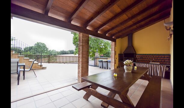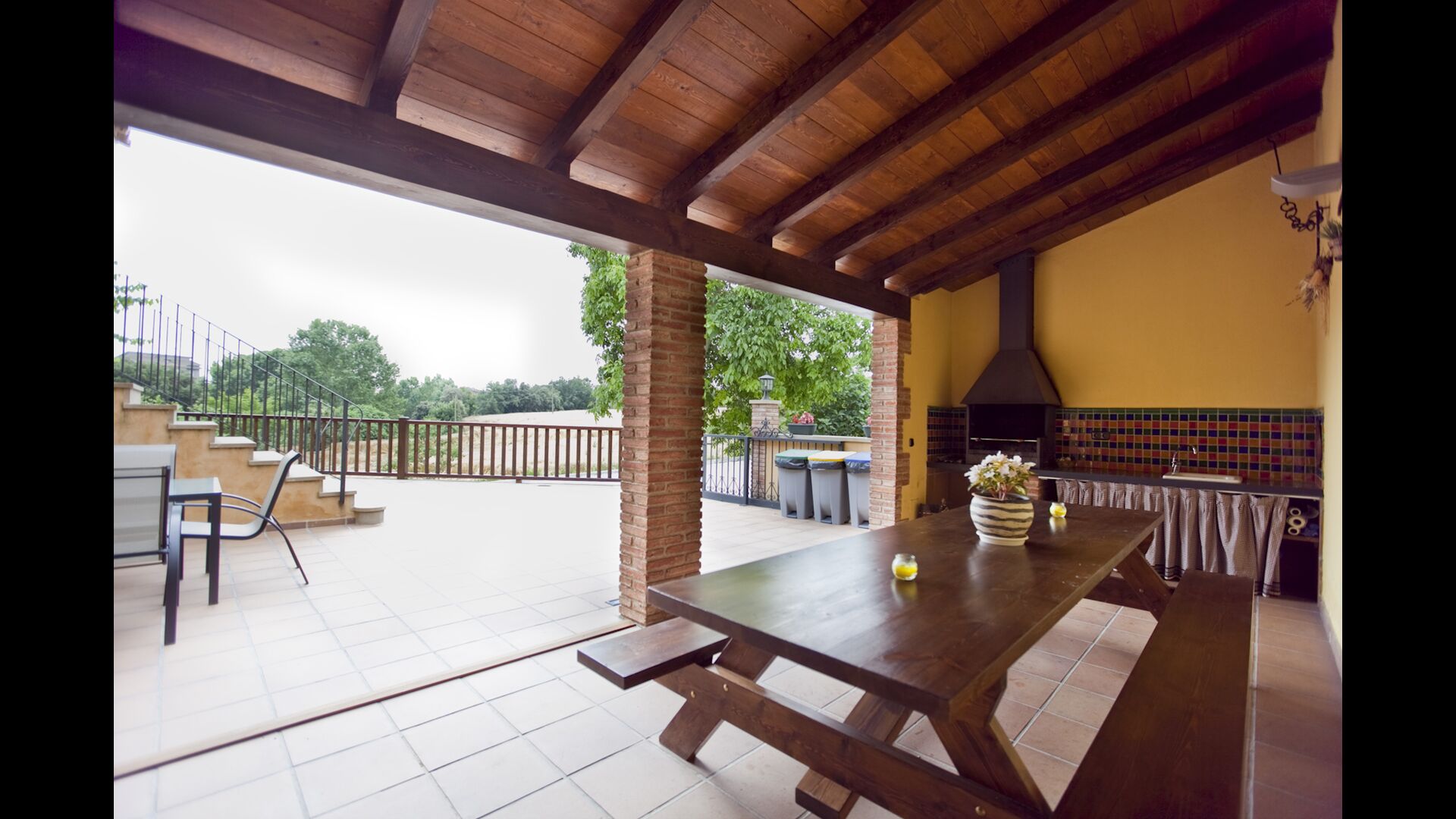 L'àmplia zona a l'aire lliure, amb raïms a la paret, inclou la terrassa amb zona de barbacoa, ping-pong i futbolí i una àrea de gespa al front. També hi ha un parc infantil per als nens.