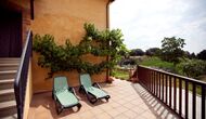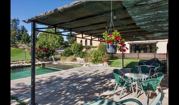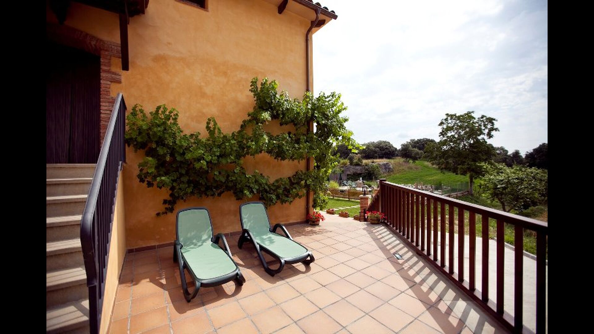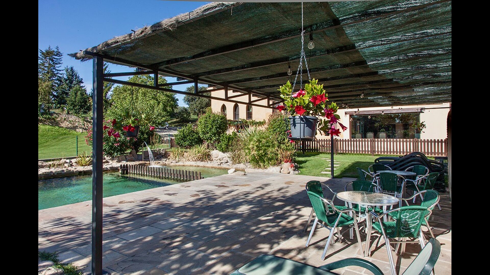 L'àmplia zona a l'aire lliure, amb raïms a la paret, inclou la terrassa amb zona de barbacoa, ping-pong i futbolí i una àrea de gespa al front. També hi ha un parc infantil per als nens.