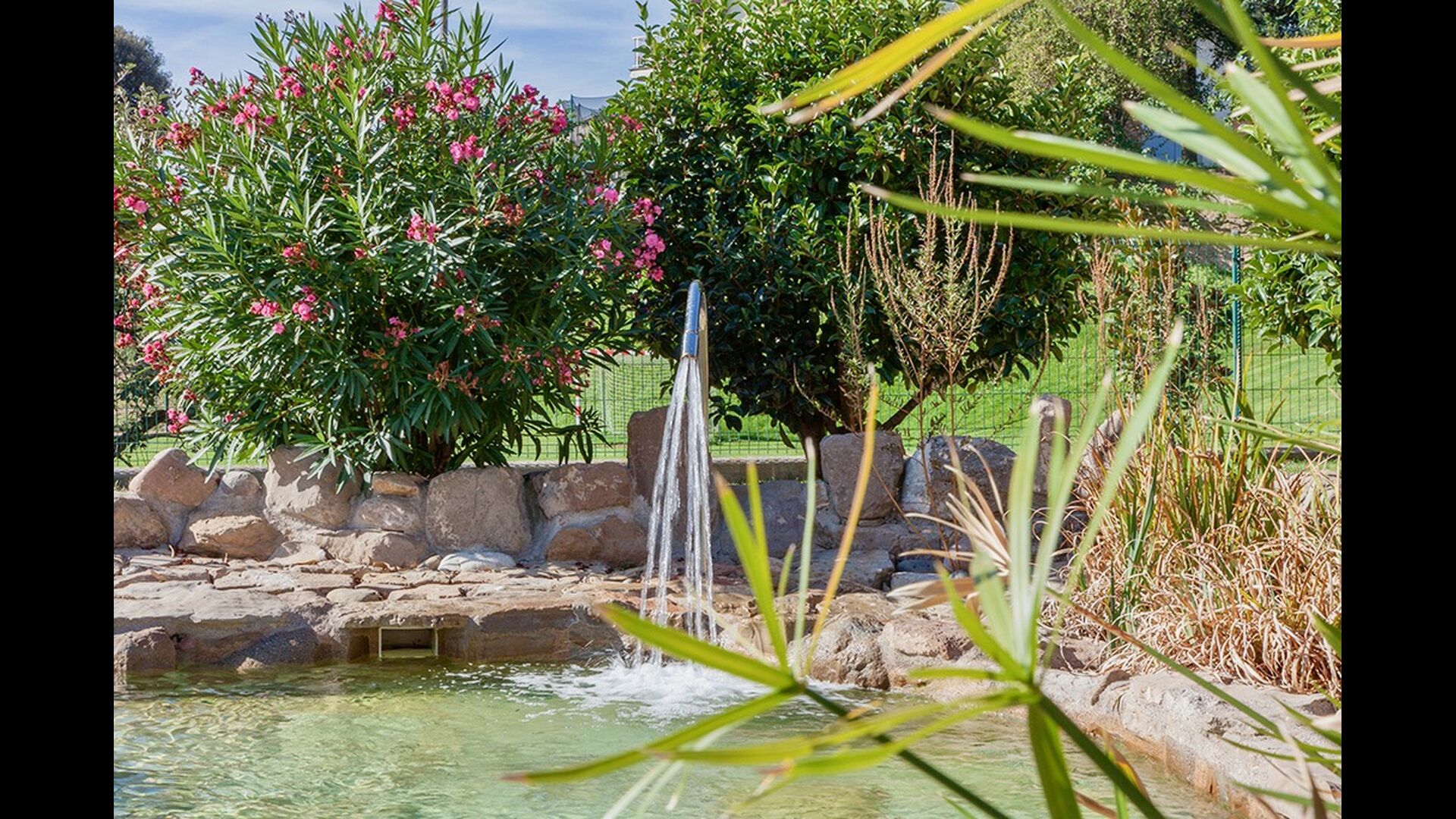 La piscina, que té un total de 84 m2, està dividida en dues parts. Una part inferior, perfecta per a nens petits i una altra més profunda, perfecta per nedar. L'àrea de la piscina està protegida per una tanca, de manera que els nens petits no poden entrar sense supervisió.