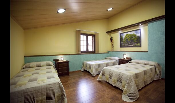 La part més gran amb 5 dormitoris està situada al primer pis de la casa principal. Té capacitat per a 12 persones, distribuïdes en 3 habitacions dobles (2 amb llits dobles) i 2 habitacions triples. Quatre de les habitacions tenen bany privat i la cinquena habitació també té un bany, però no bany privat. També hi ha cuina i sala comuna amb TV i DVD.