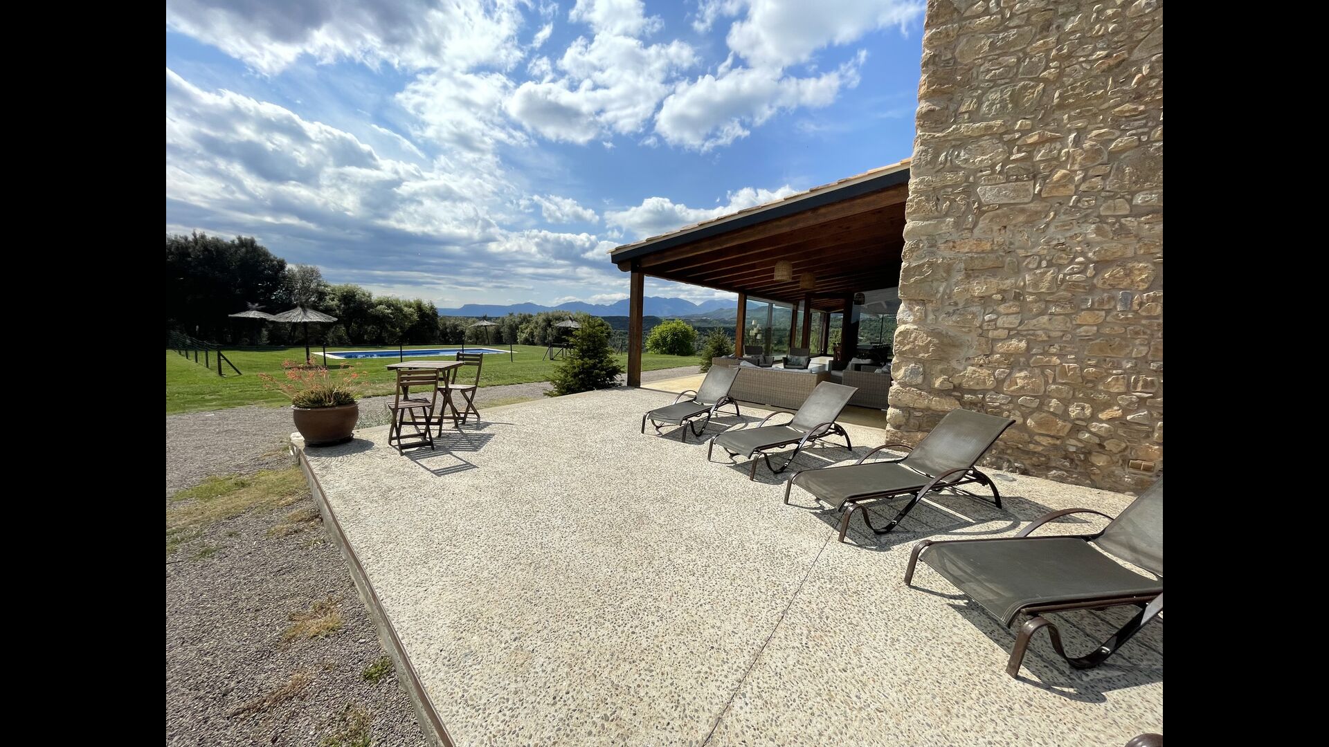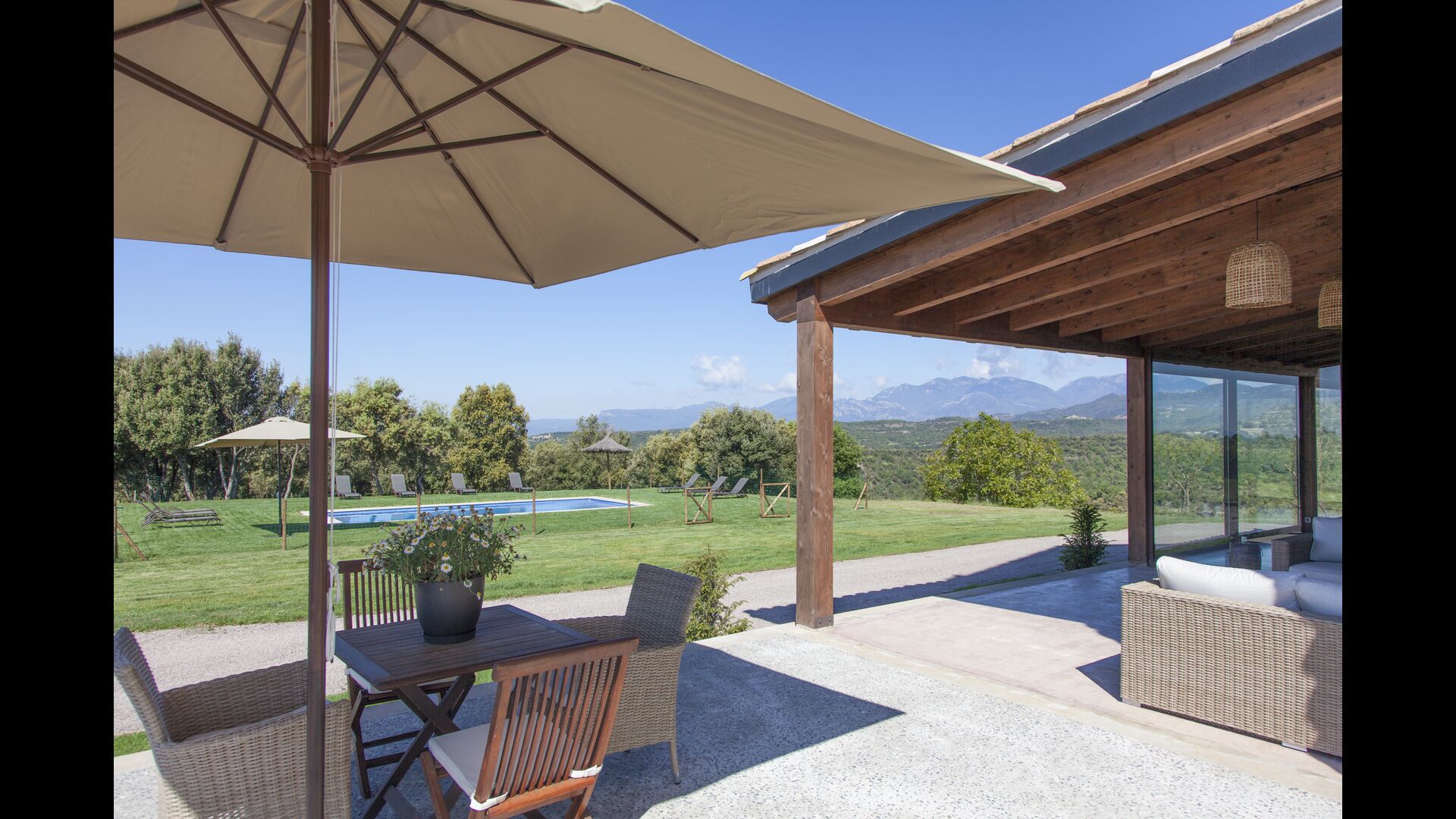 Casa acabada de restaurar l’any 2019, construïda amb materials nobles i de qualitat. Amb unes vistes espectaculars sobre les muntanyes del Pre- Pirineu. Està situada en una finca de 185 Ha, dins la qual hi ha les 2 boniques cases de Mateo.