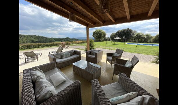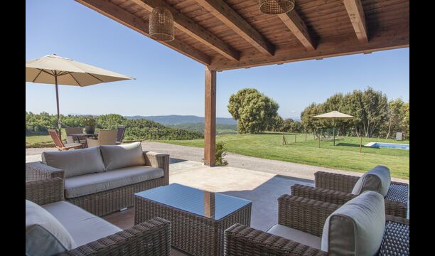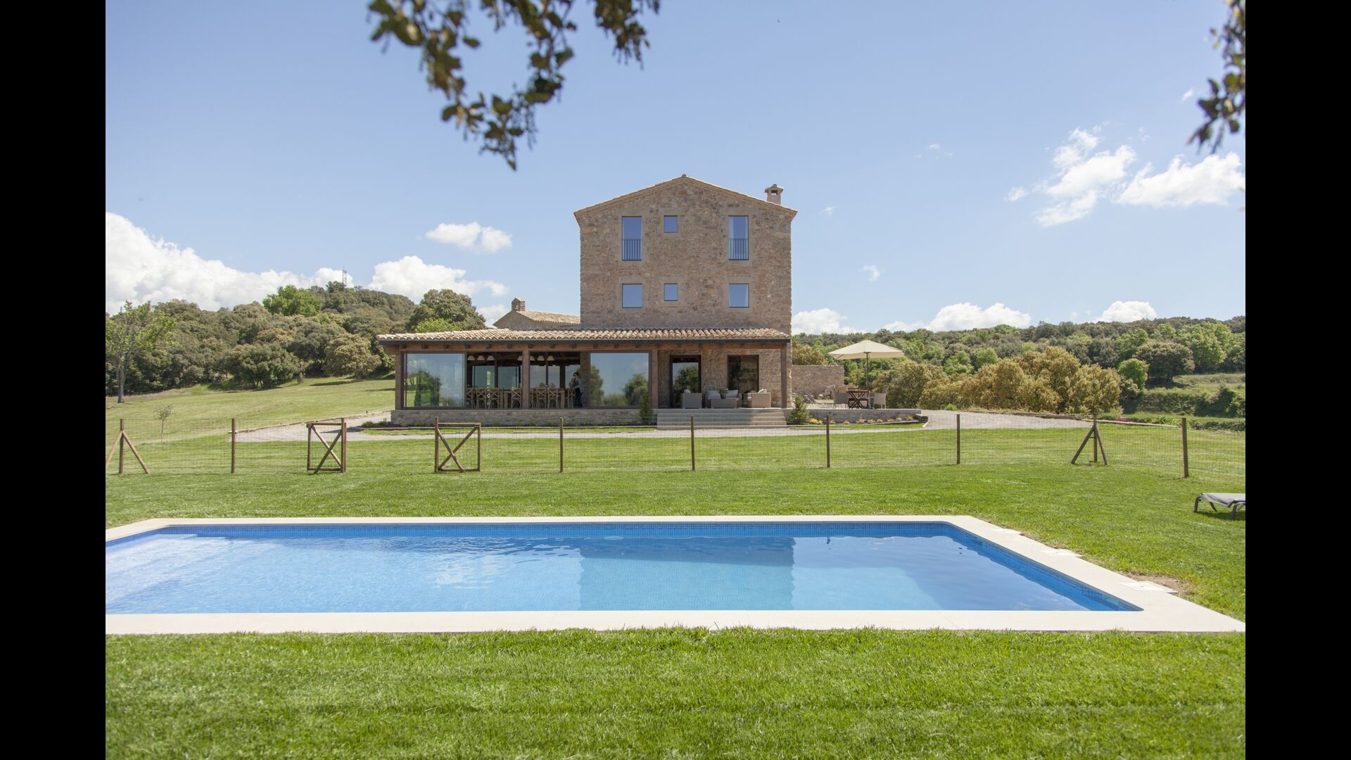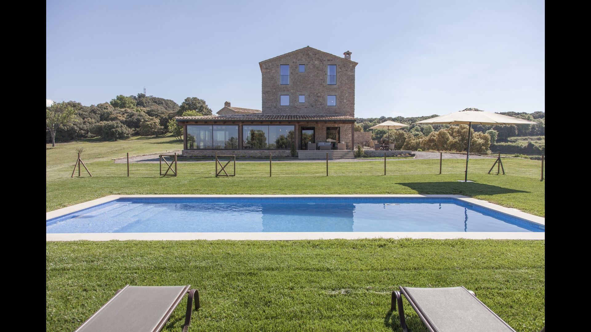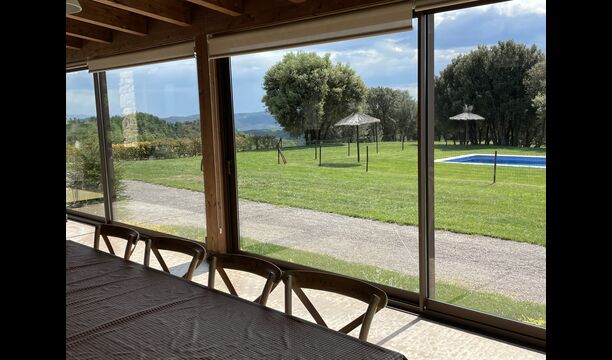 Dins de la finca hi ha dues cases. completament separades i totalment independents, cadascuna amb la seva terrassa i zona de jardi adjacent. La piscina i el camp de futbol i voleibol son compartits per les dues cases.